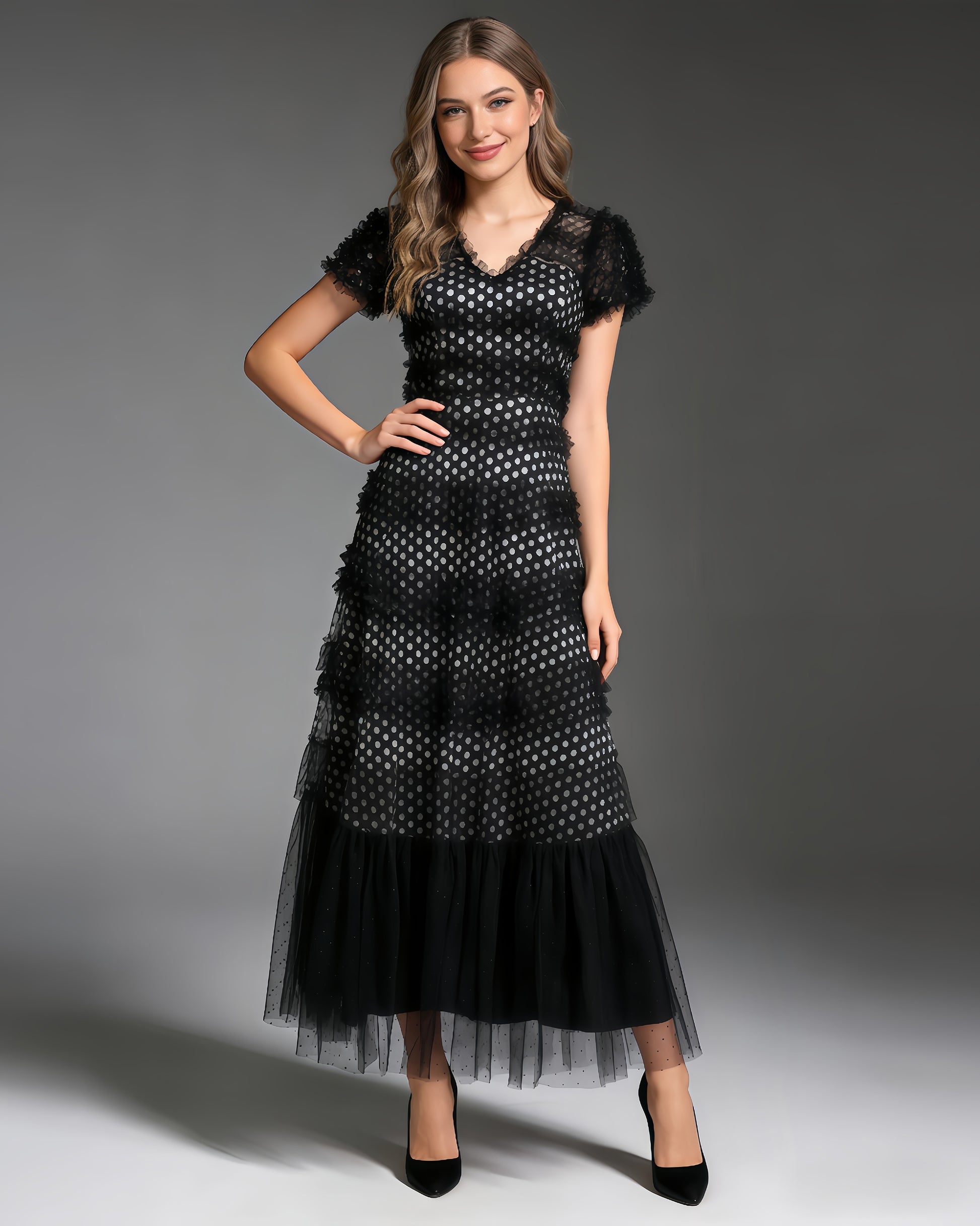 Black 3D Floral Ruffled Tulle Maxi Dress
