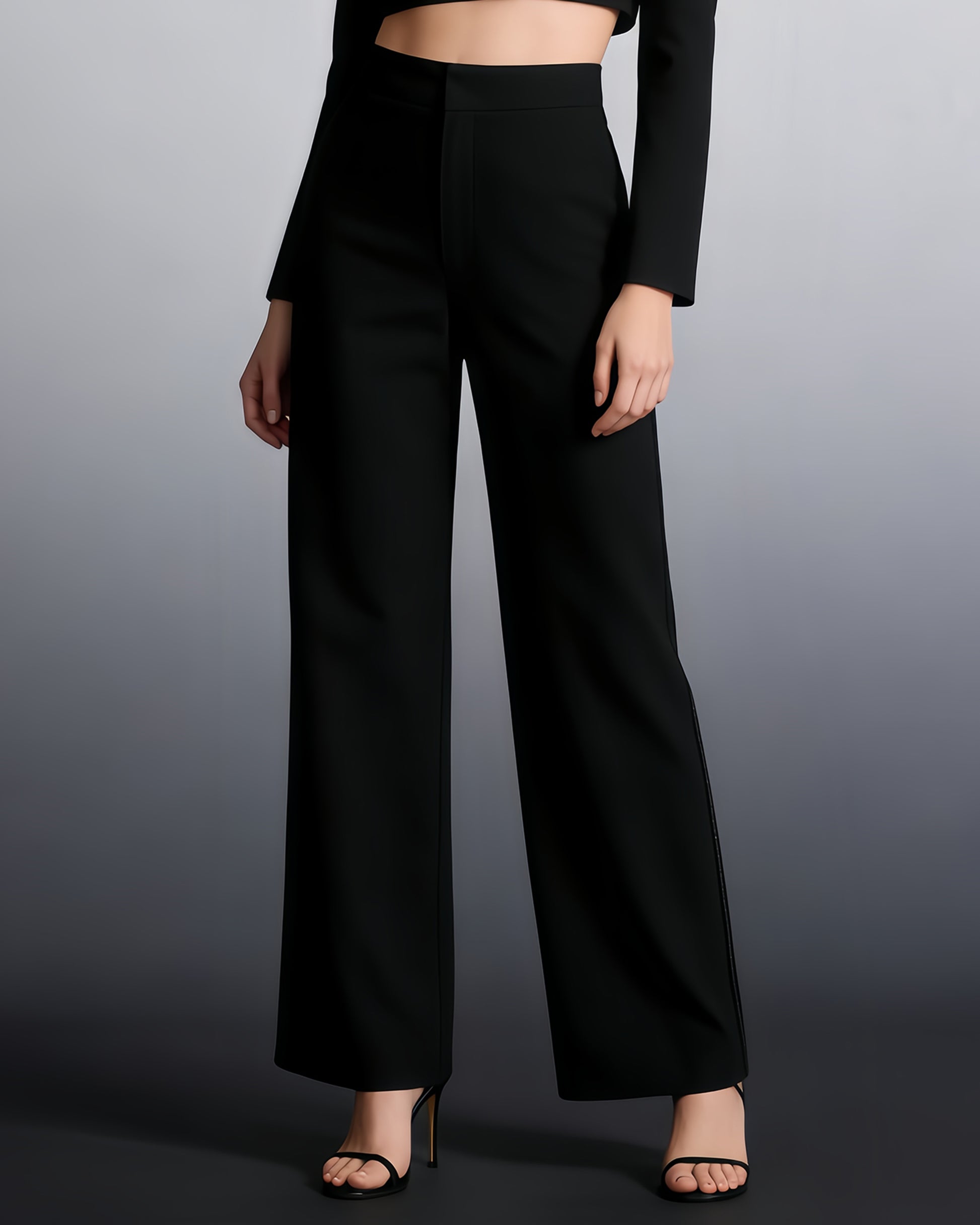 Black High-Waisted Wide-Leg Trousers