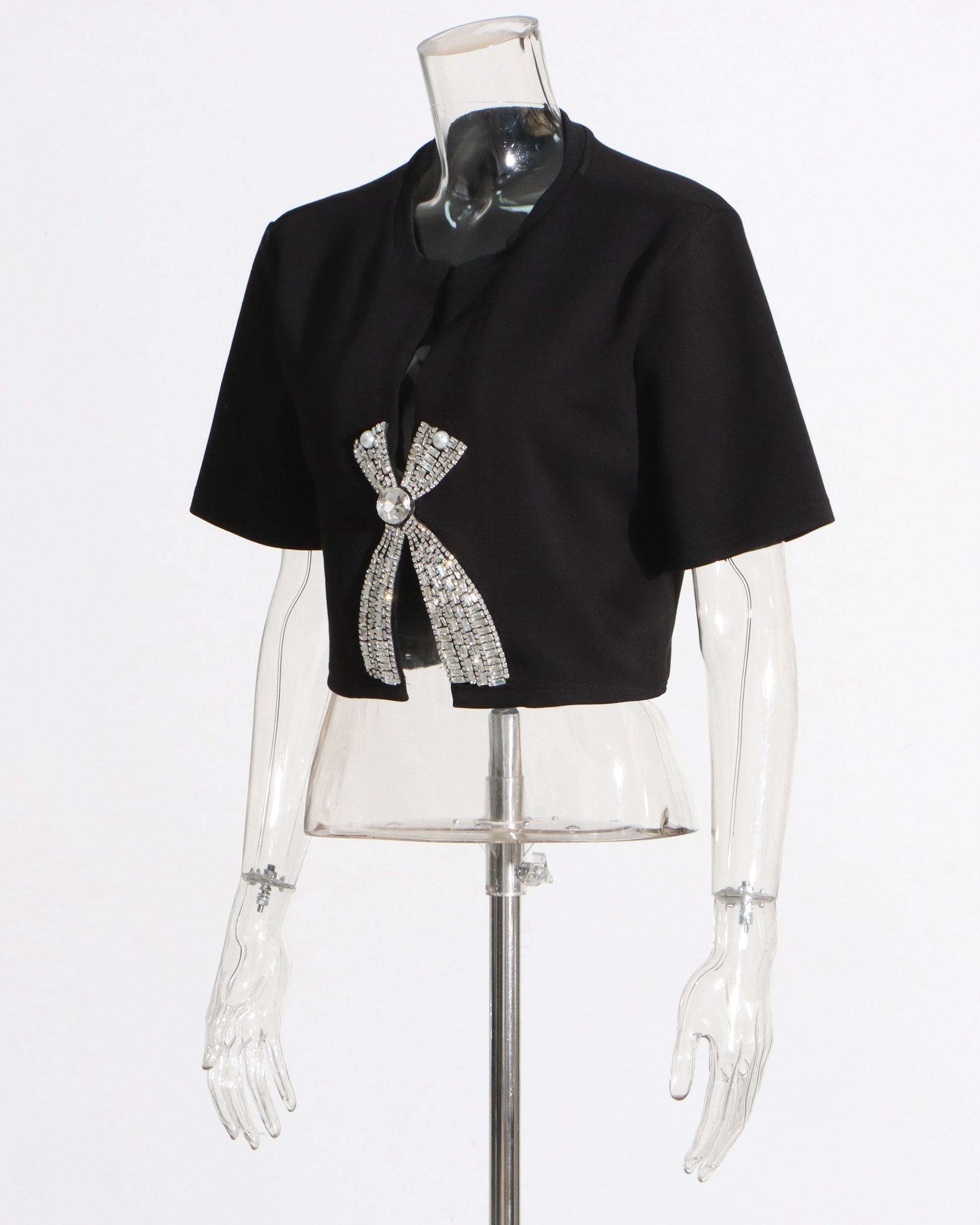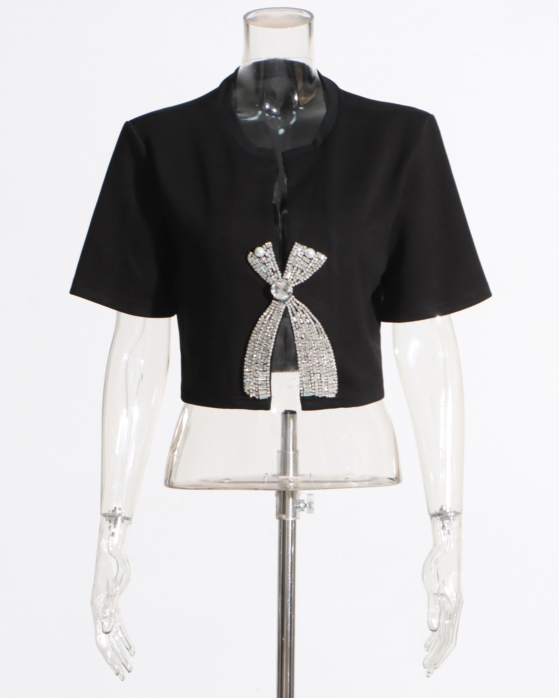 Black Rhinestone Bow Cropped Top