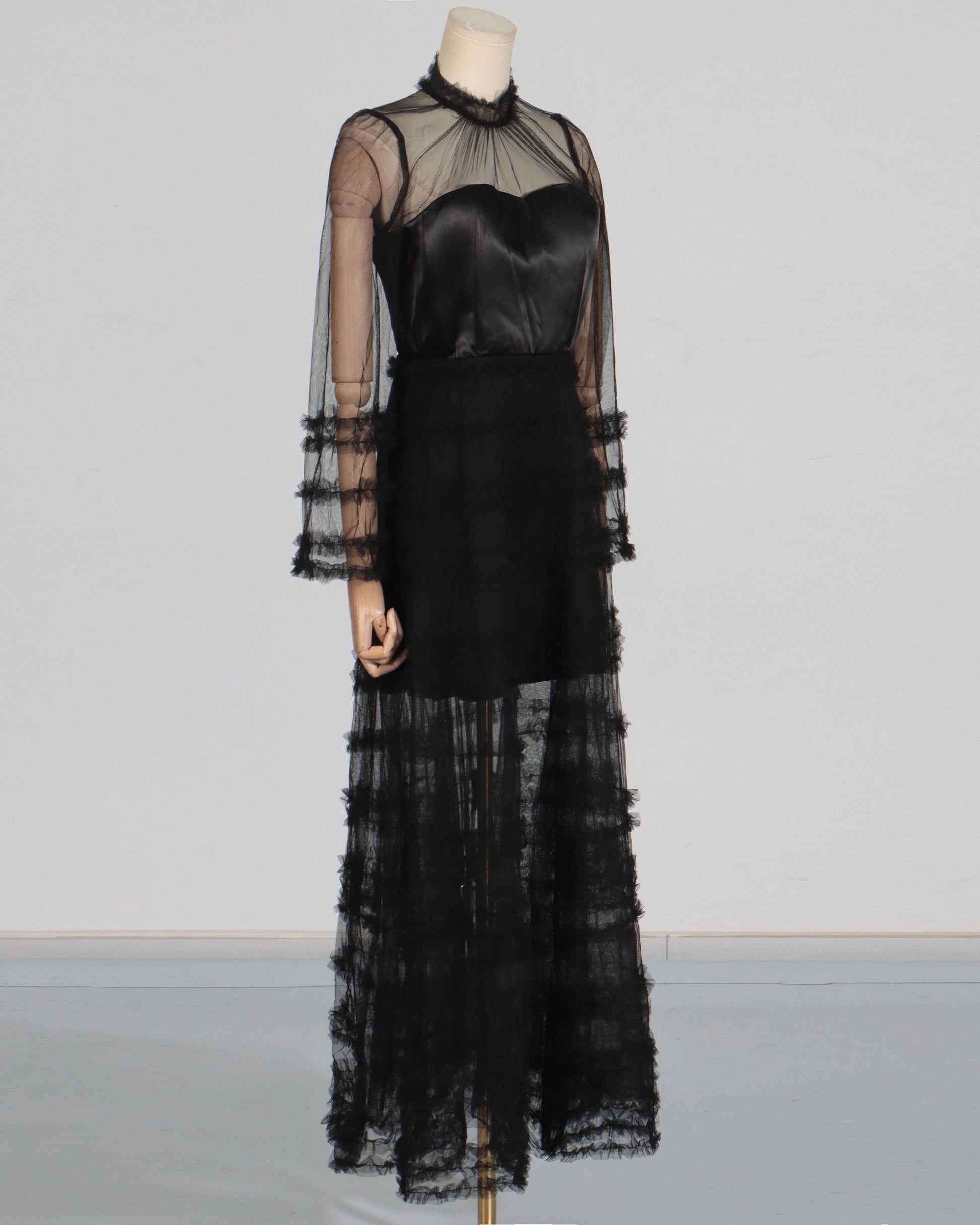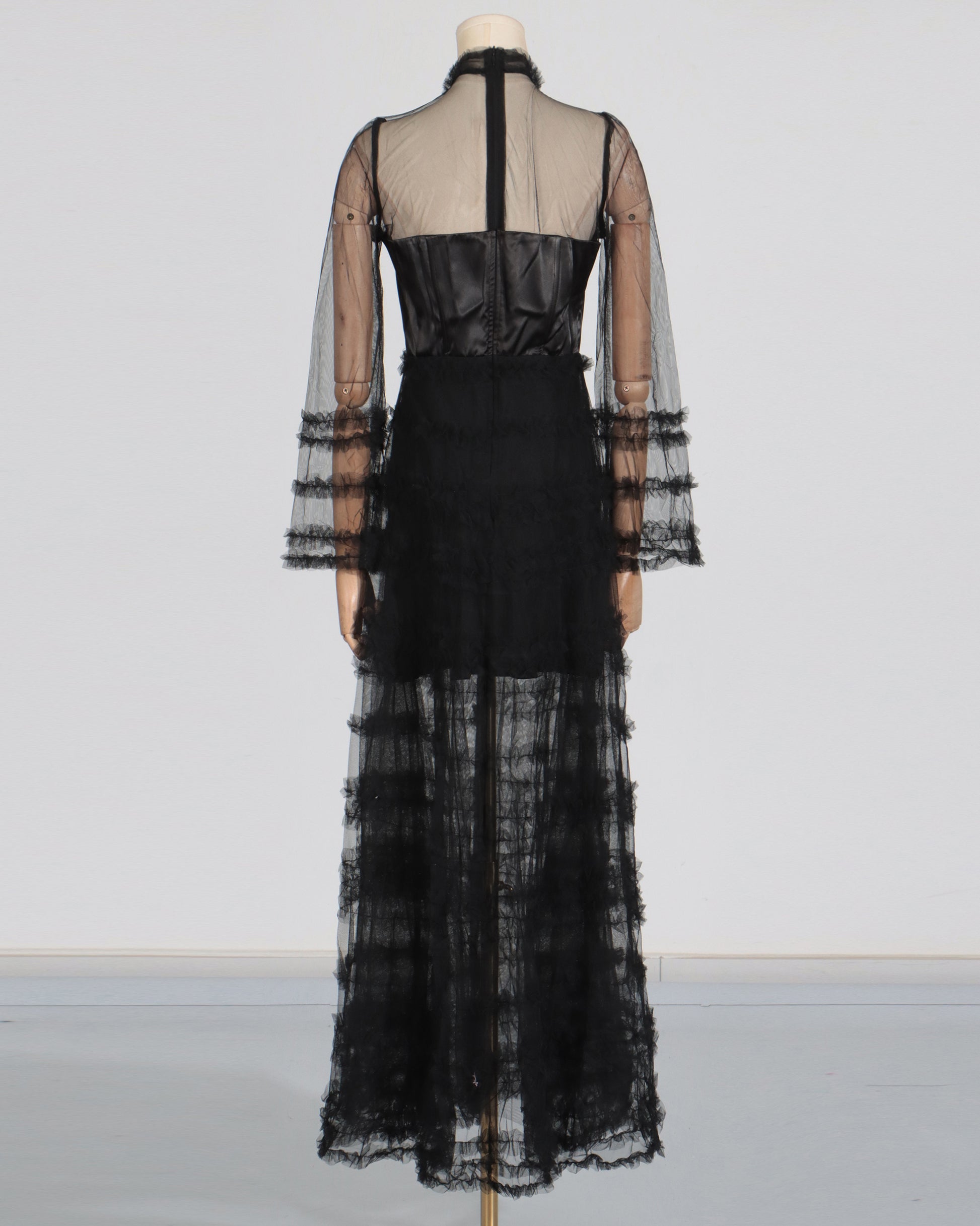 Black Sheer Tulle Ruffled Maxi Dress