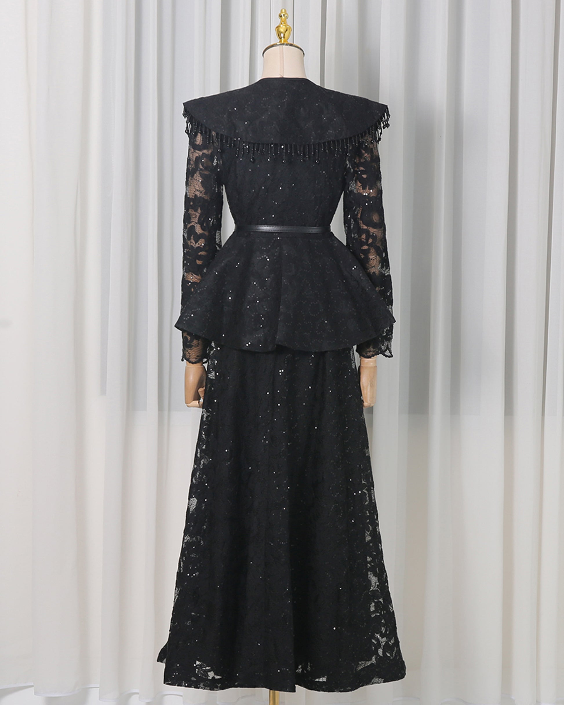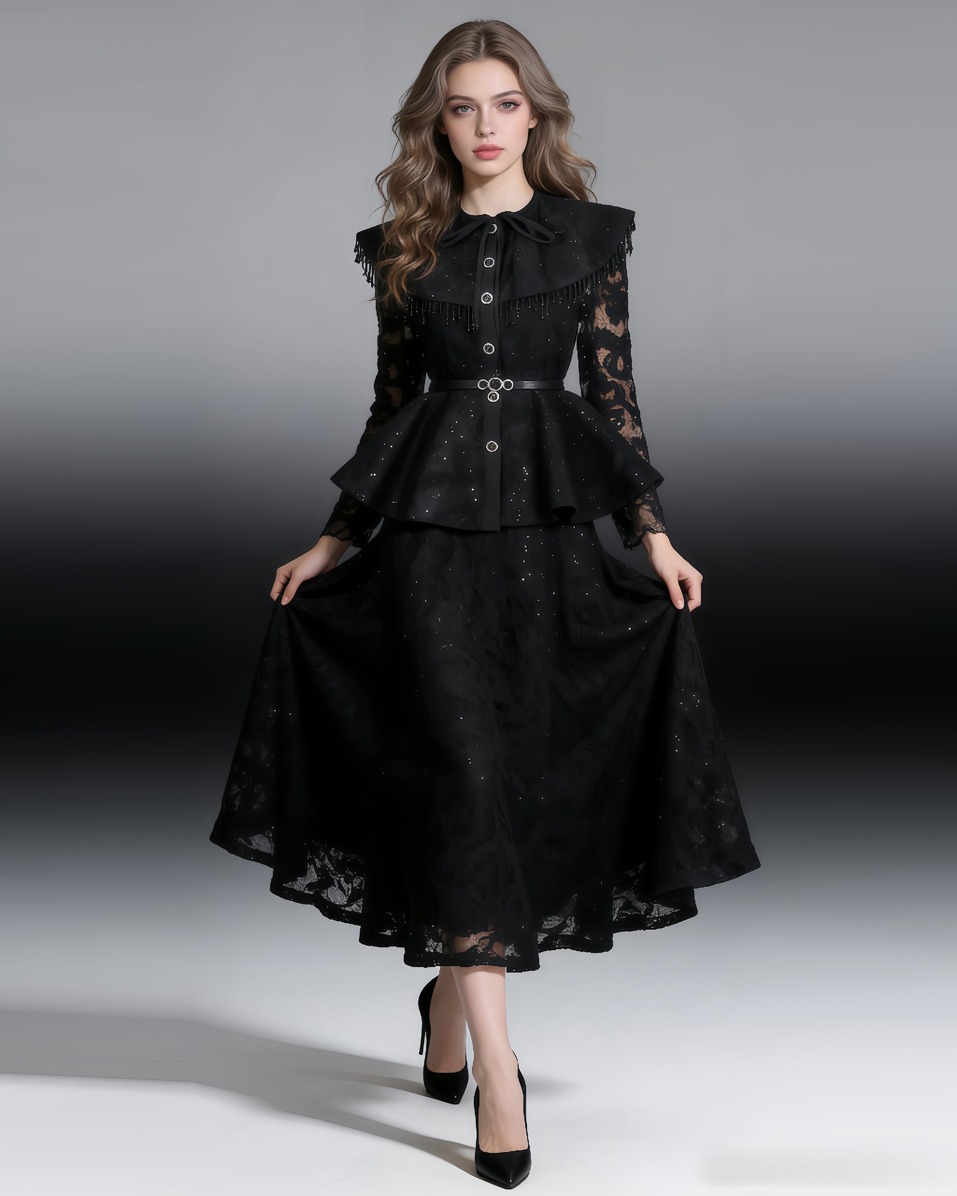 Black Sparkle Lace Peplum Skirt Set