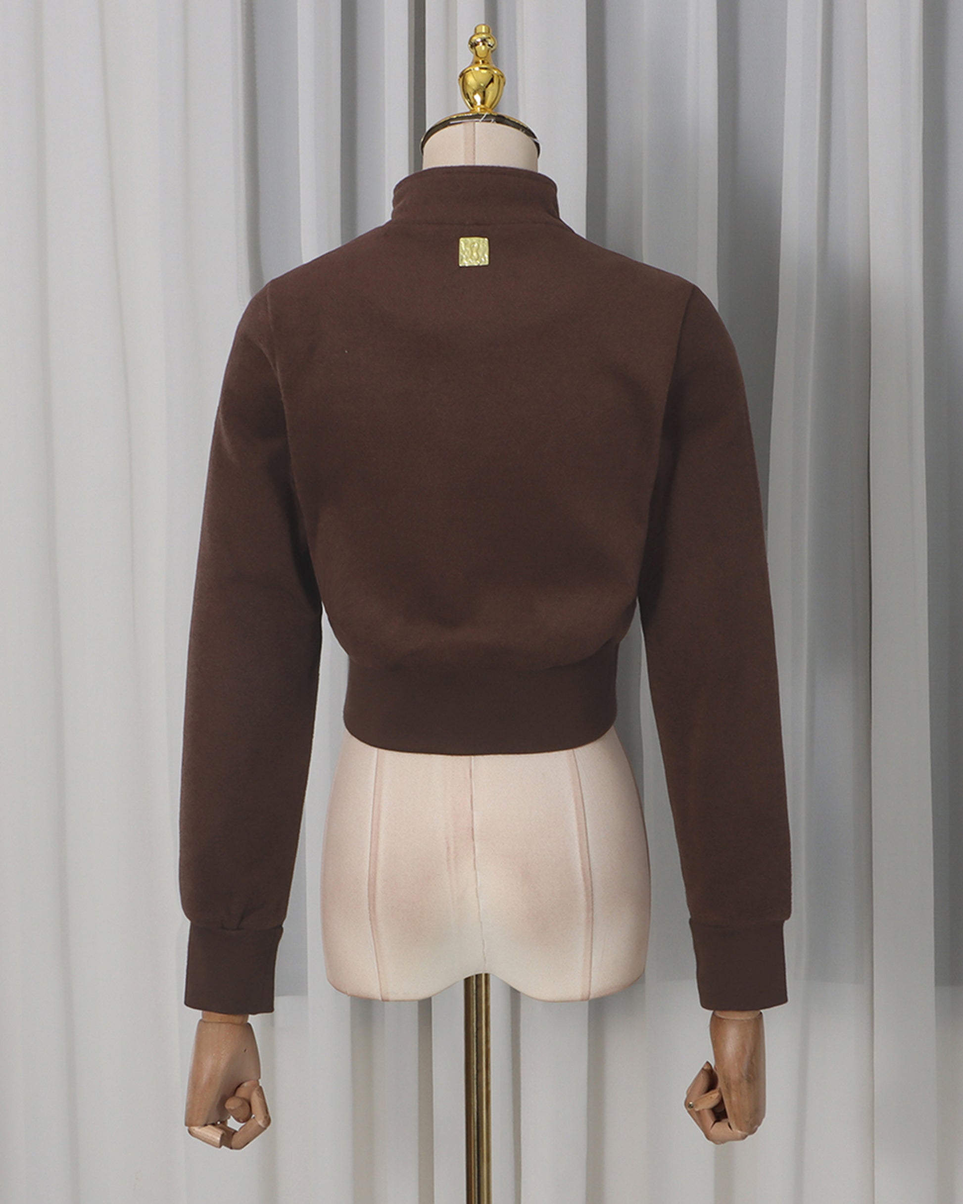 Coffee Cropped Zip-Up Jacket & Jogger Set