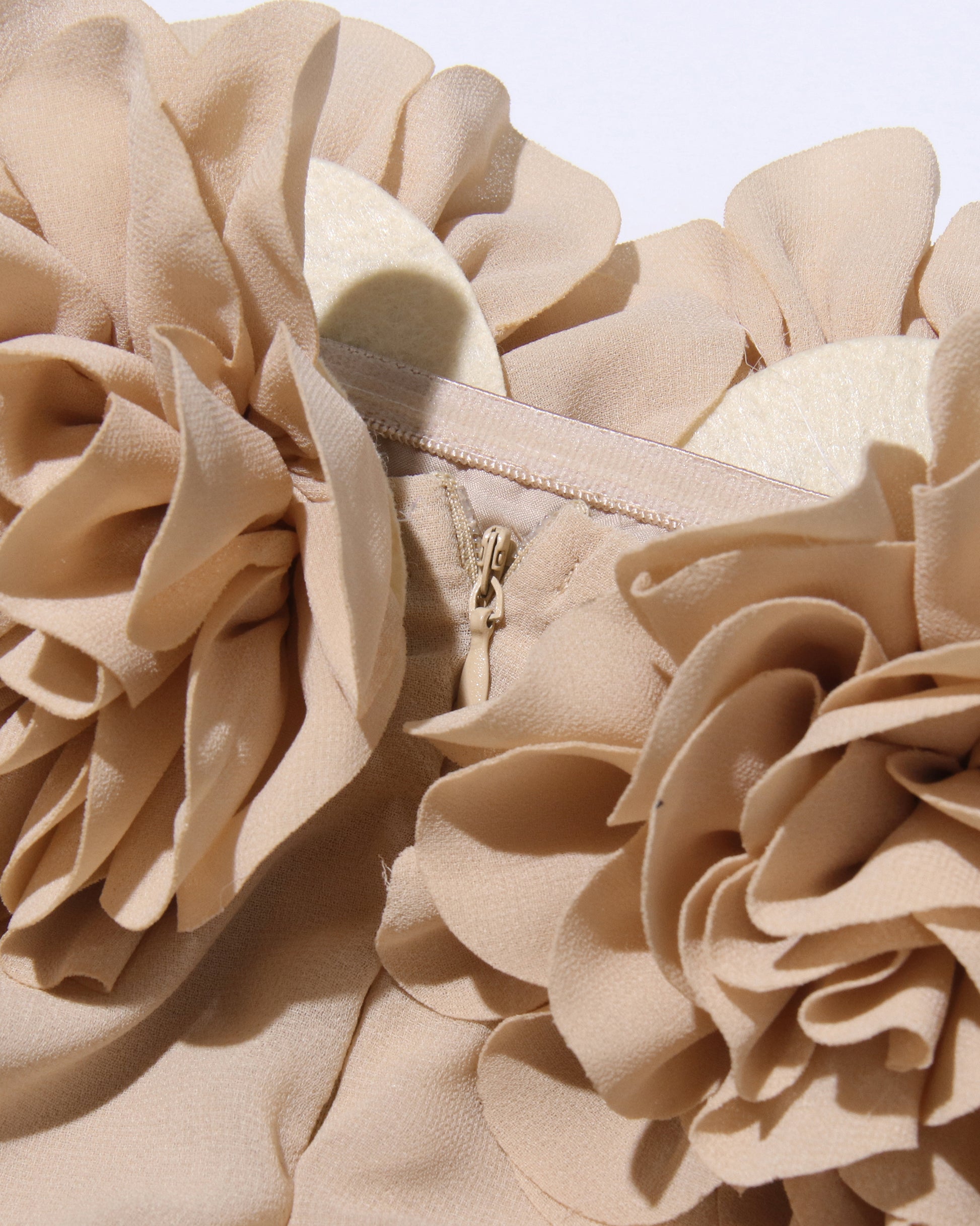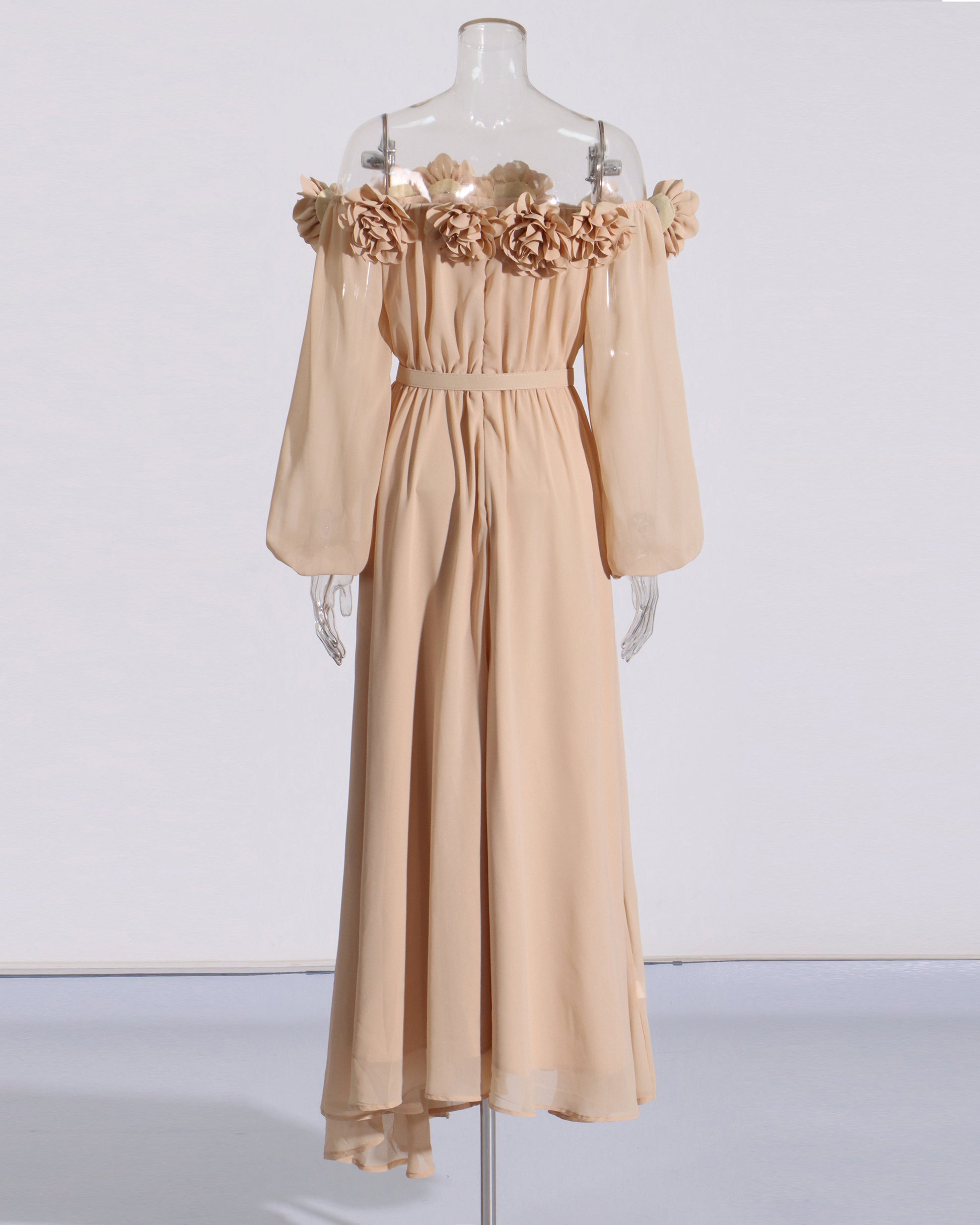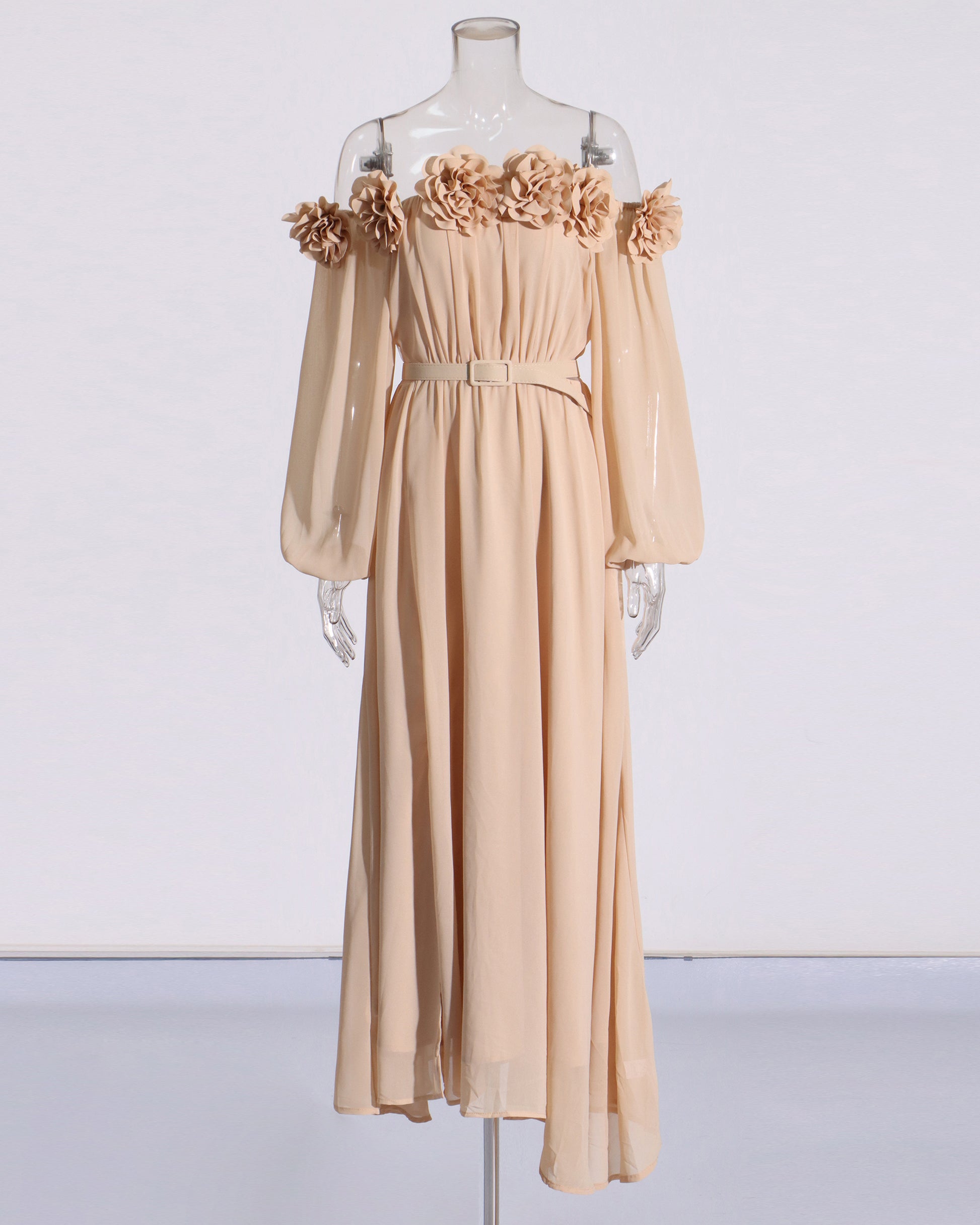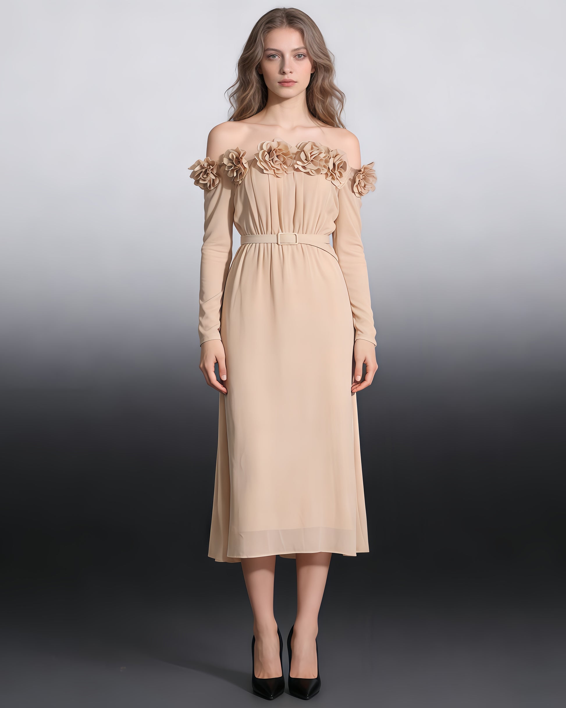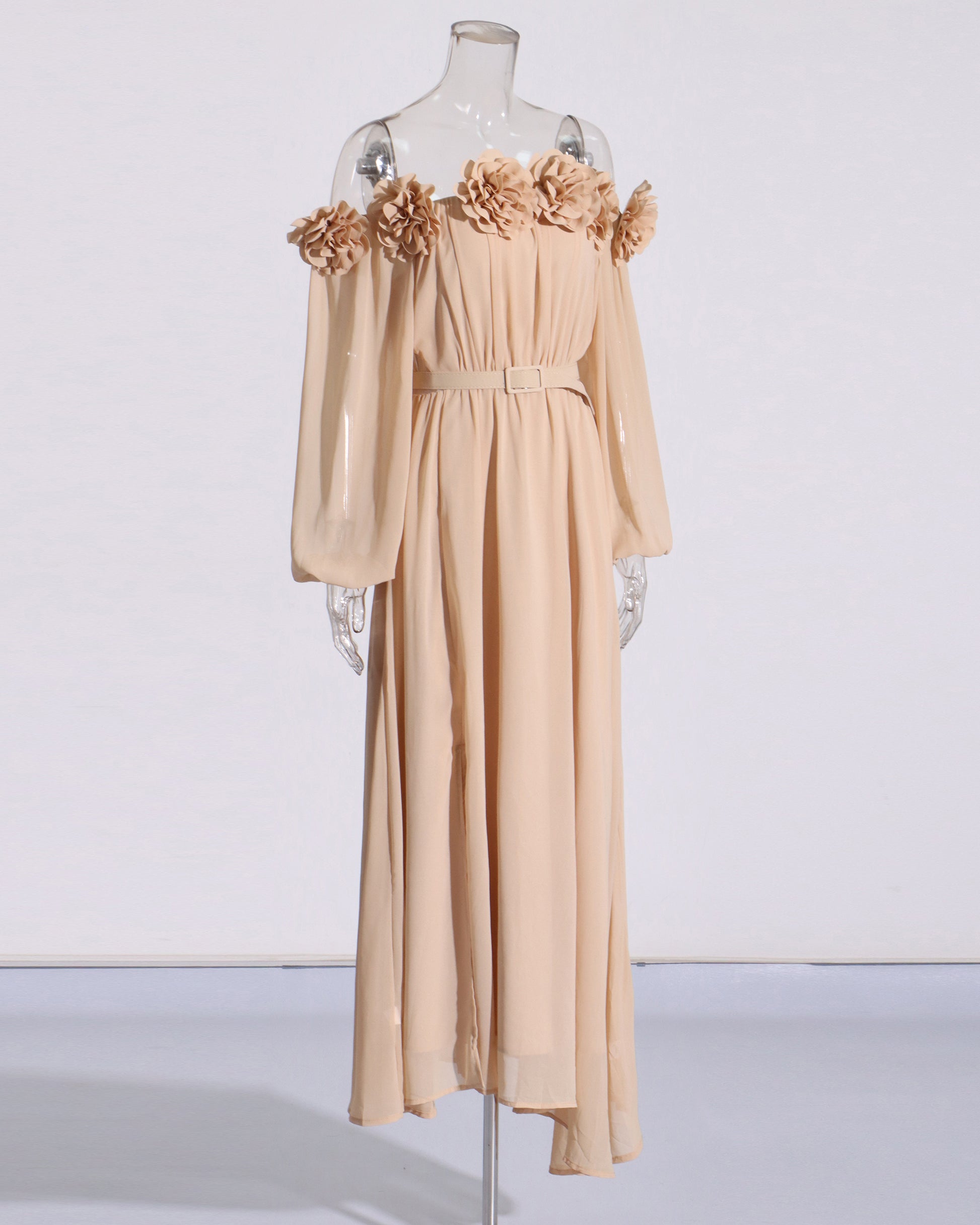 - Soft, dreamy silhouette, flowing chiffon fabric and a waist-defining belt.