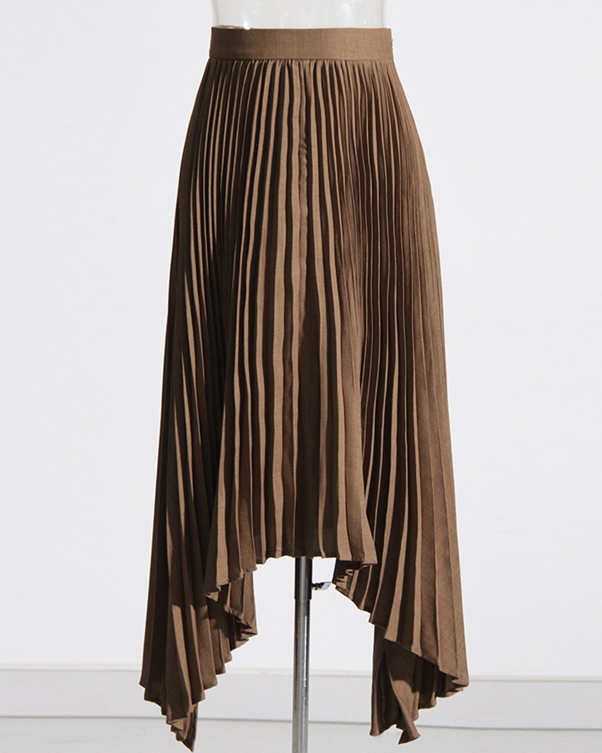 Khaki Pleated Asymmetrical Midi Skirt