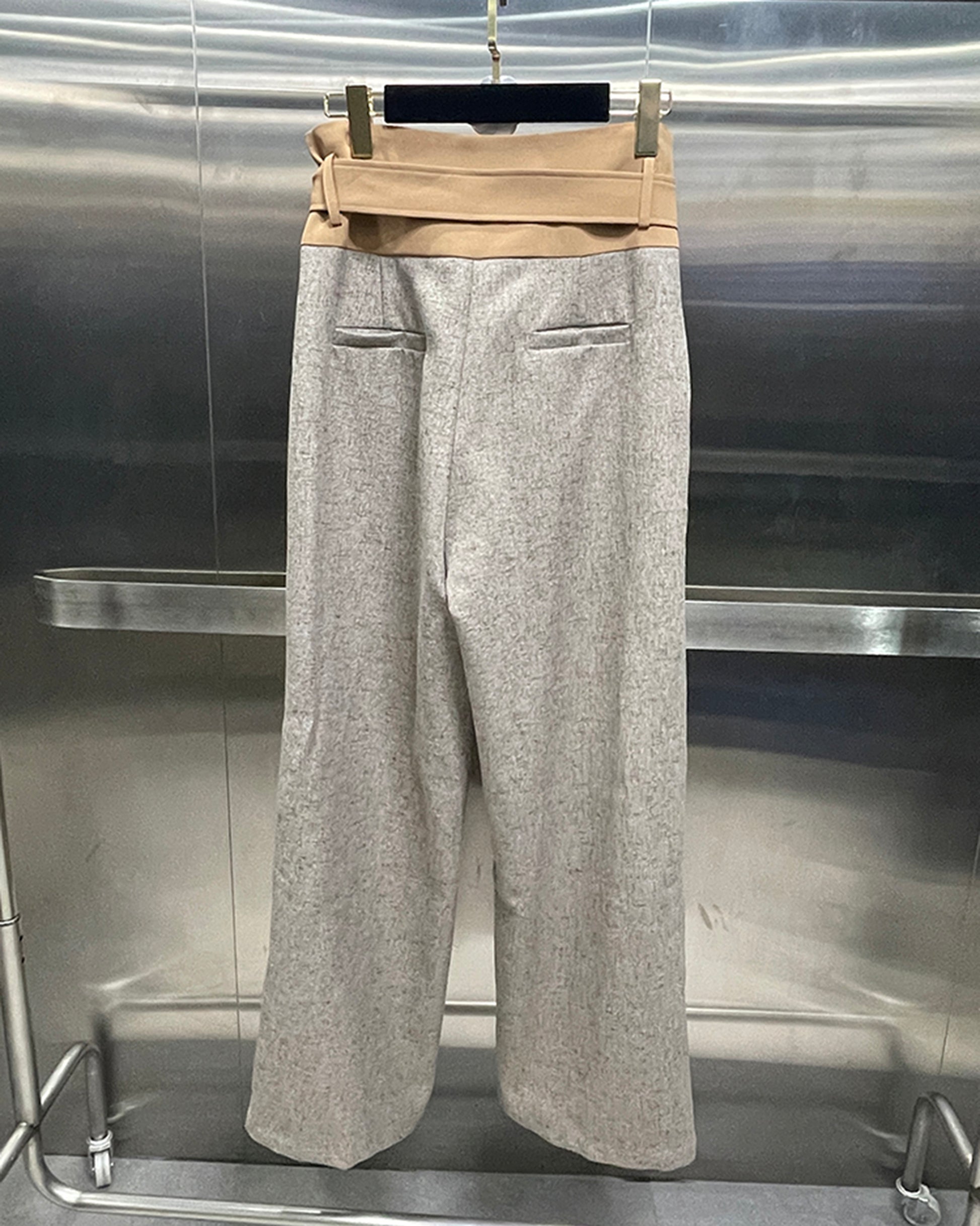Khaki Wide-Leg Trousers with Contrast Belt