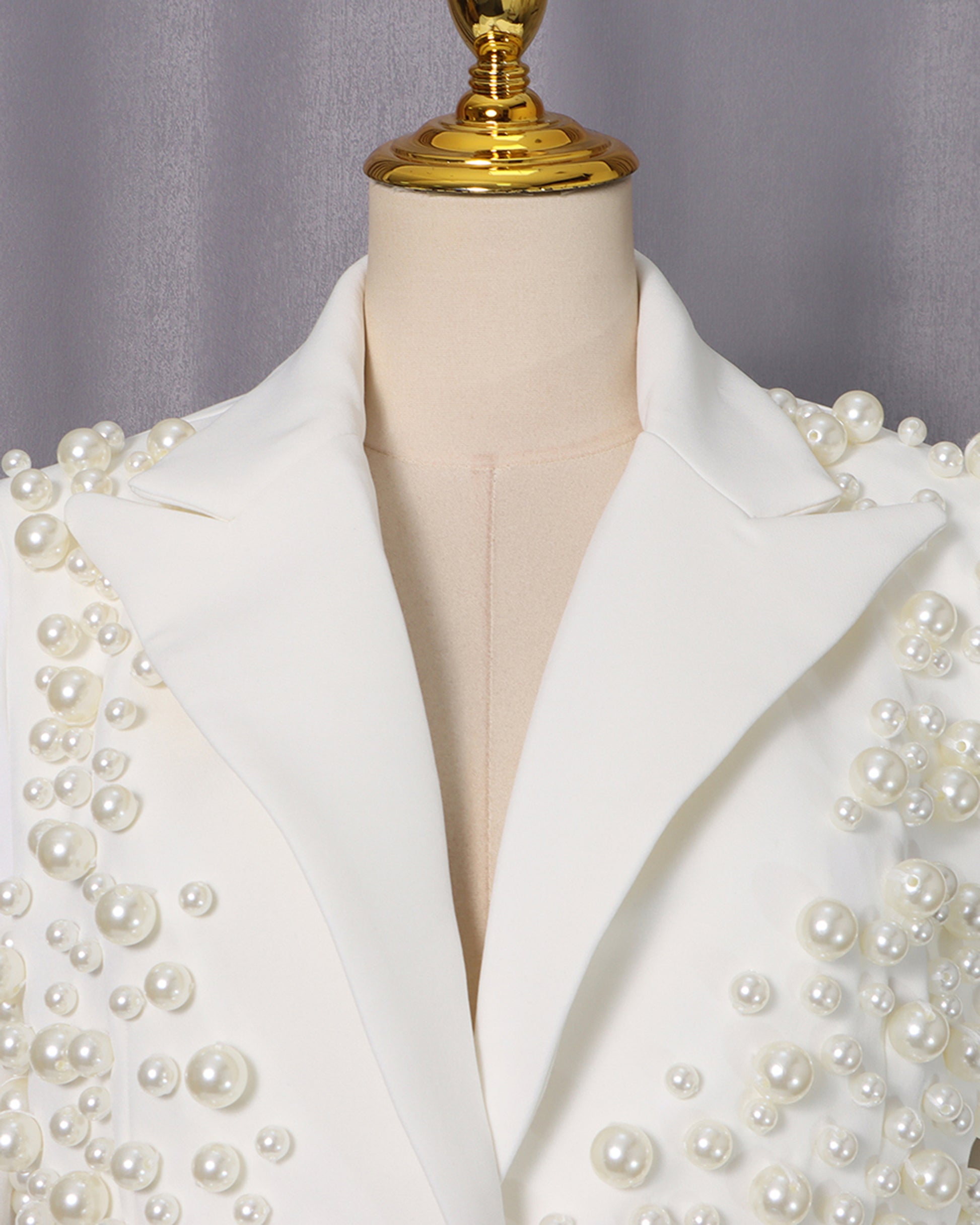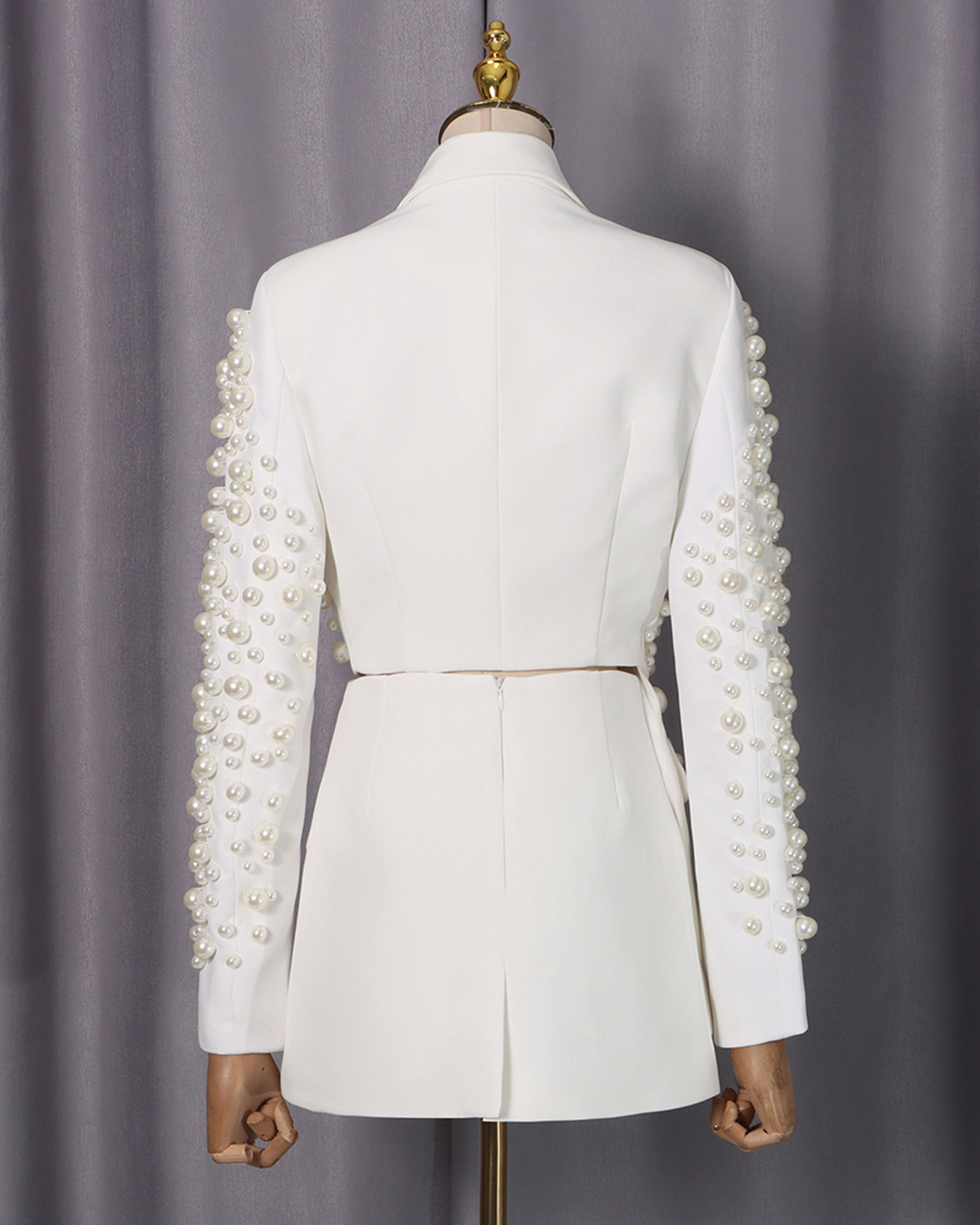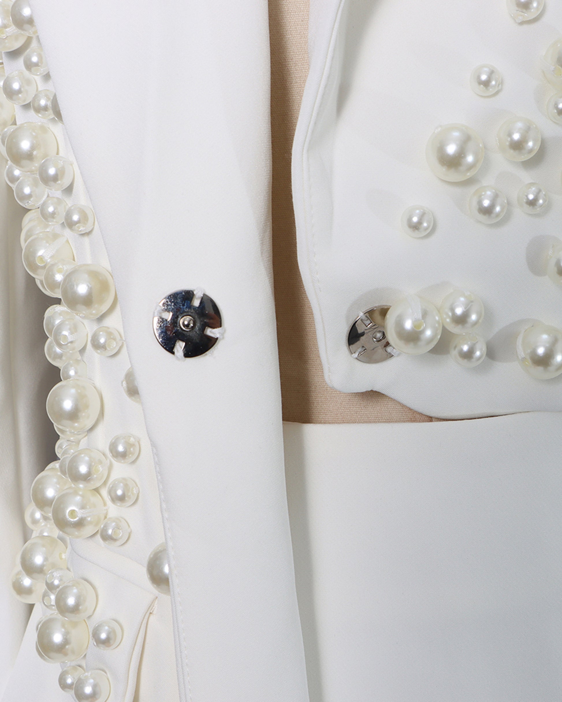 - Luxe, eye-catching silhouette, blending crisp fabric and lustrous pearl accents.