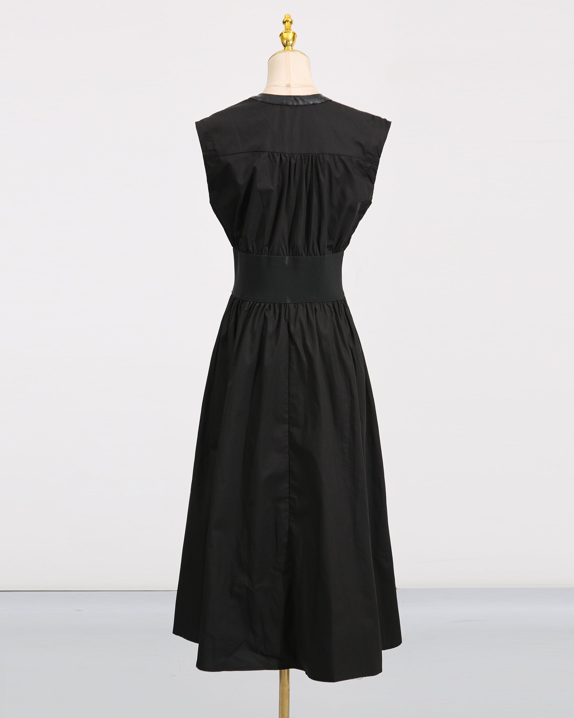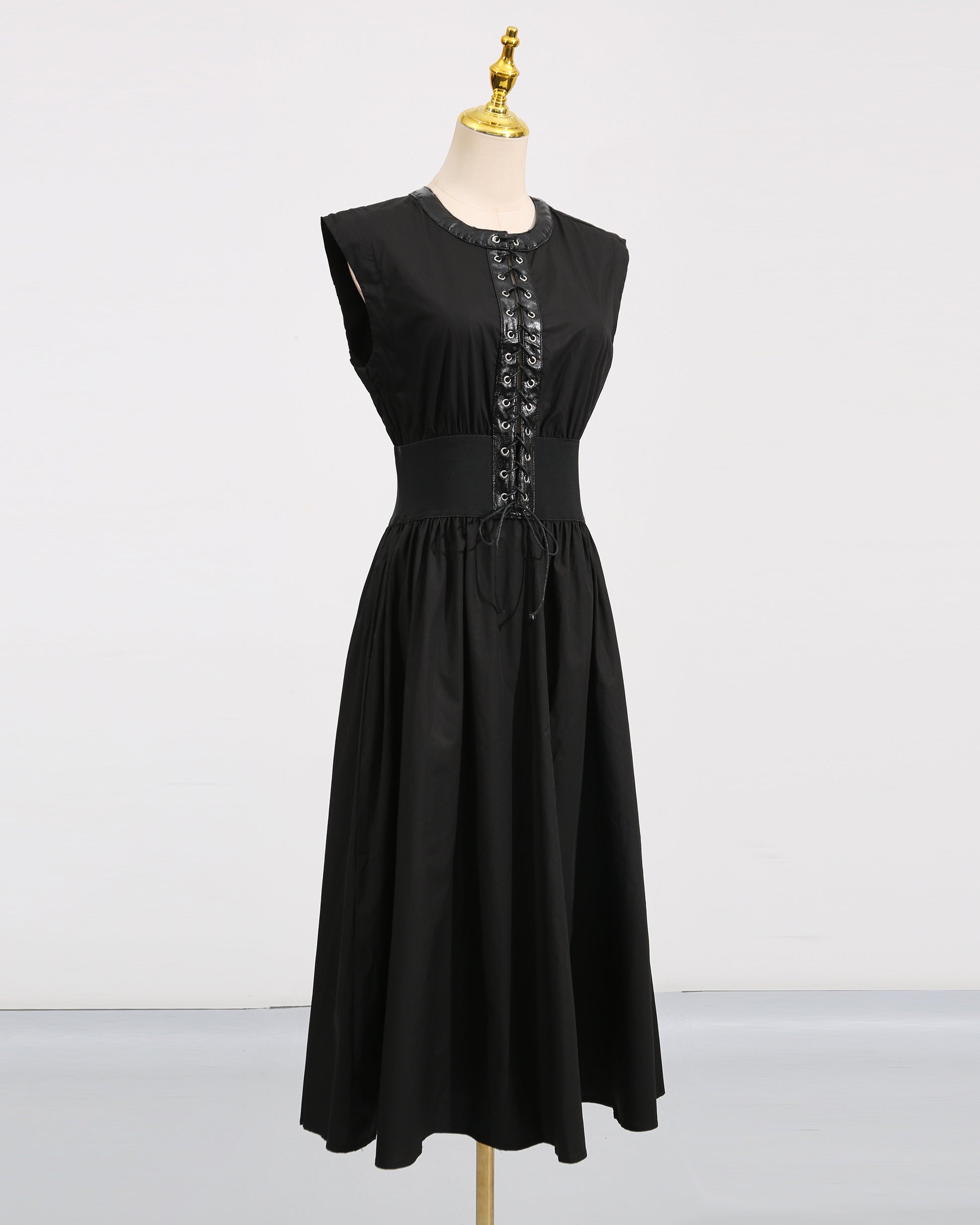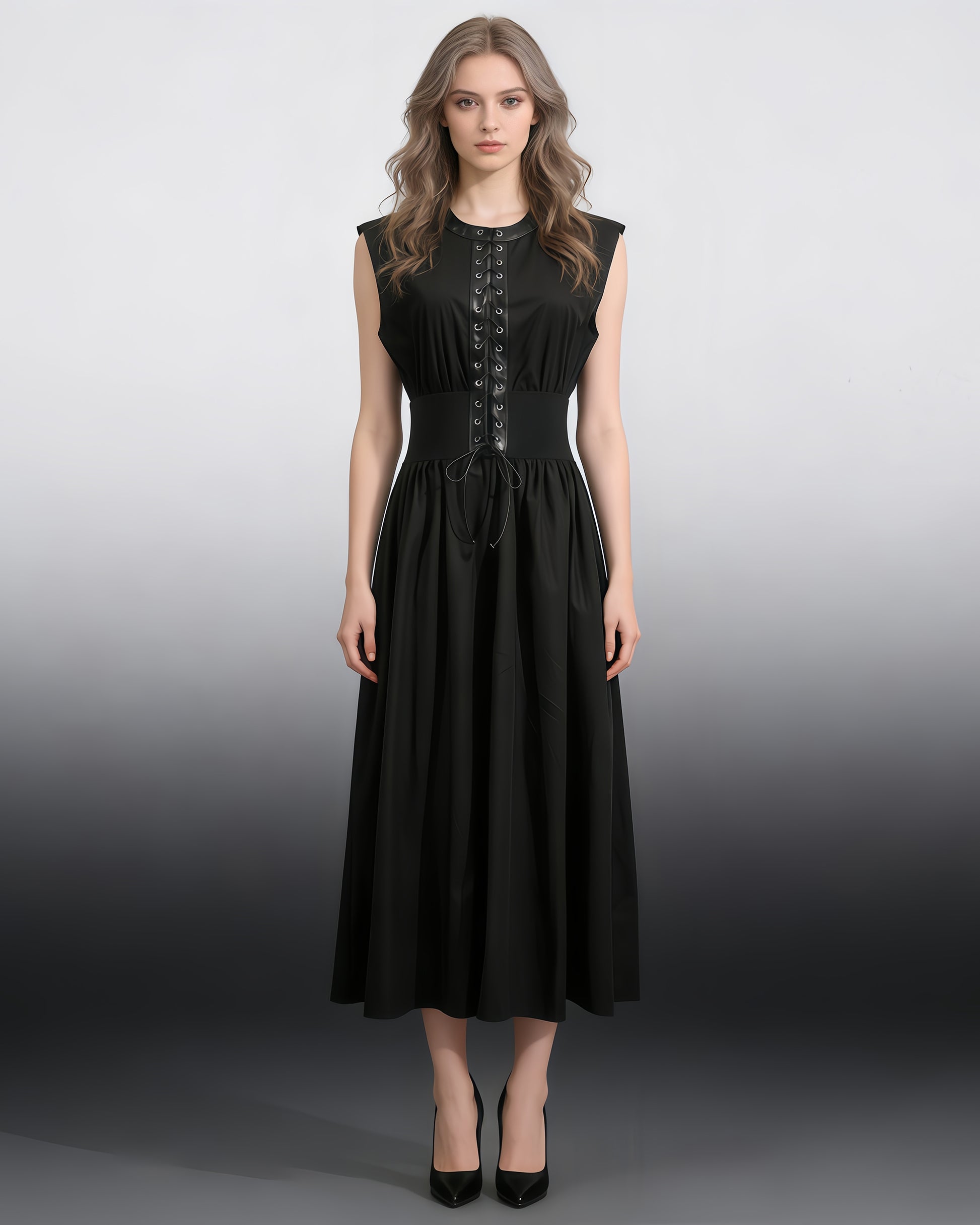 Black Lace-Up Waist Sleeveless Maxi Dress