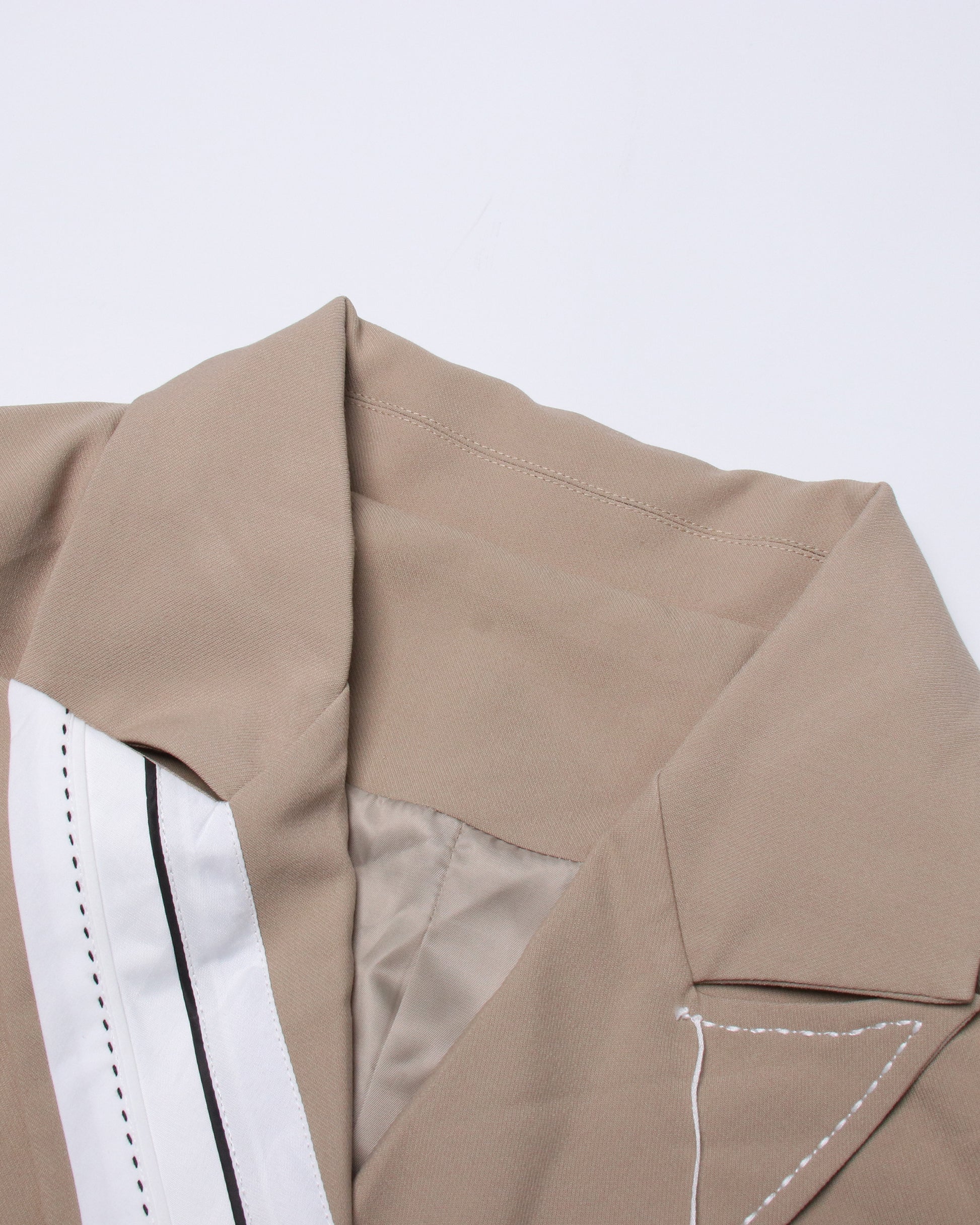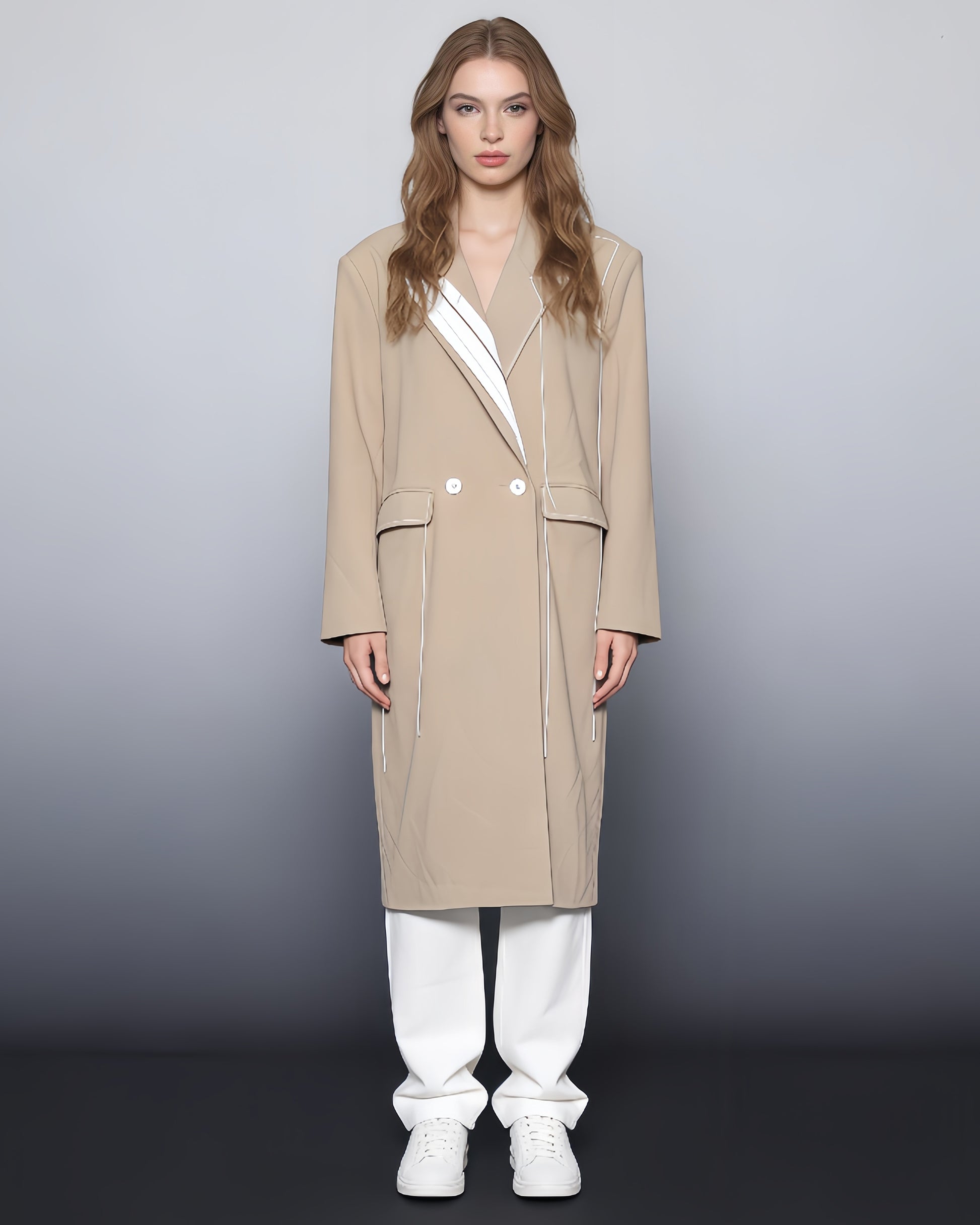Khaki Coat with Contrast Stitching & Asymmetrical