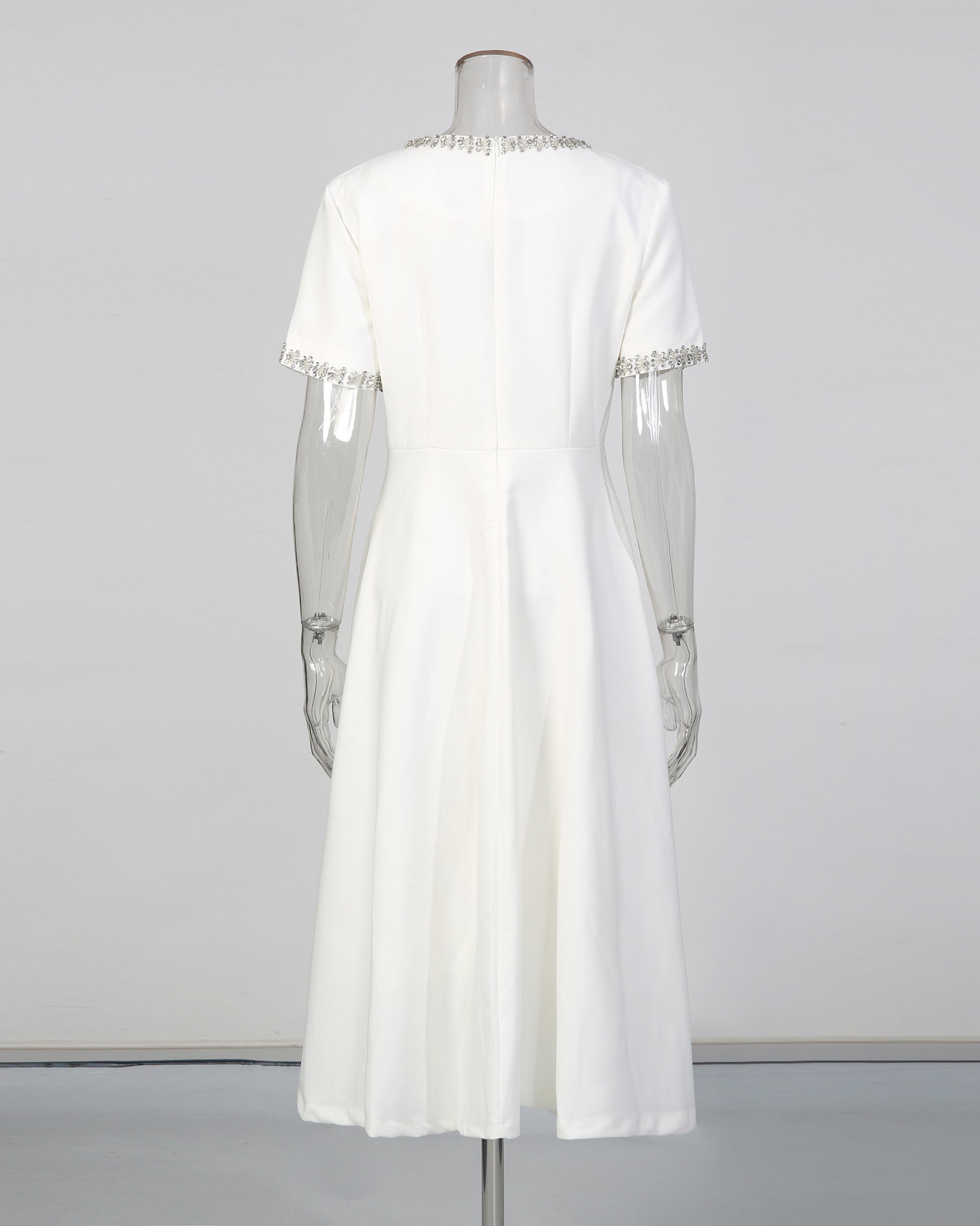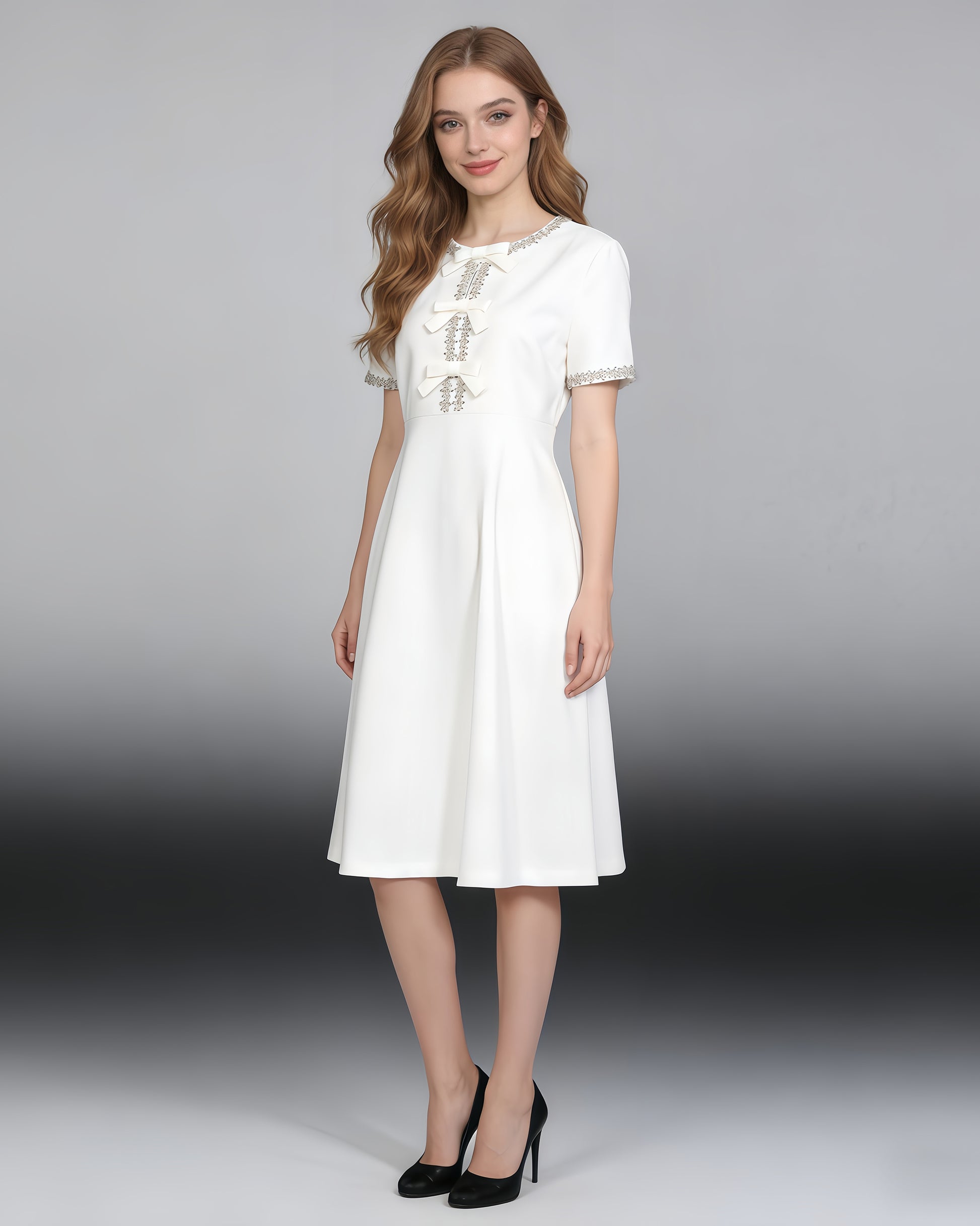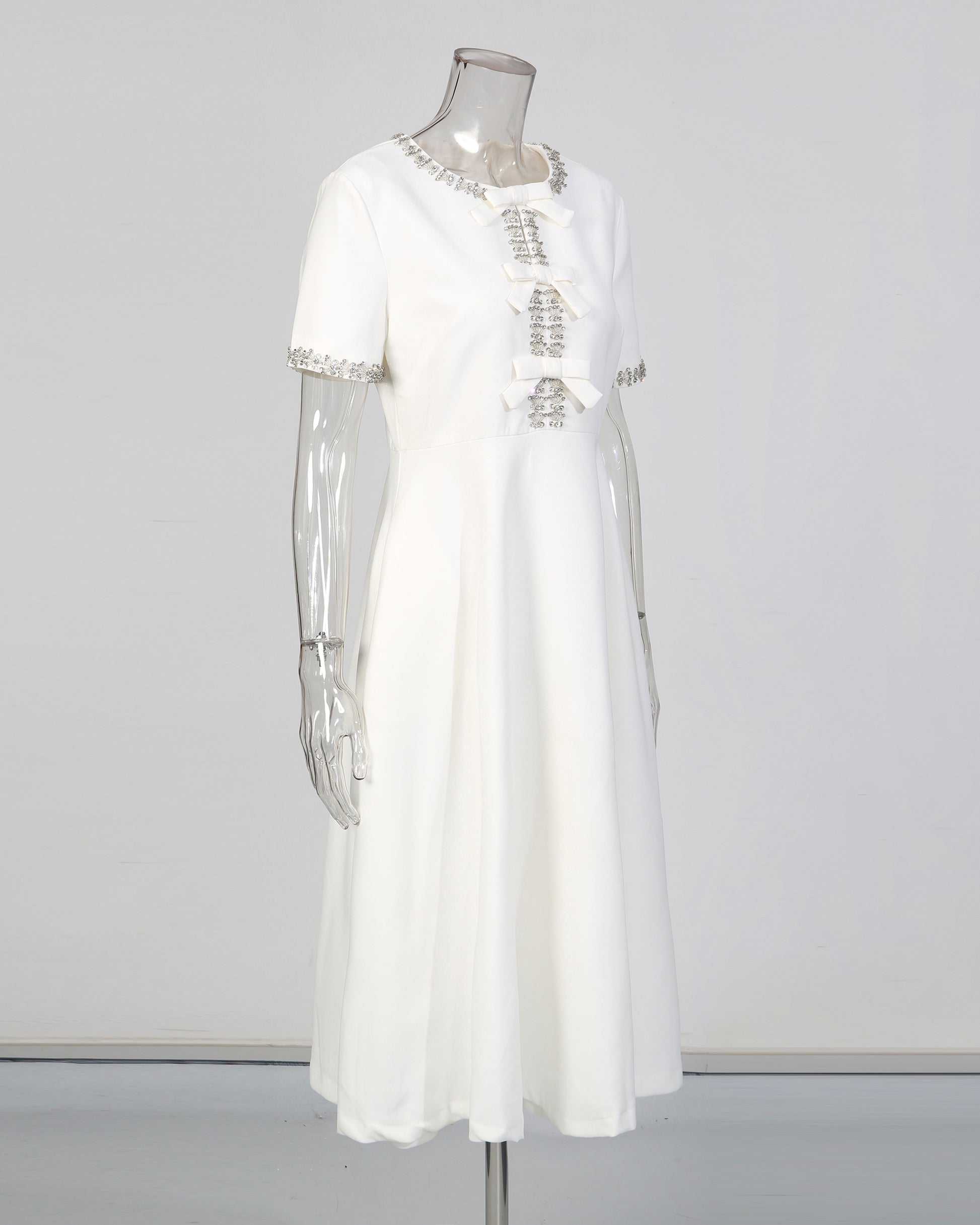 White Crystal-Embellished Bow Midi Dress