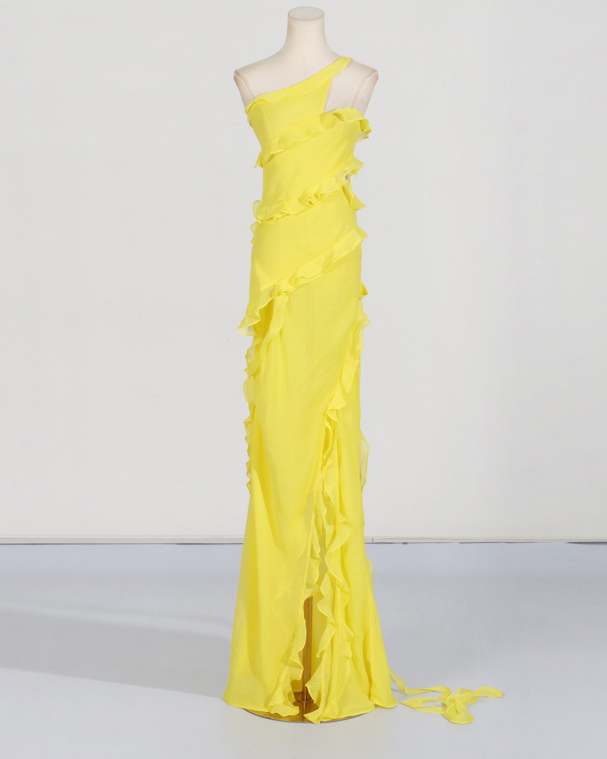 - Vibrant, ethereal silhouette, blending lightweight chiffon and soft drape.
