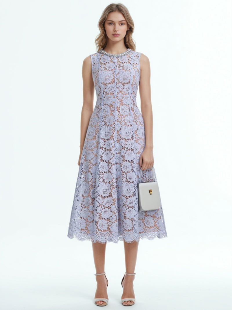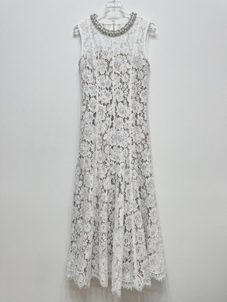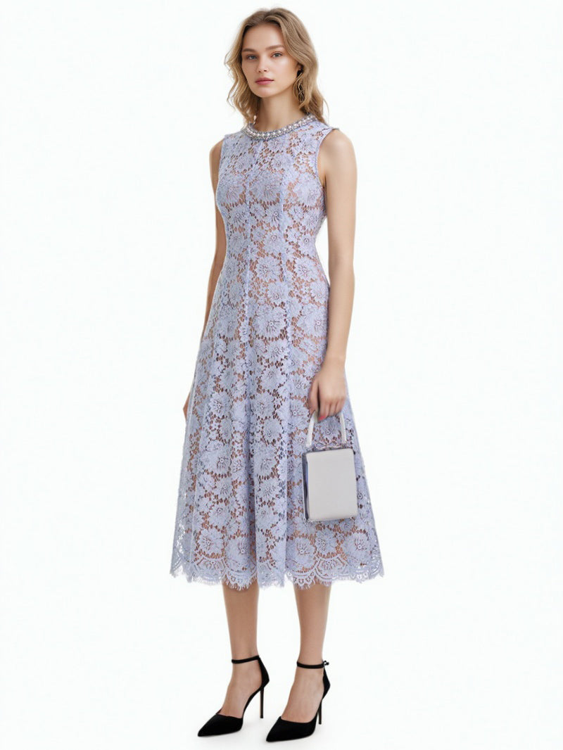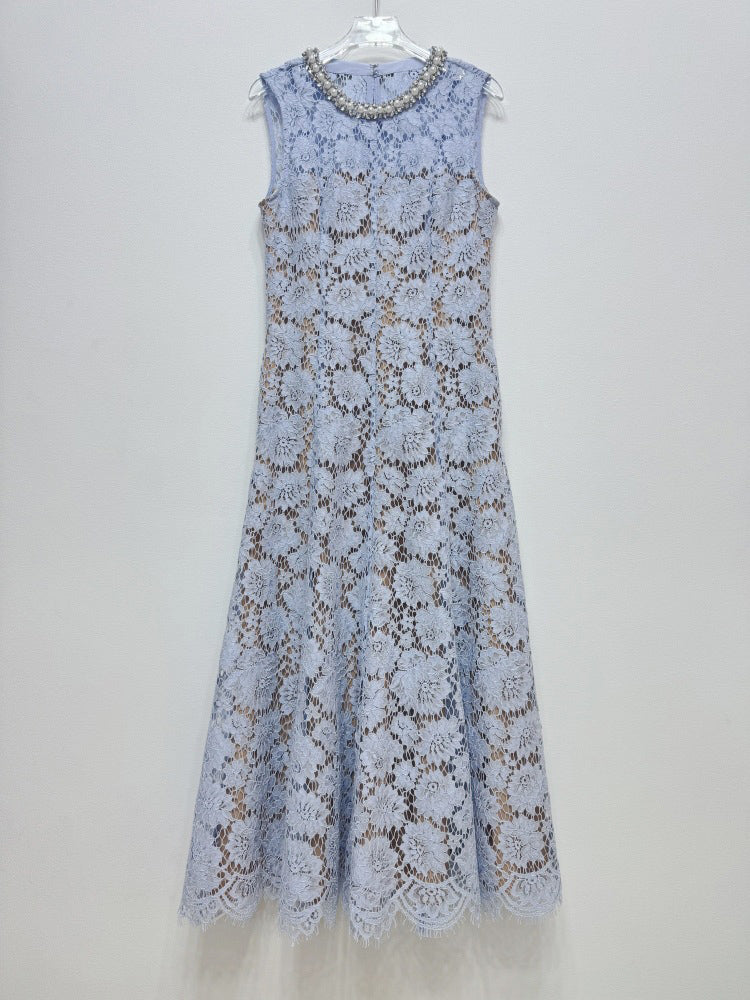 Flower Lace Patchwork Pearls Long Dress