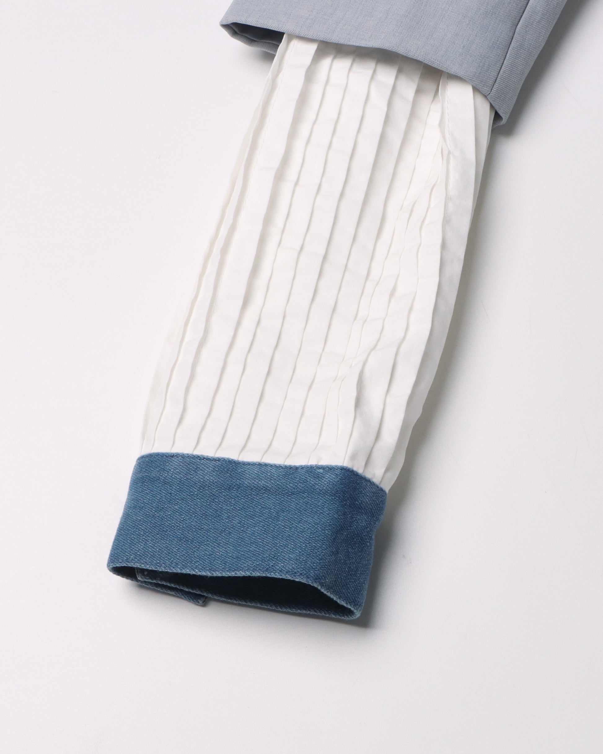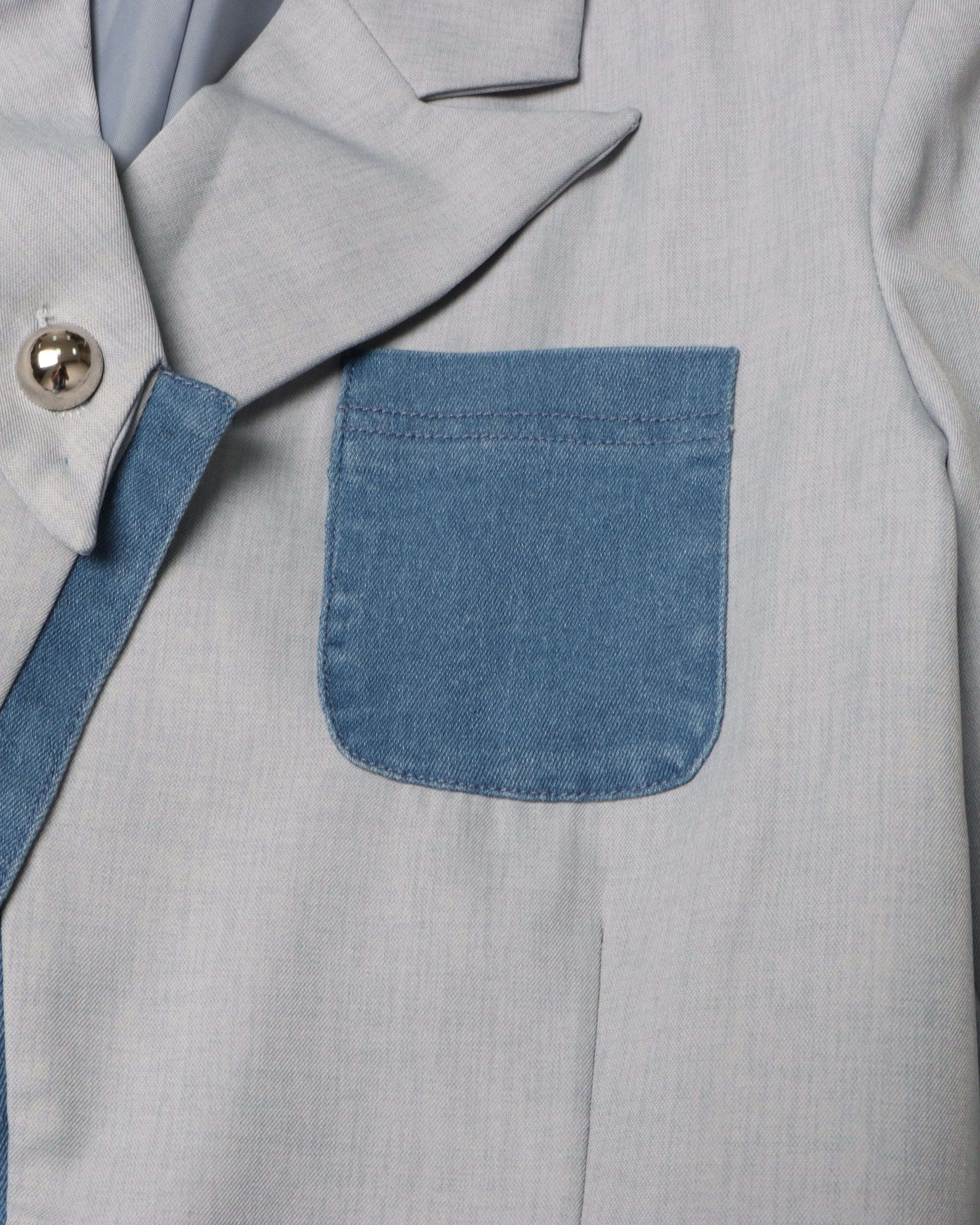 Gray Blazer with Denim Contrast Accents
