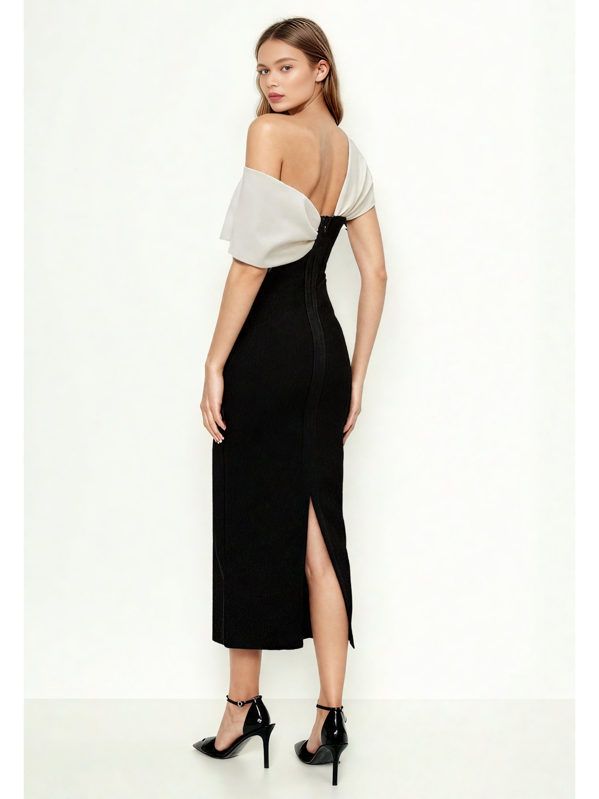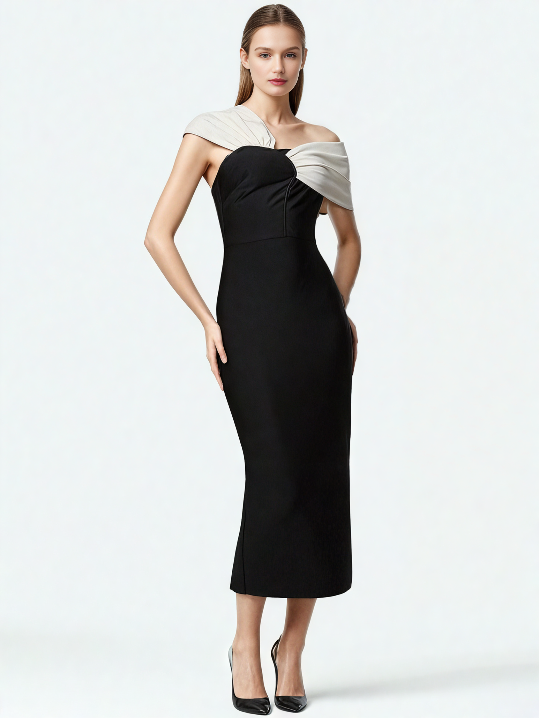Transform your wardrobe with our Hit Color Off Shoulder Long Dress. This luxurious and exclusive piece exudes elegance and sophistication. Show off your style with its off-shoulder design and vibrant colors. Perfect for any occasion, this dress will surely make a statement.