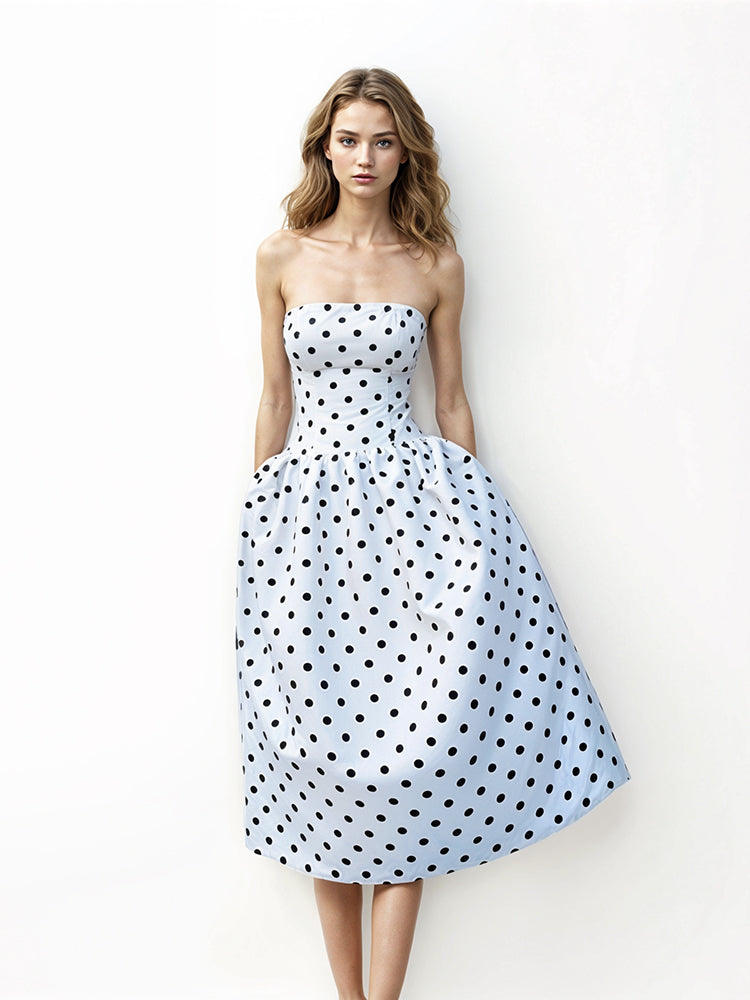 Indulge in elegance with our Hit Color Printing Chic Dresses. This high-end polka dot dress exudes sophistication with its vintage sweetheart neckline and flattering silhouette. Perfect for any occasion, it's a timeless addition to your wardrobe. Transform into a fashion icon with this stunning piece.