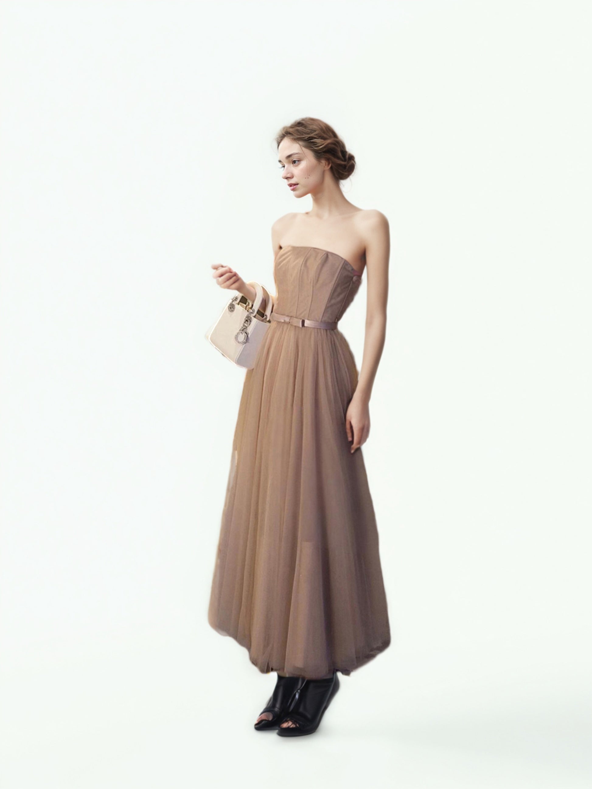 Mesh Pleated Off Shoulder Long Dress