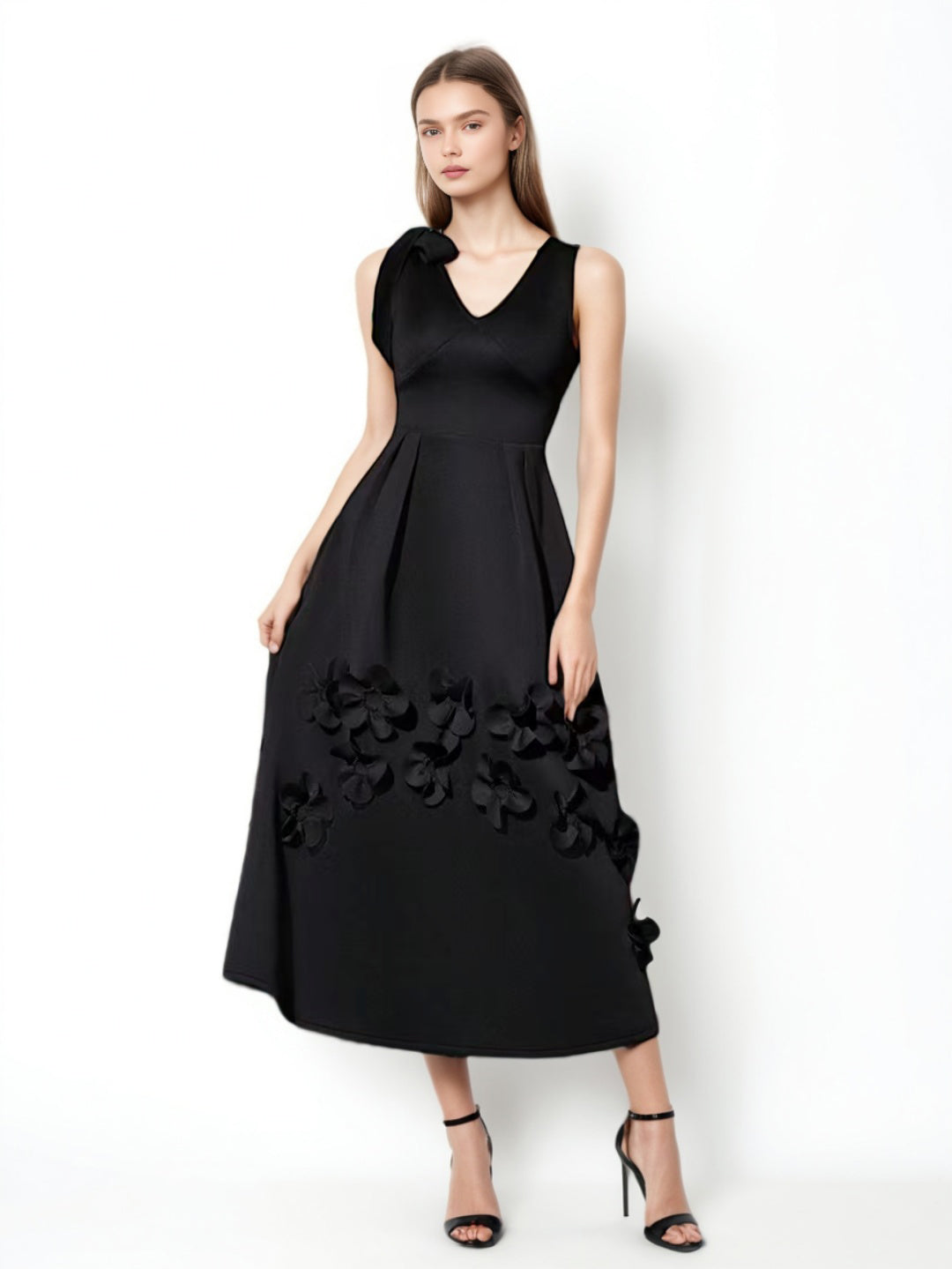 Indulge in elegance with our V-neck Patchwork Flower Long Dress. This sophisticated dress features a delicate v-neckline and beautiful patchwork flowers, creating a uniquely luxurious look. Perfect for any occasion, this dress will elevate your style and make you feel like a true fashion icon.