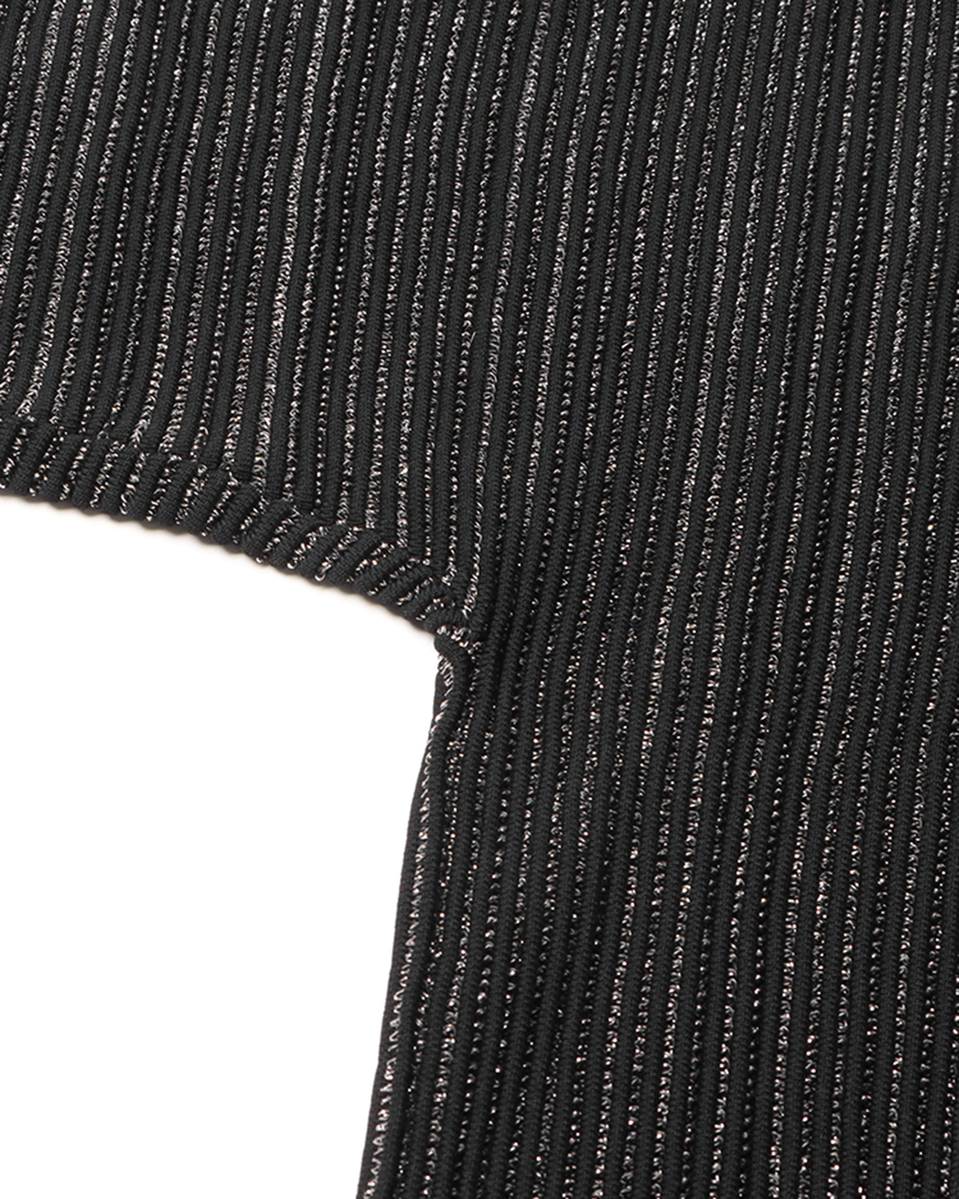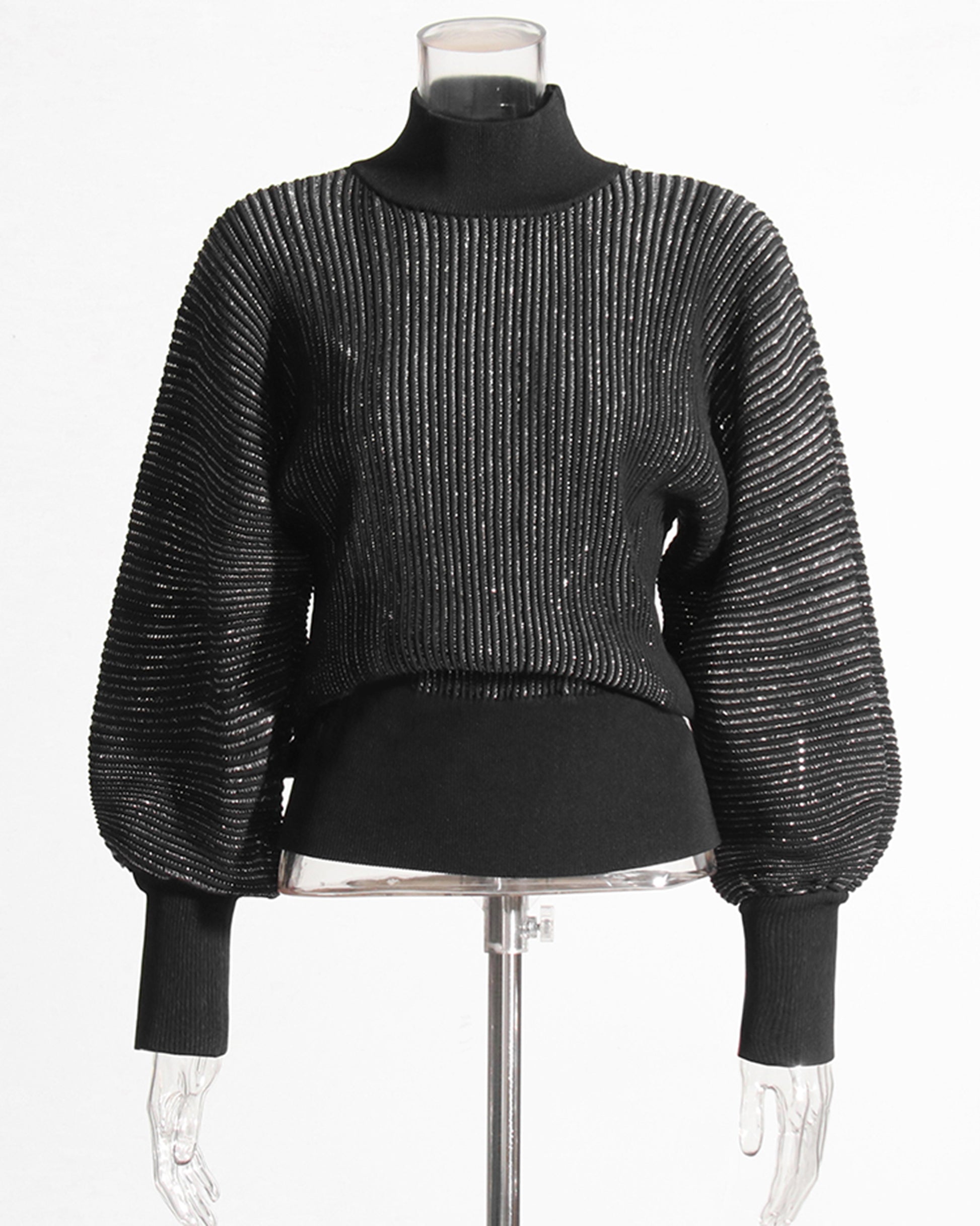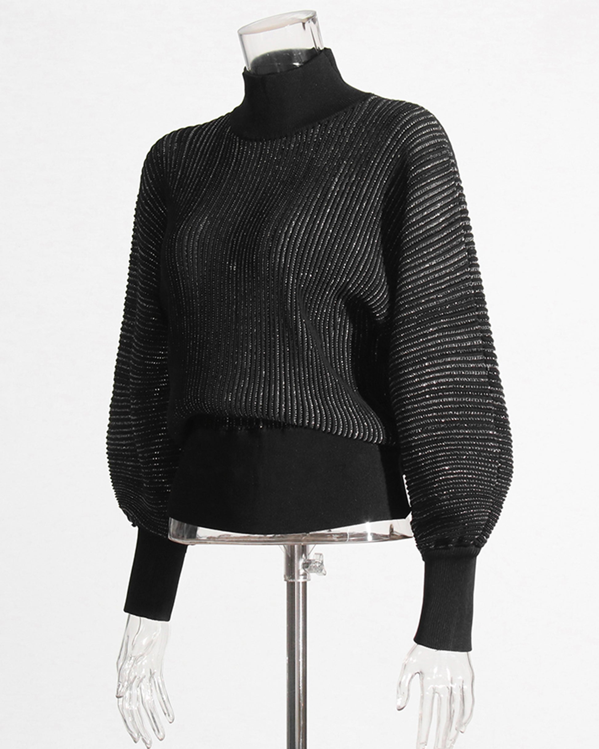 Black Ribbed Turtleneck Sweater with Puff Sleeves