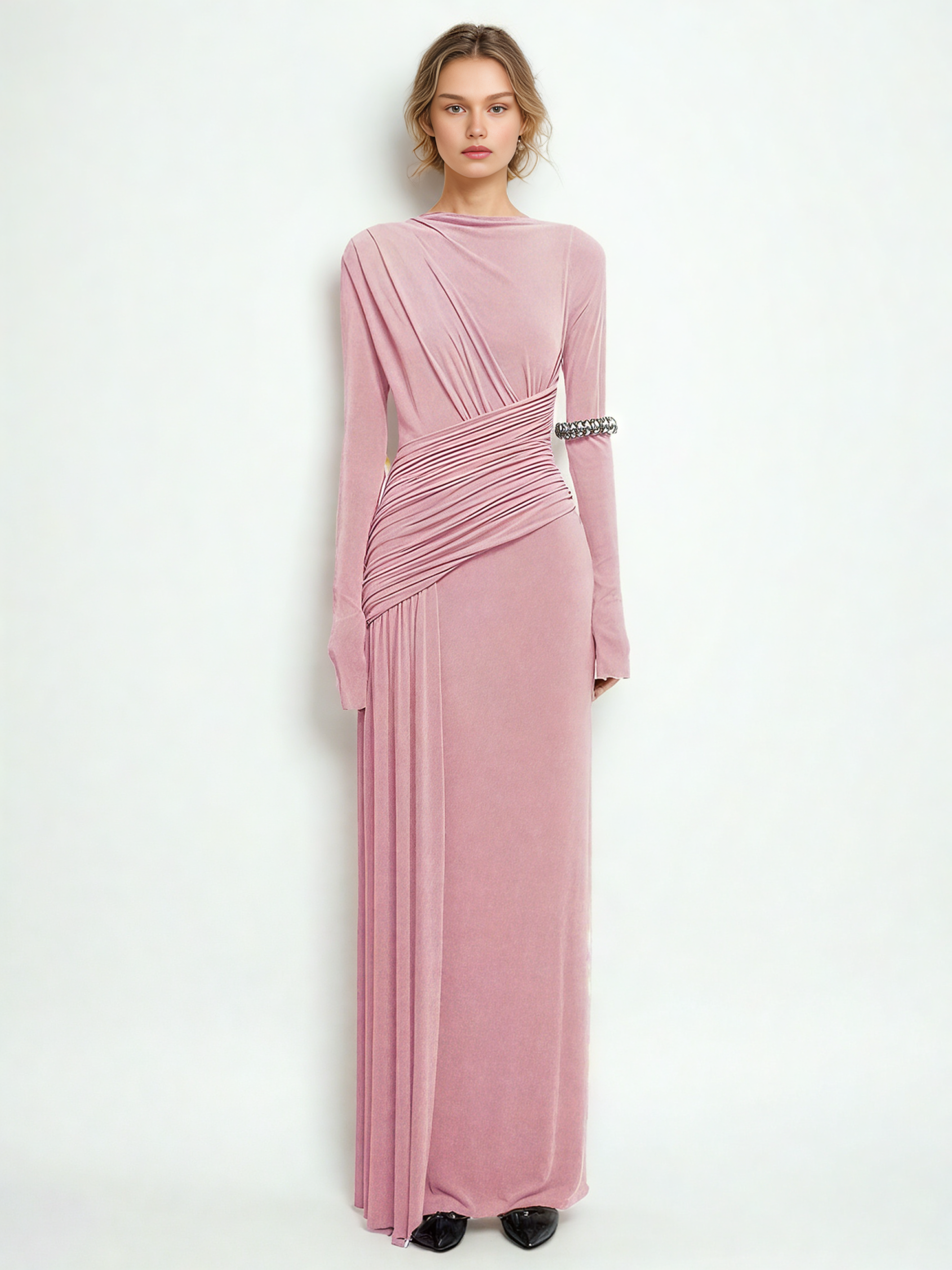 Elegant Solid Pleated Long Dress