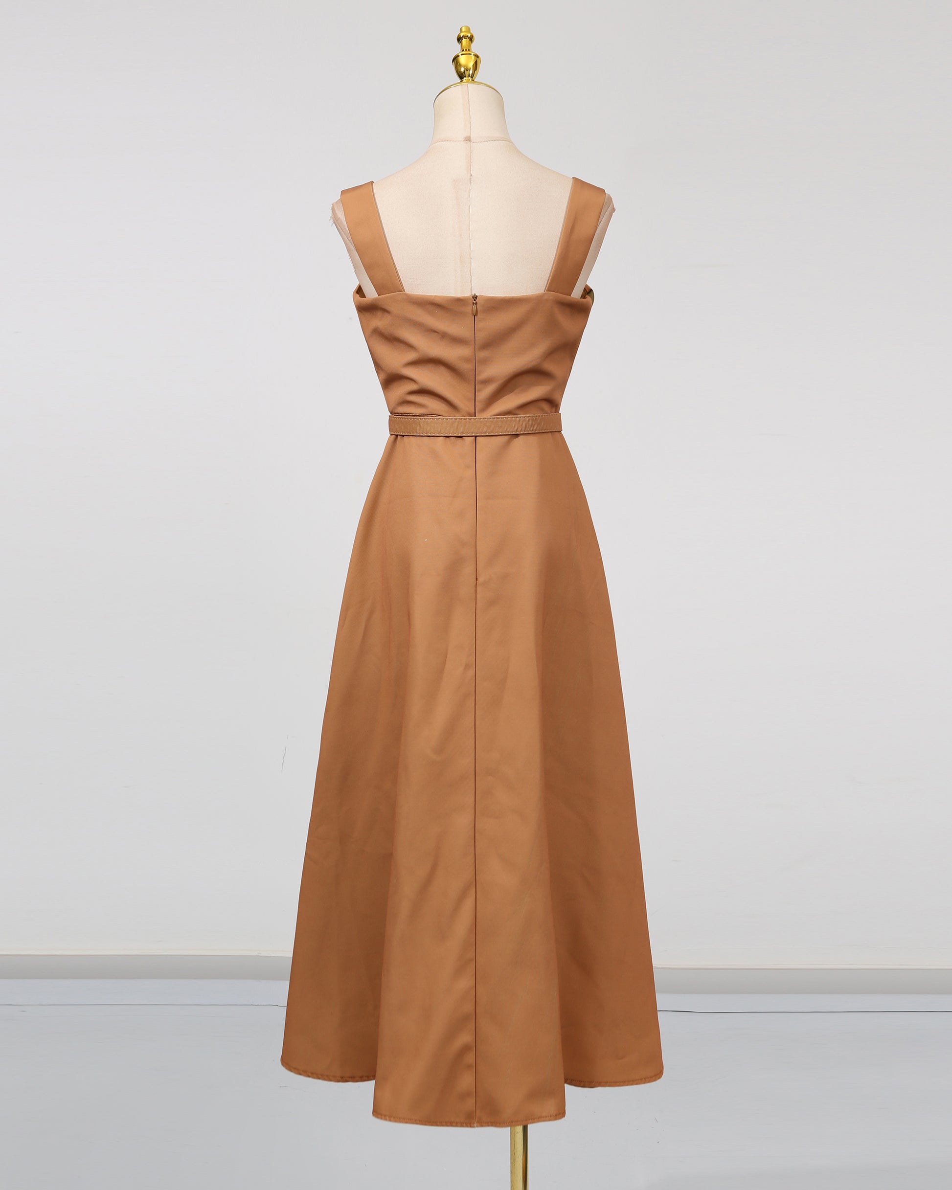 Khaki Print Square Collar Midi Dress