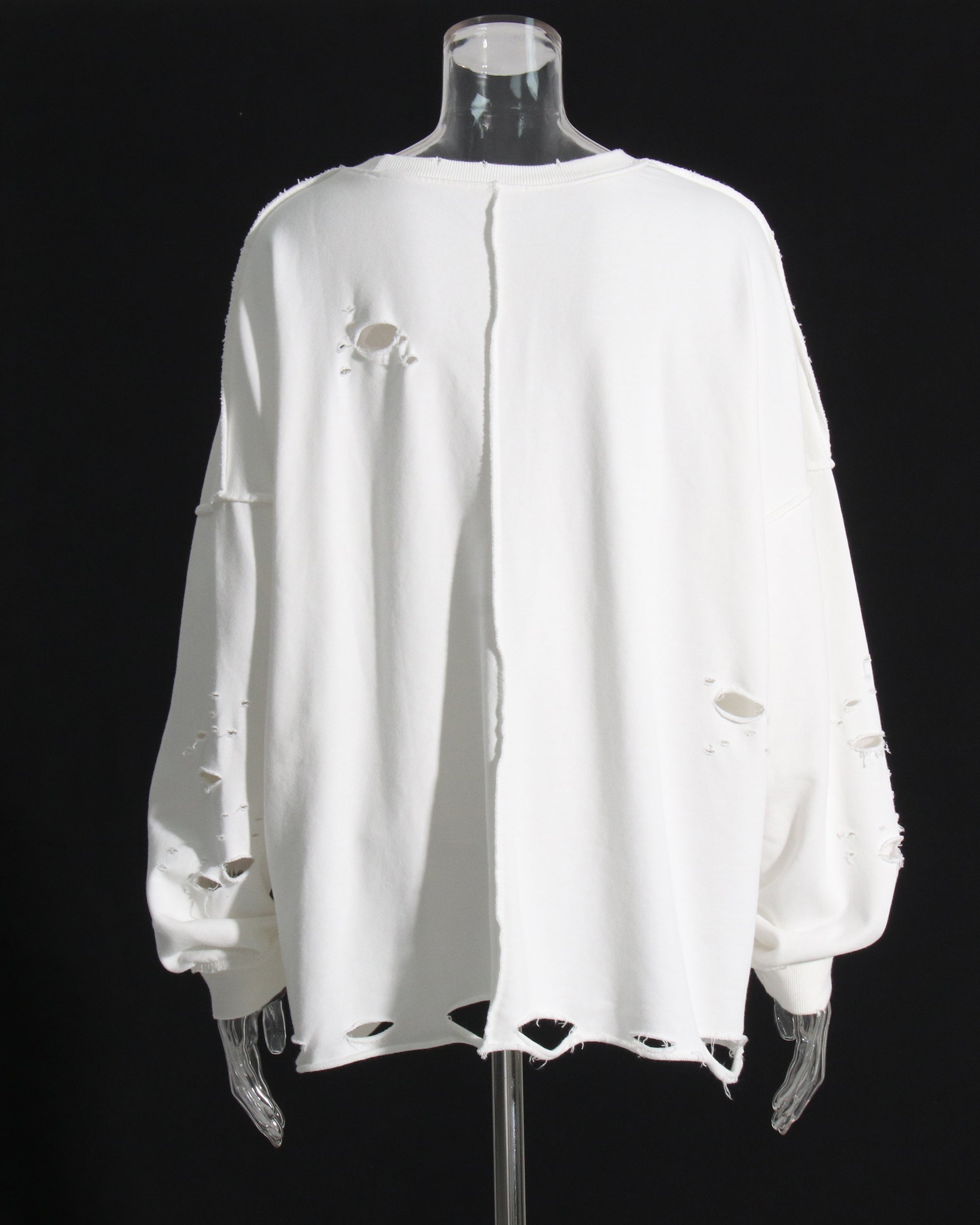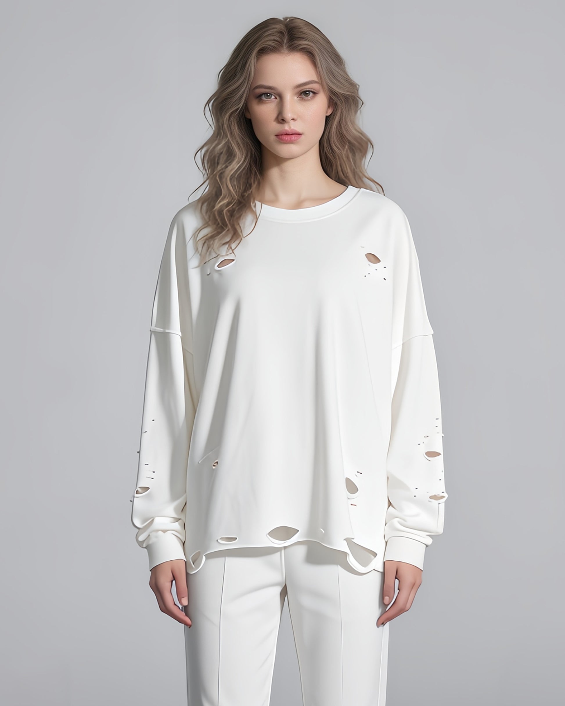 White Distressed Oversized Crewneck Sweatshirt