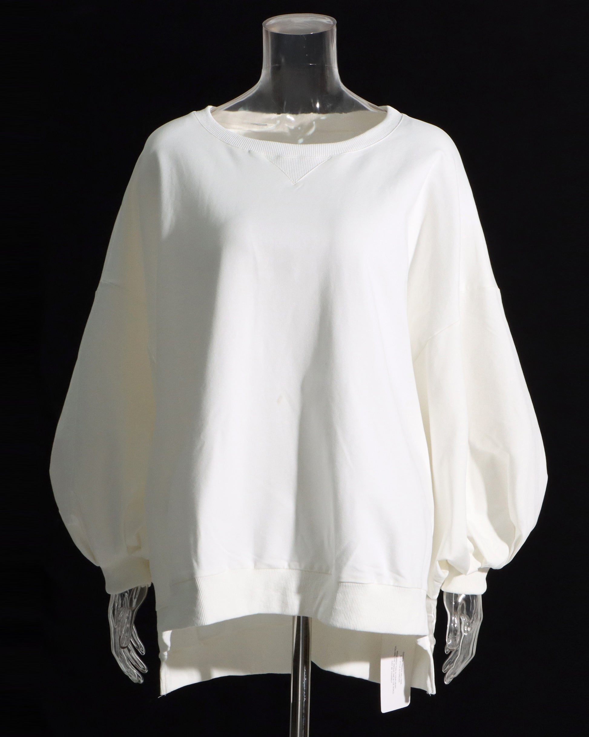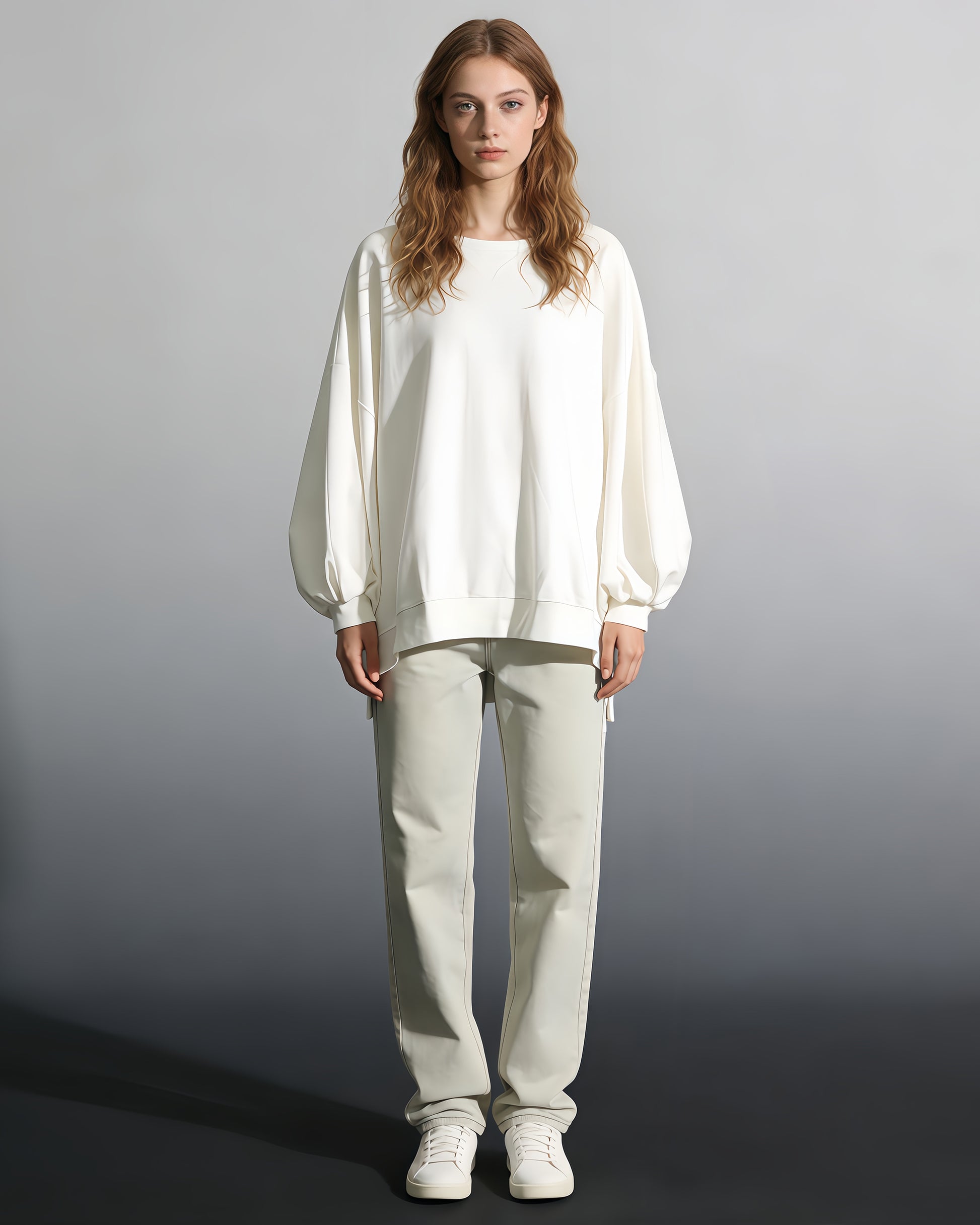 White Oversized Balloon-Sleeve Crewneck Sweatshirt
