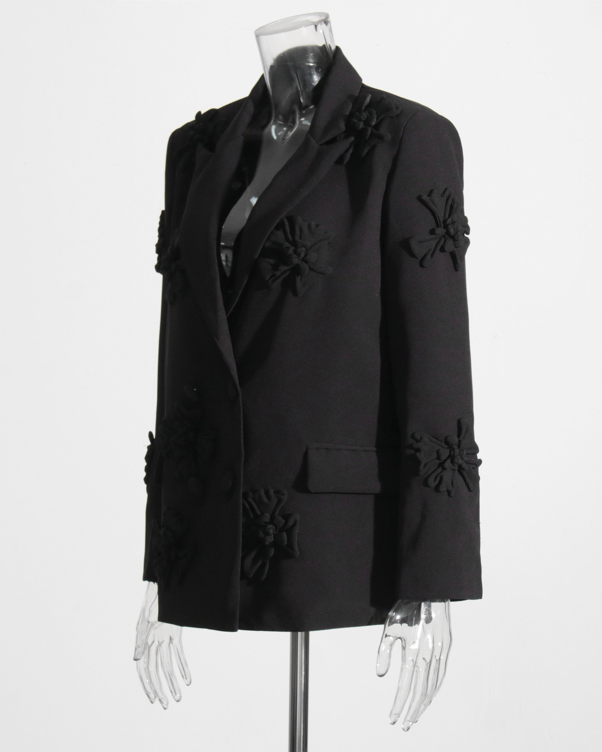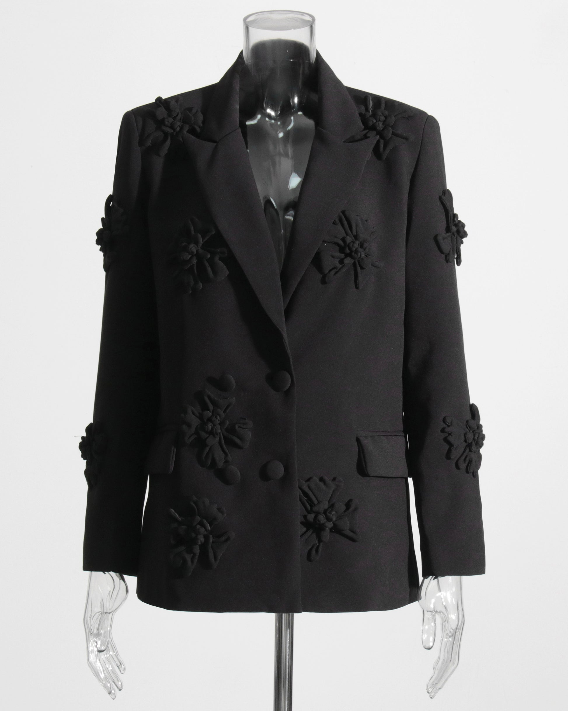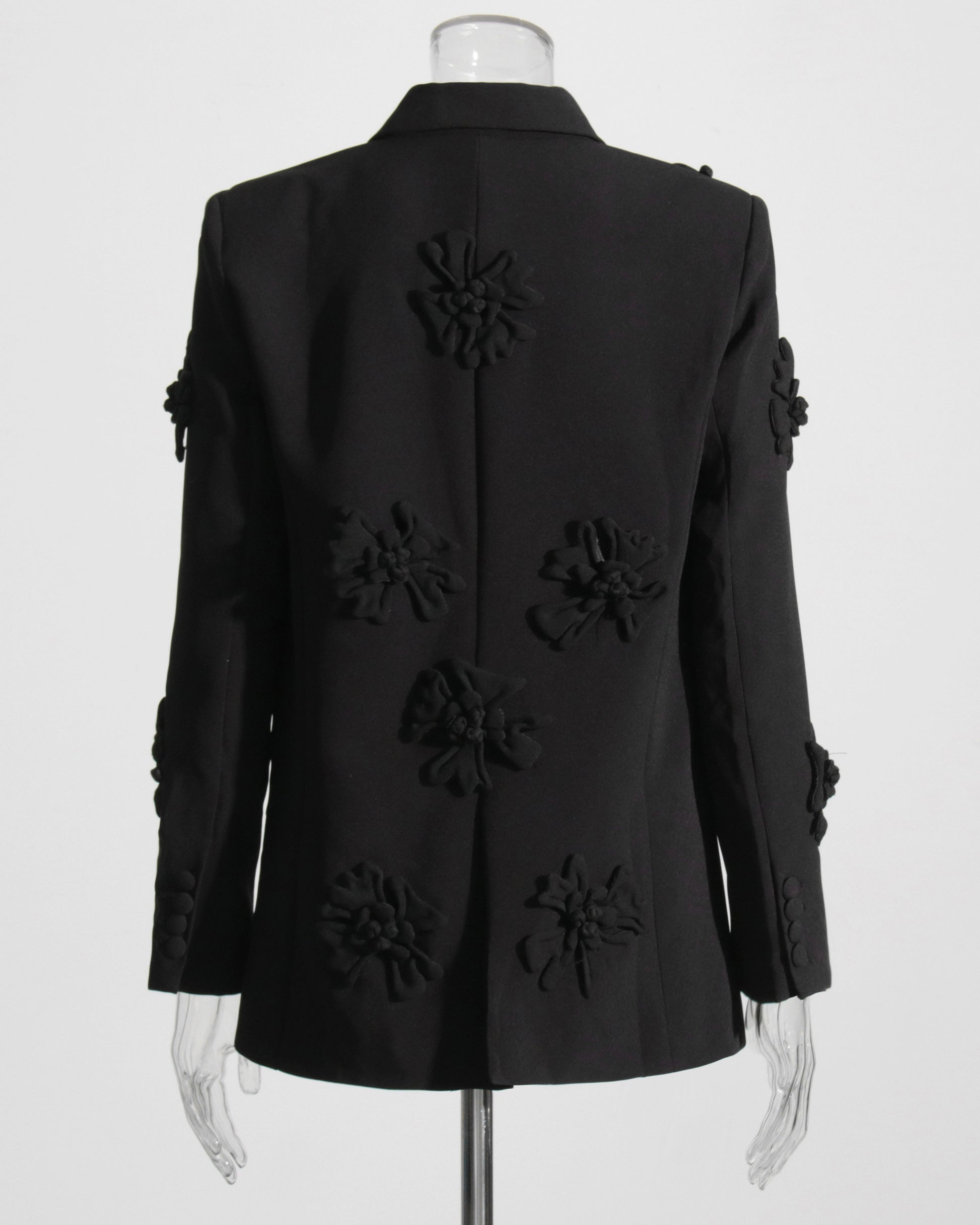 Black 3D Floral Double-Breasted Blazer