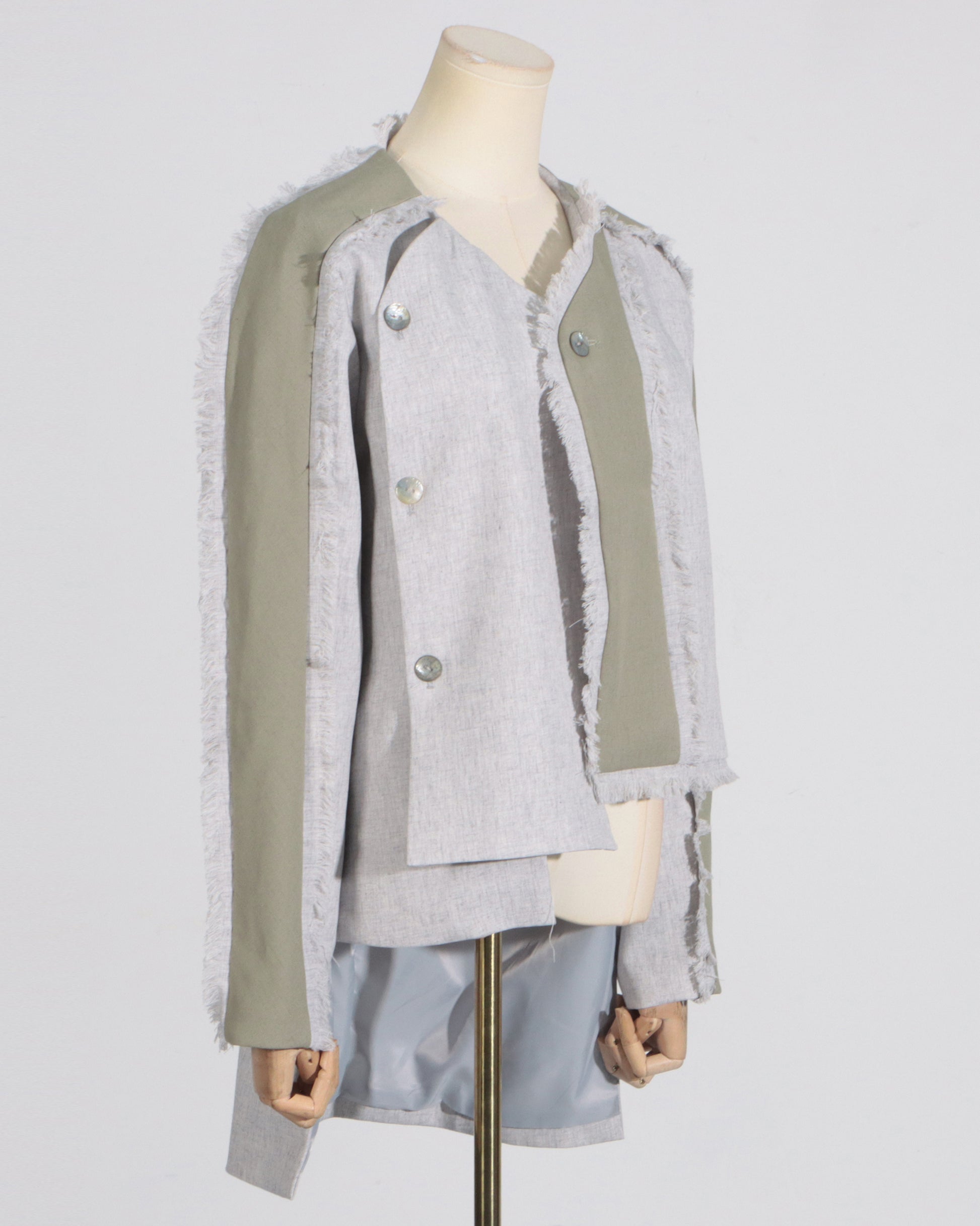 Grey Raw-Edge Patchwork Jacket