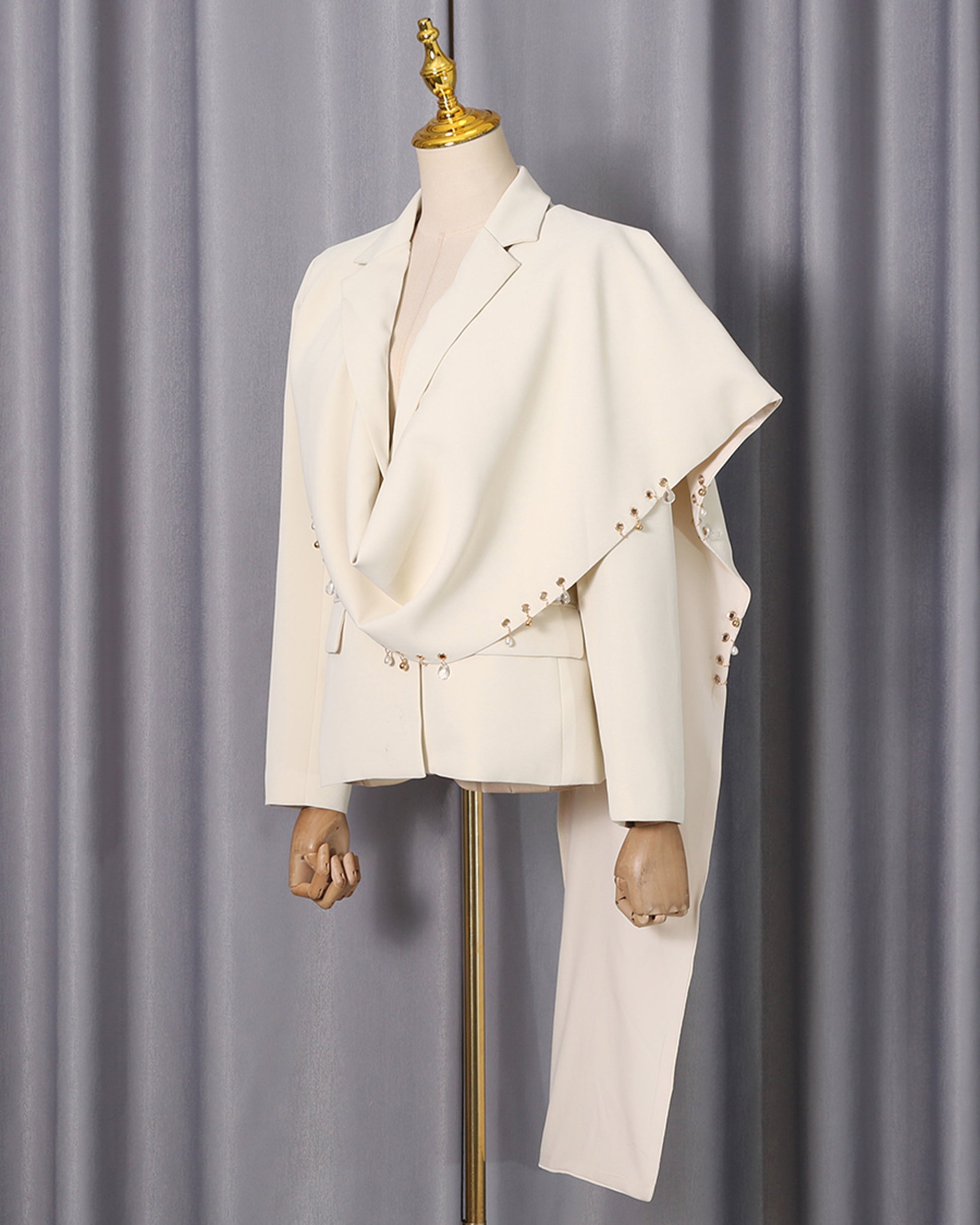 Apricot Beaded Asymmetric Drape Blazer