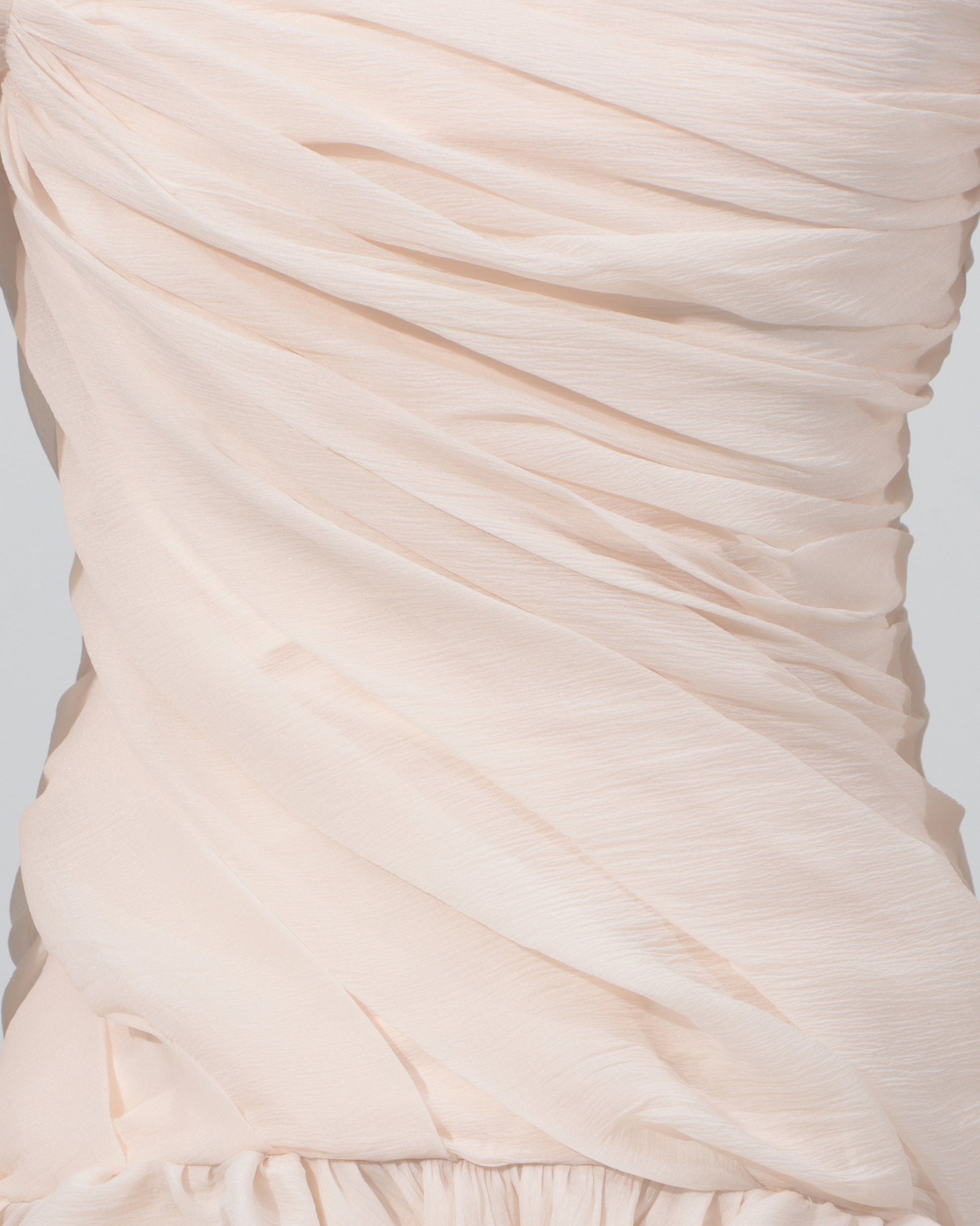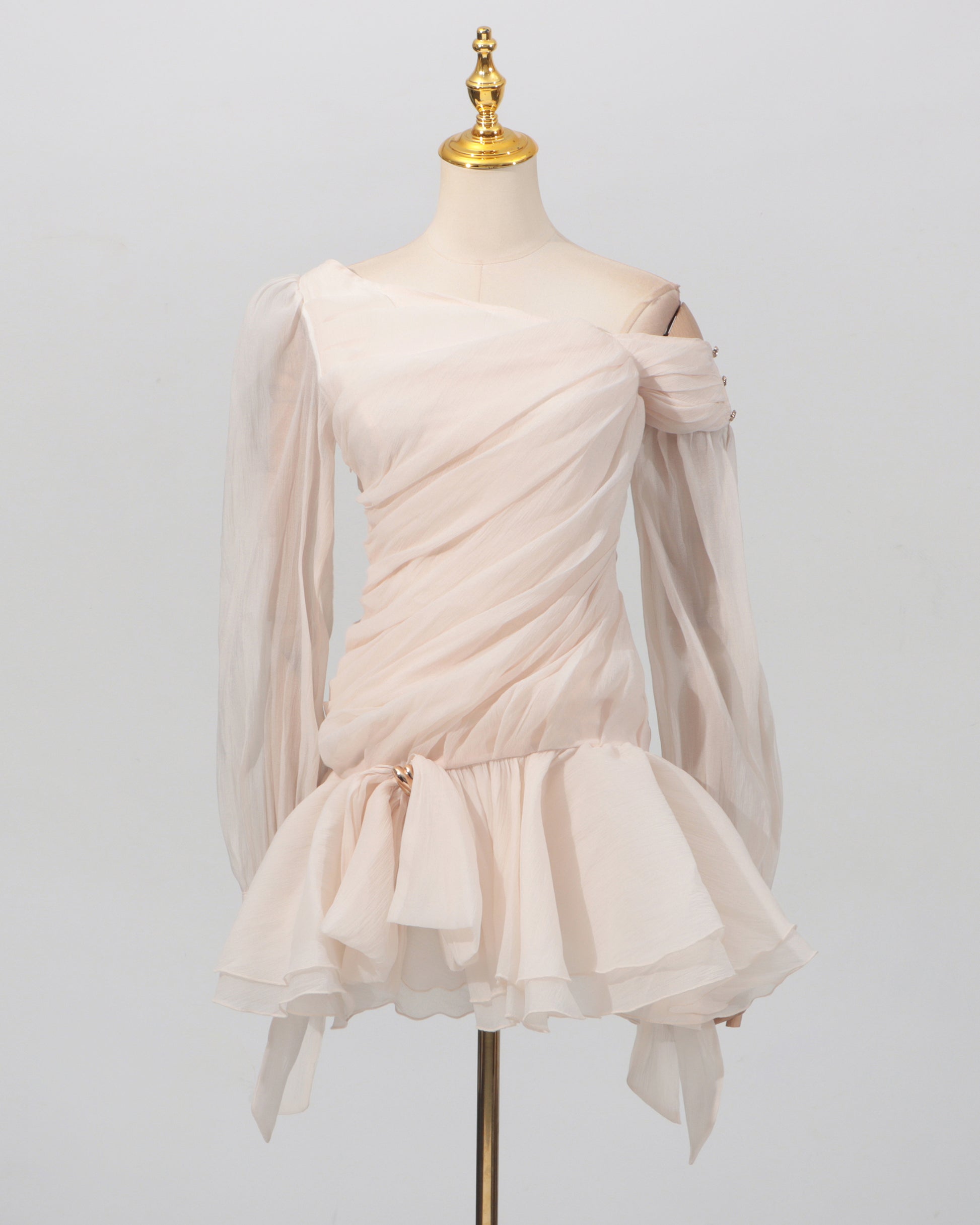 - Romantic, playful silhouette with dramatic ruffle details and a flattering ruched fit.