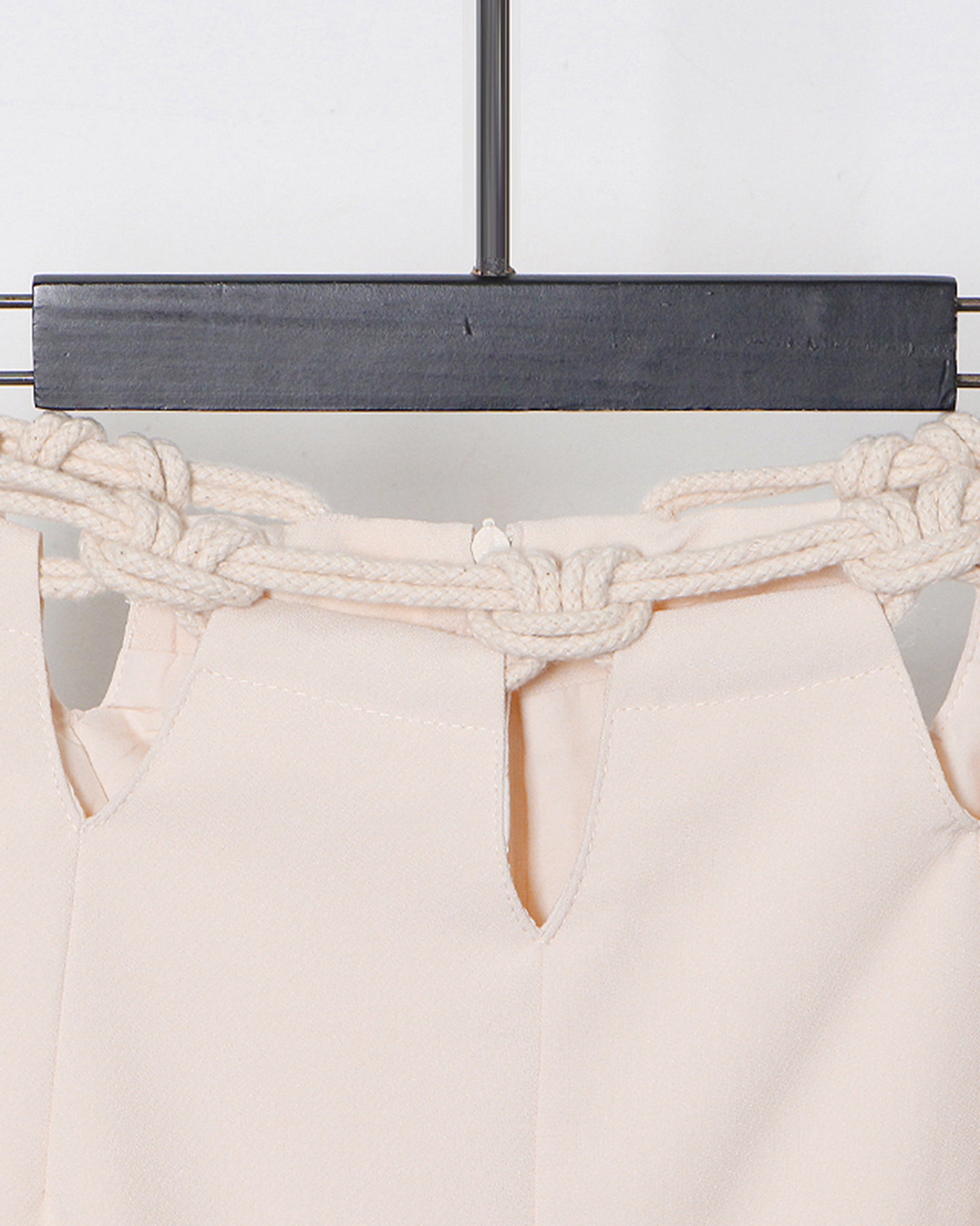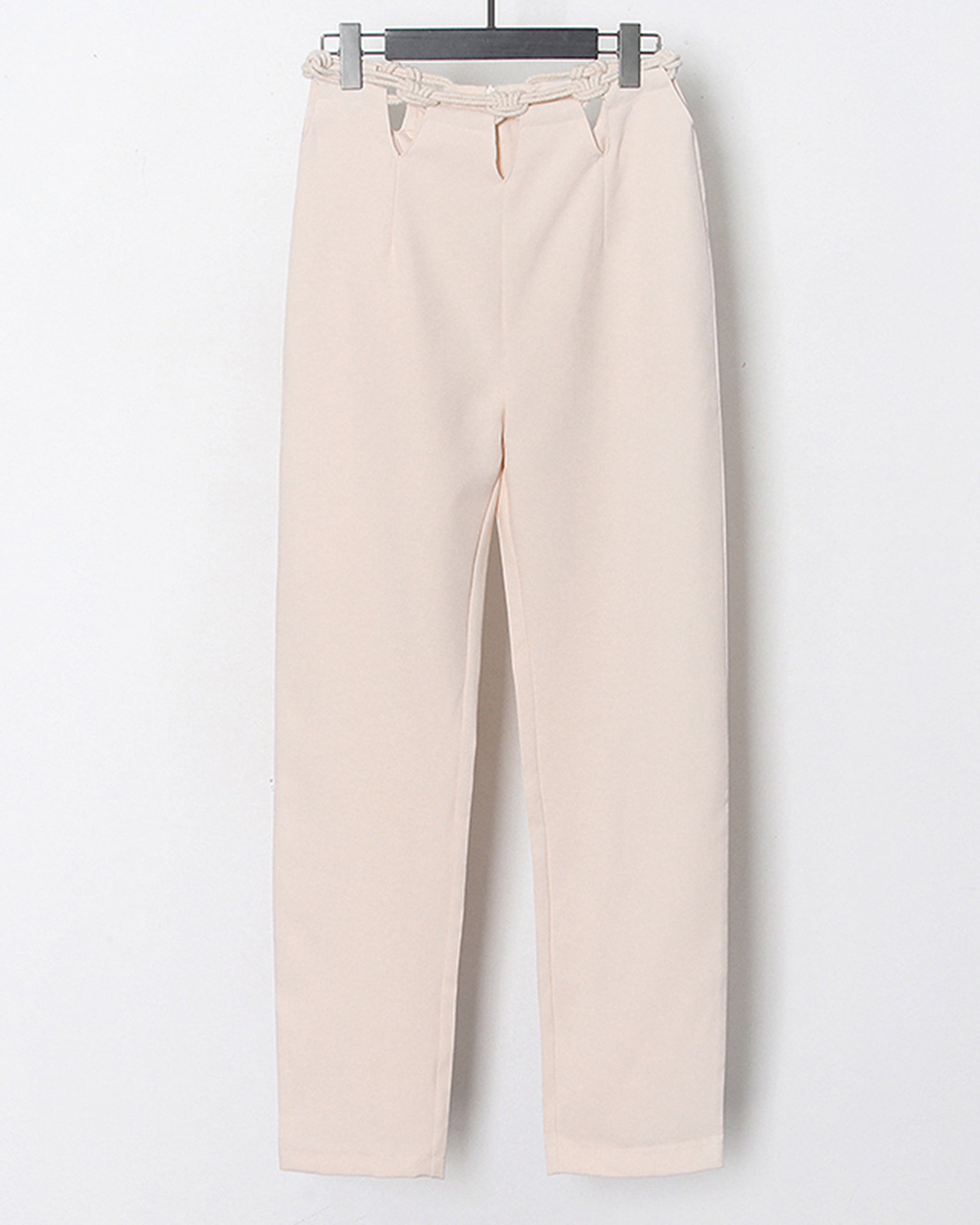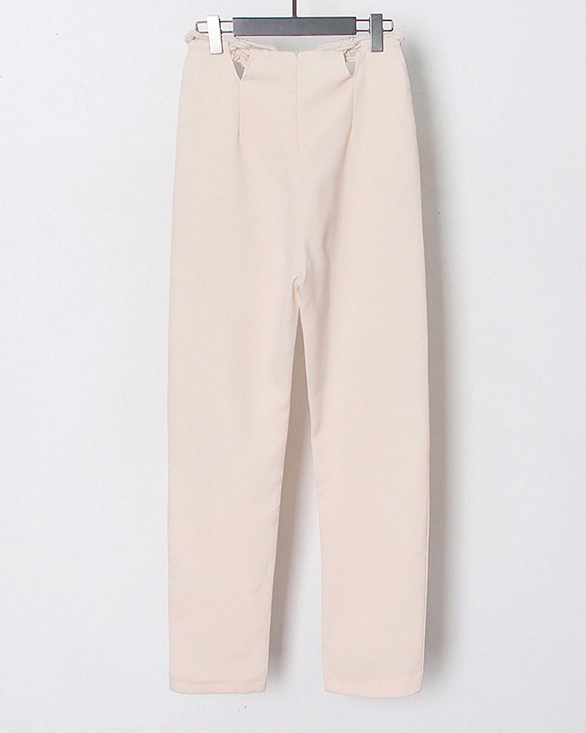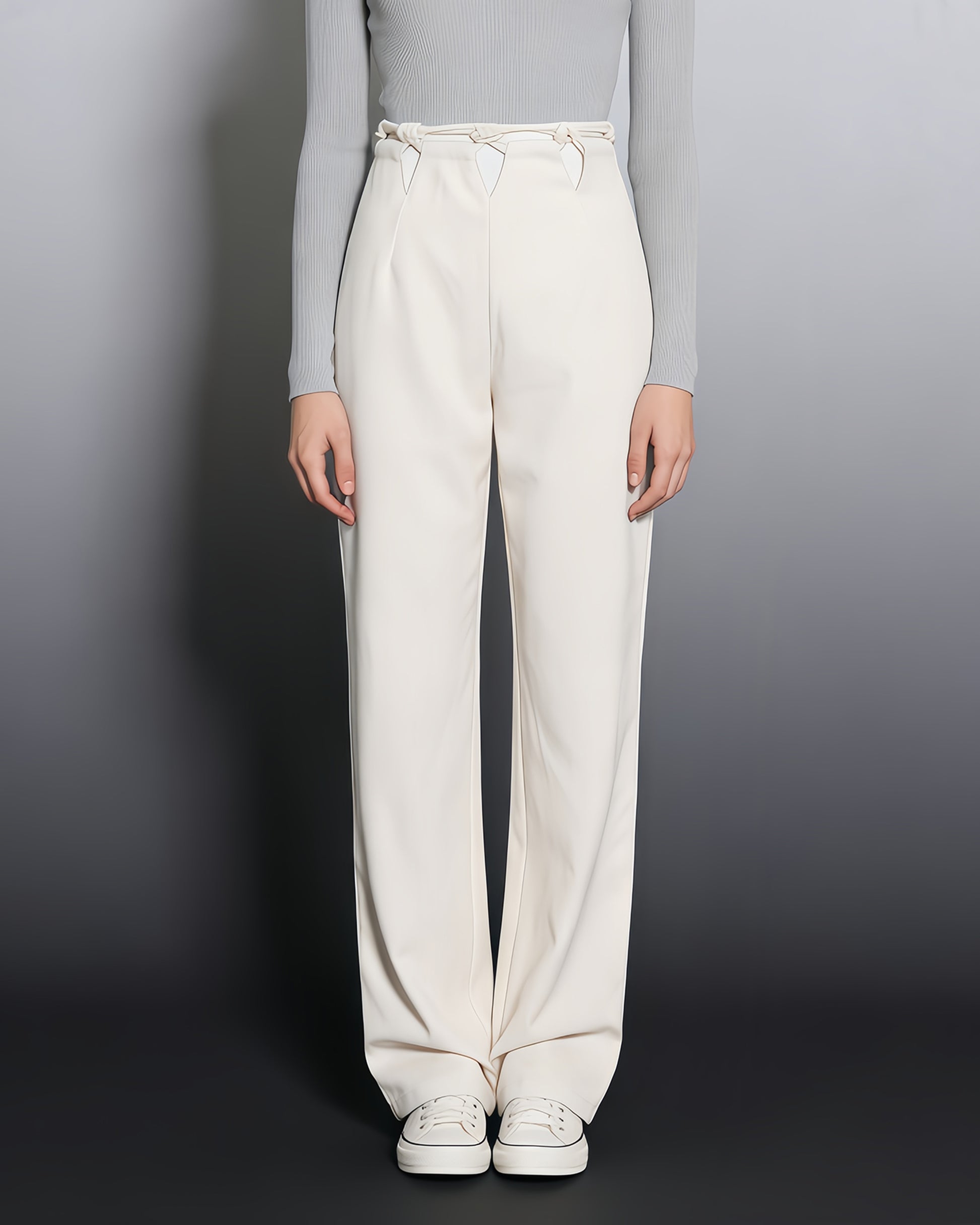 Apricot Wide-Leg Pants with Contrast Waist Accents