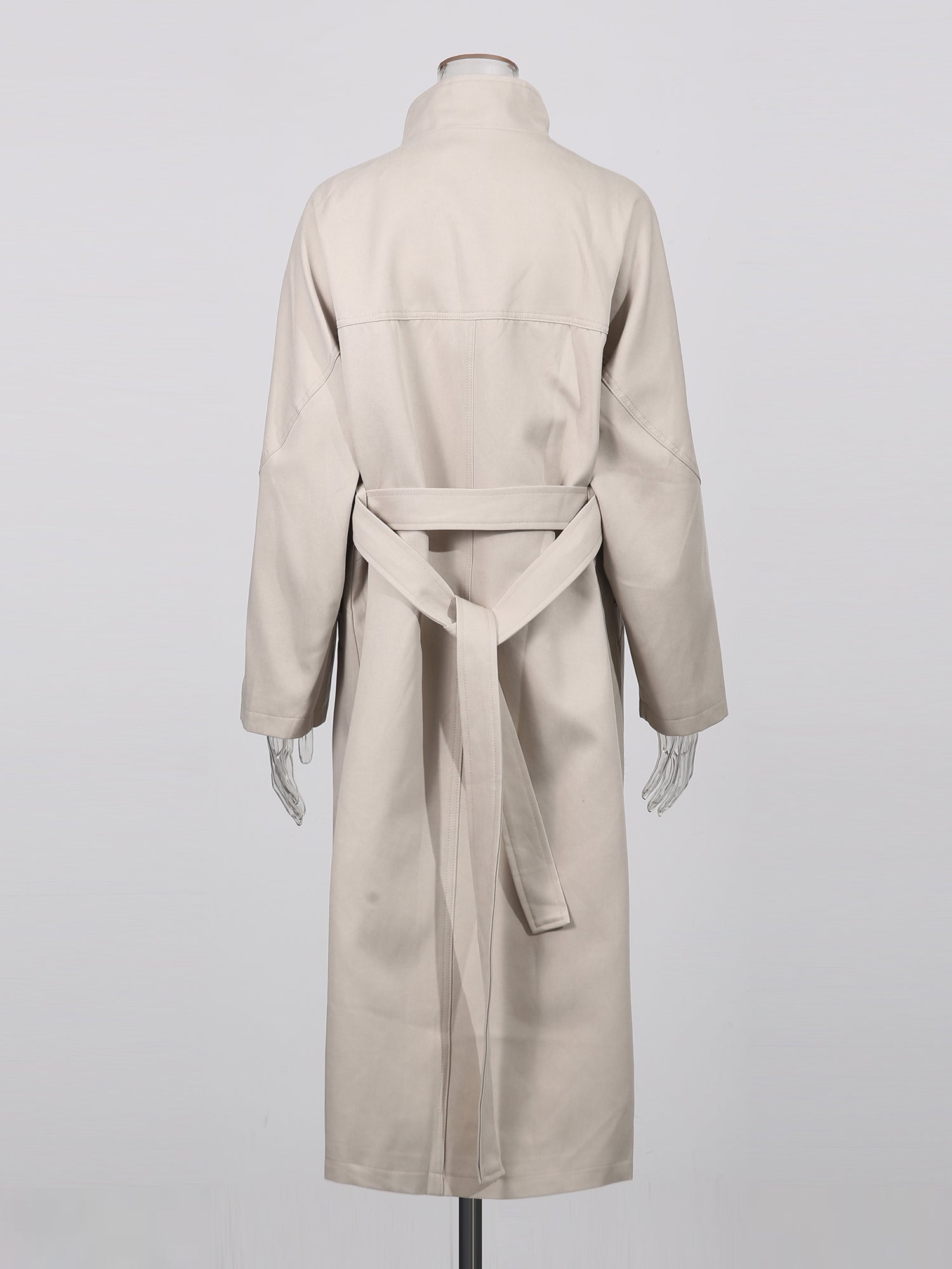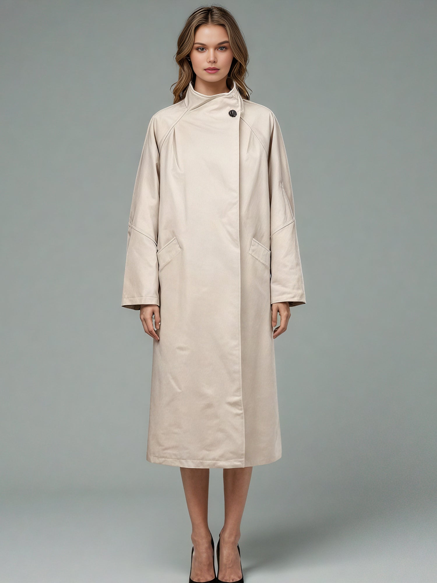 - Asymmetric cut, stand collar, creating a stylish silhouette.