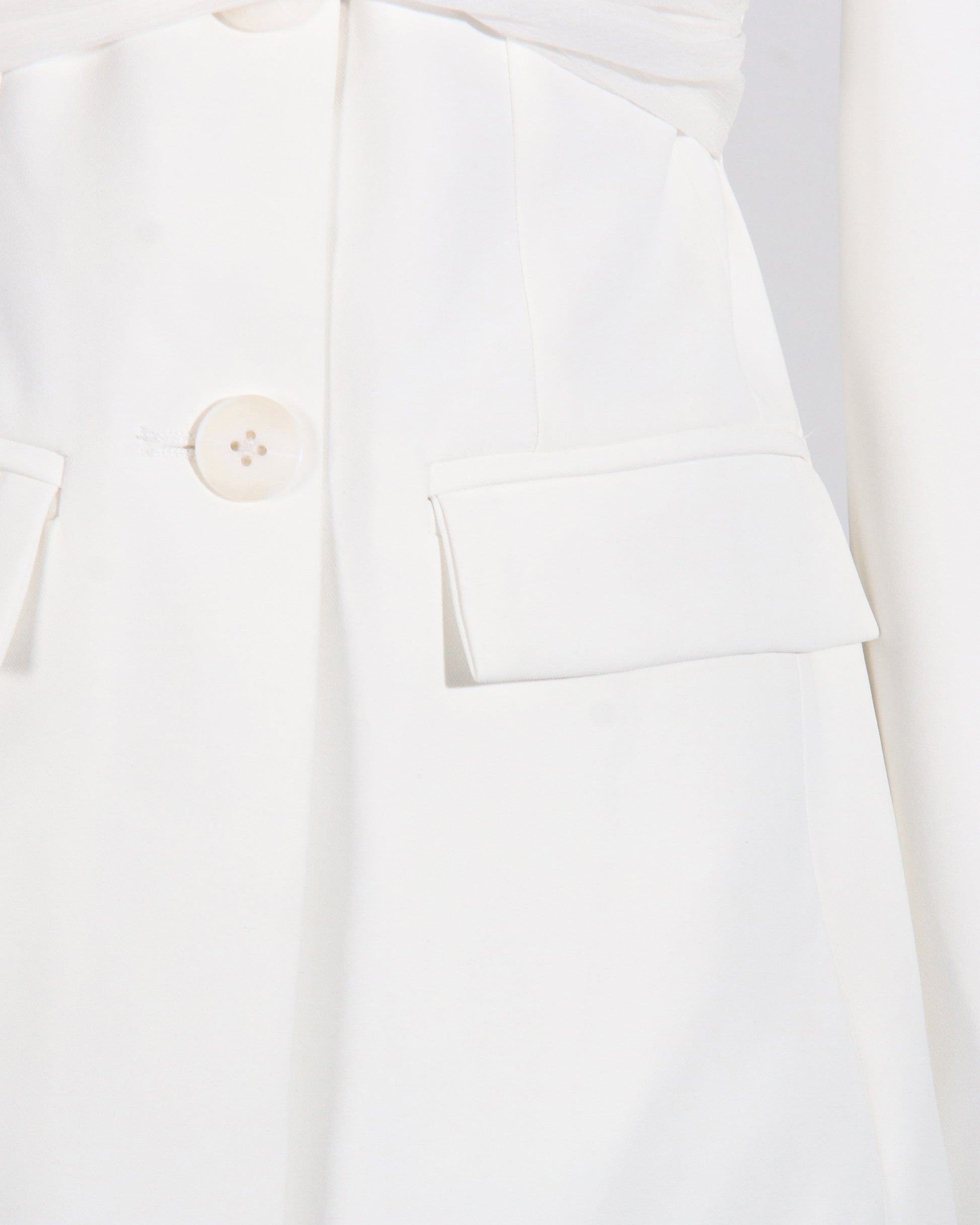Beige Cold-Shoulder Tulle Overlay Jacket