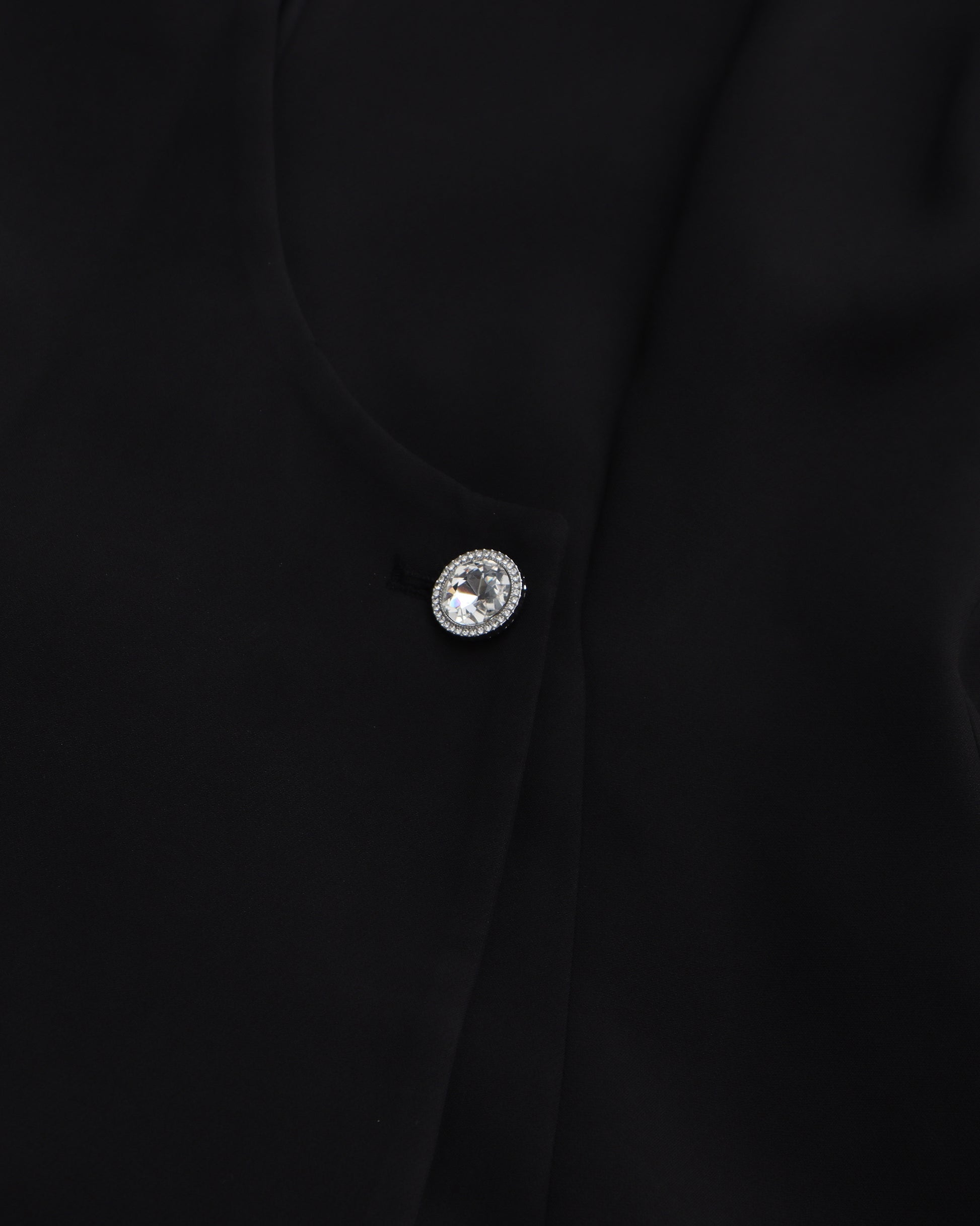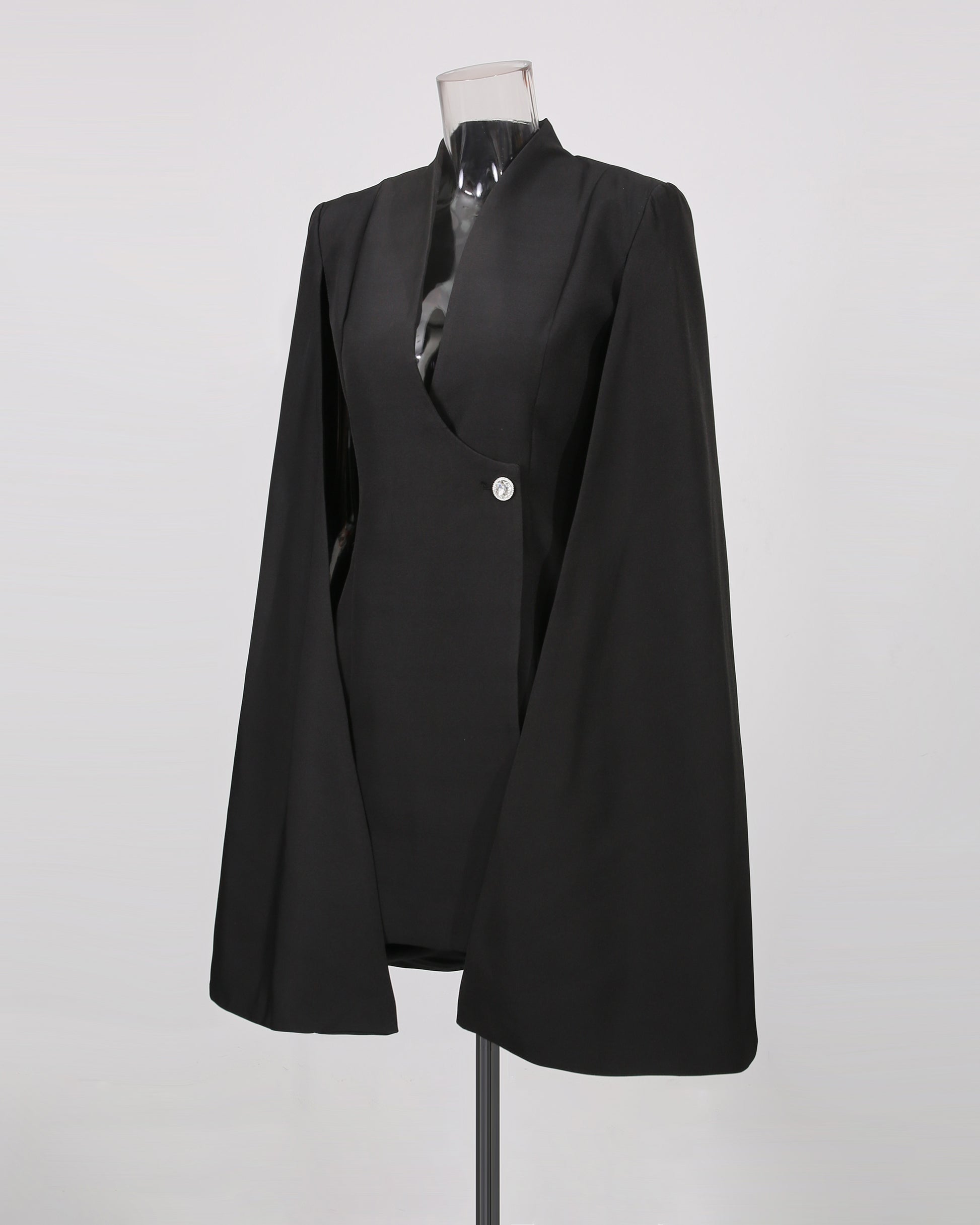 Black Cape Sleeve Blazer Jacket with Crystal Button