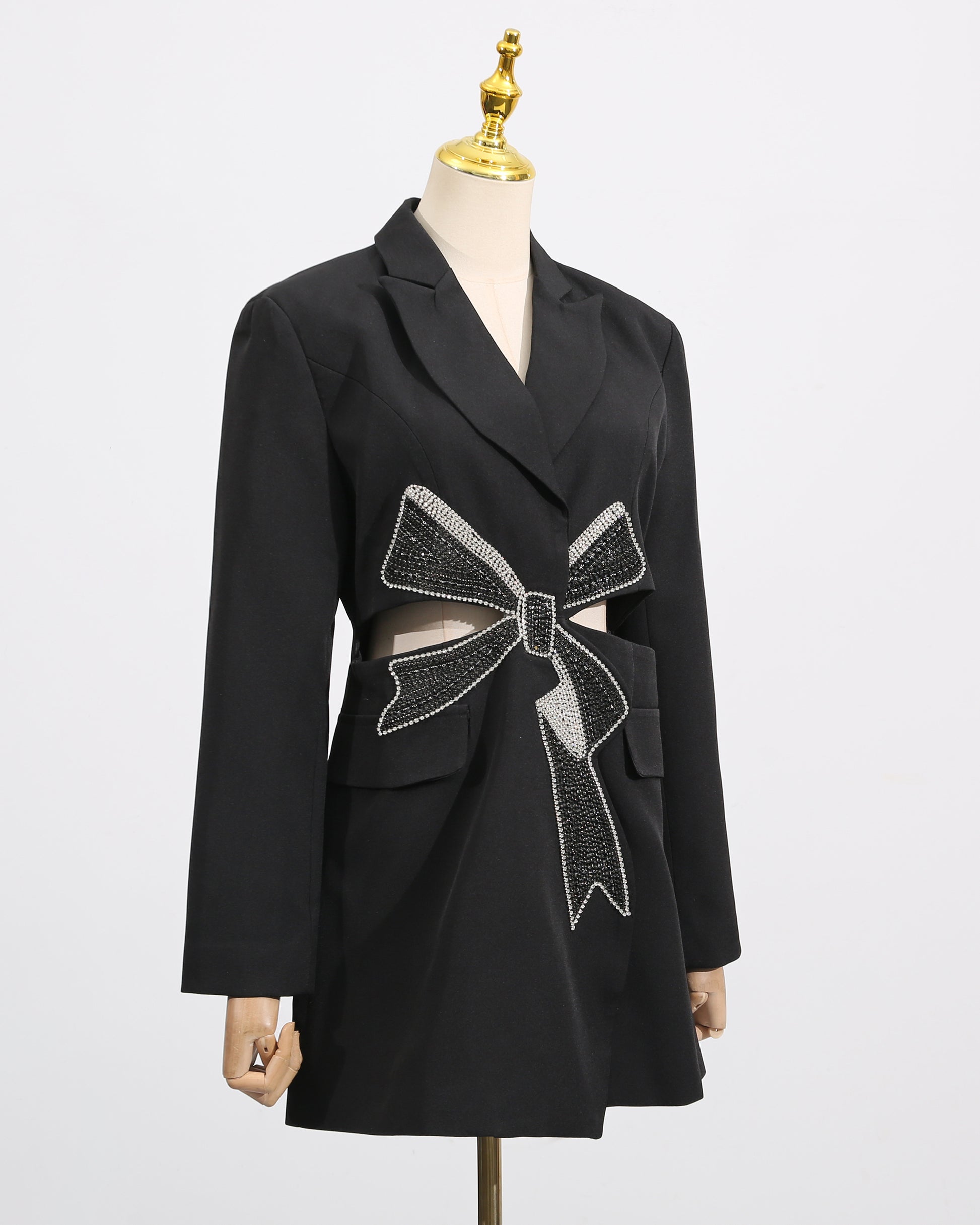 Black Crystal Bow Cutout Blazer
