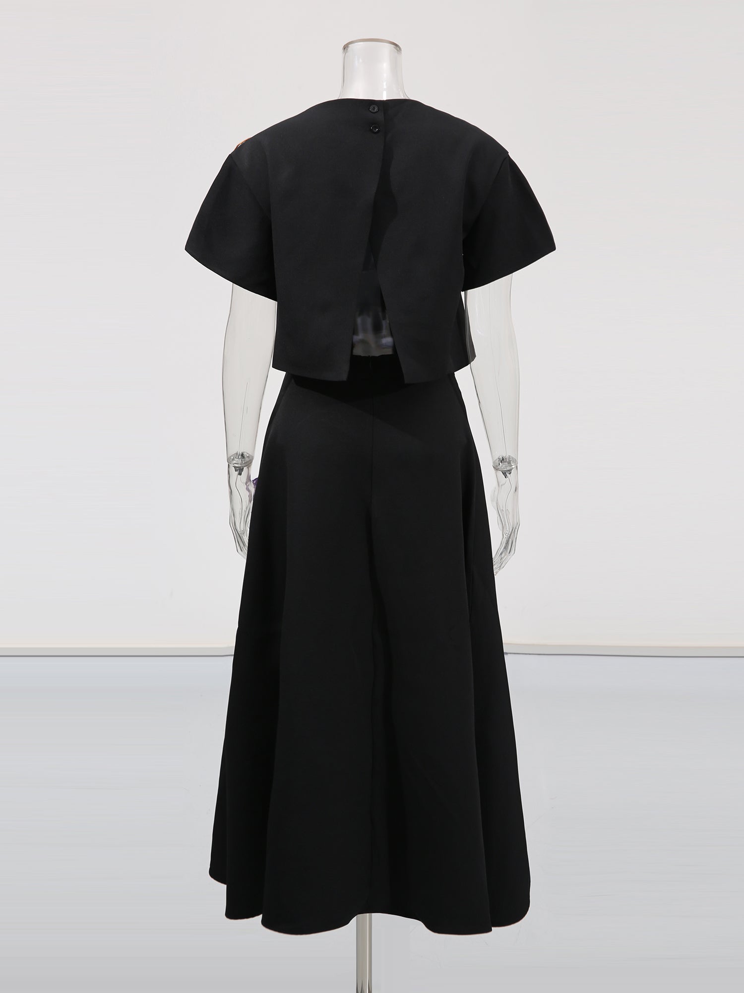 Black Floral Appliqué Crop Top & Midi Skirt Set