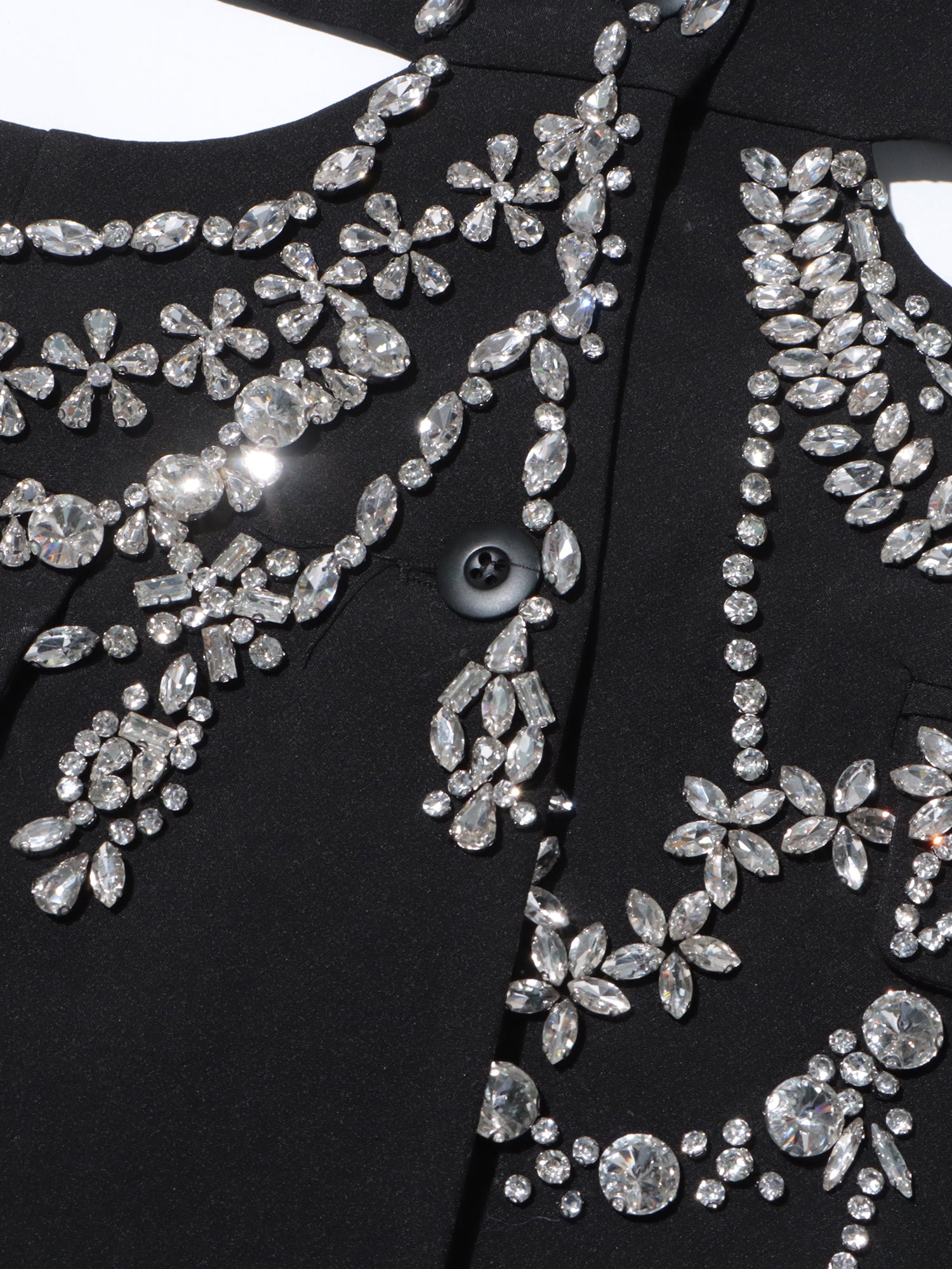 Black Hollow-Out Blazer with Rhinestone Embellishments