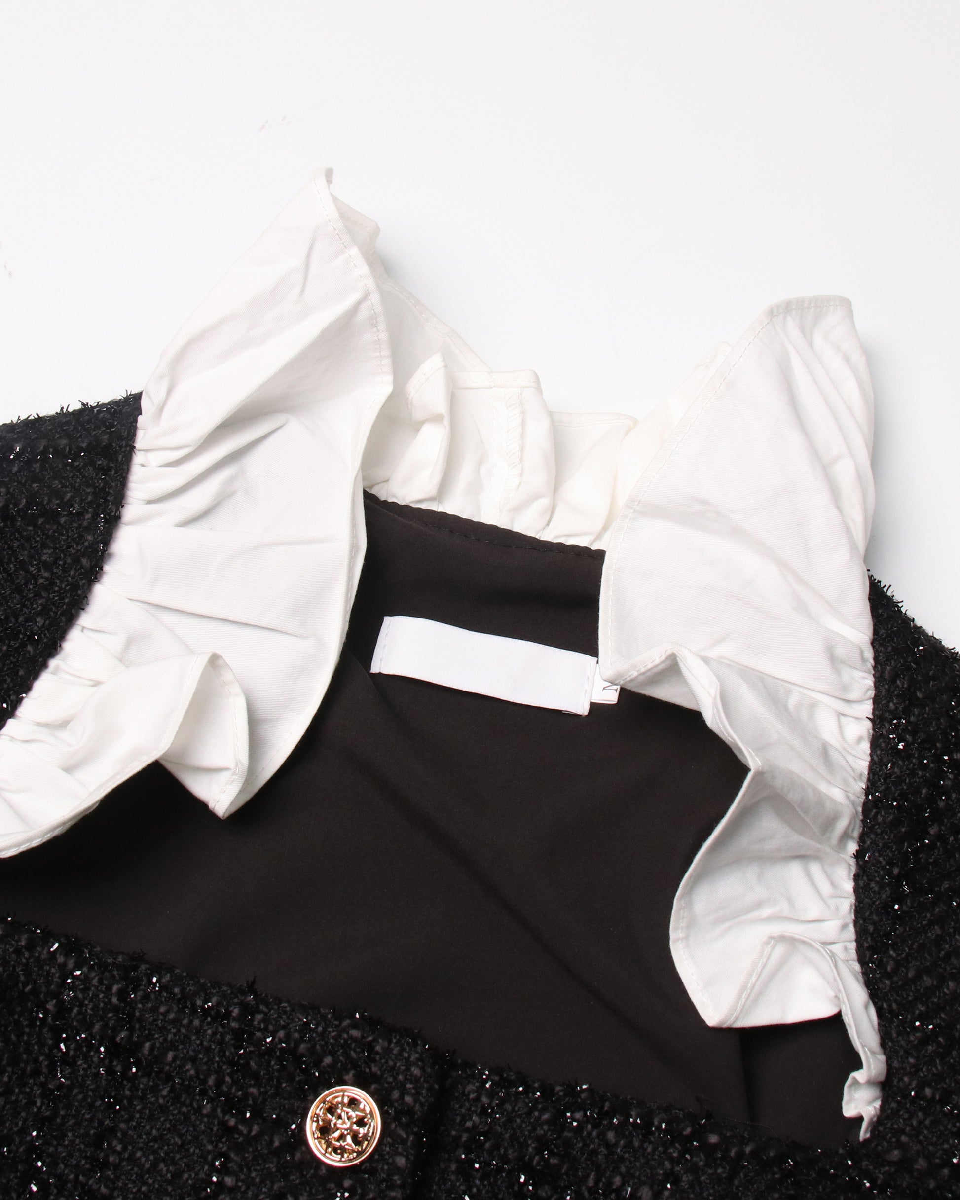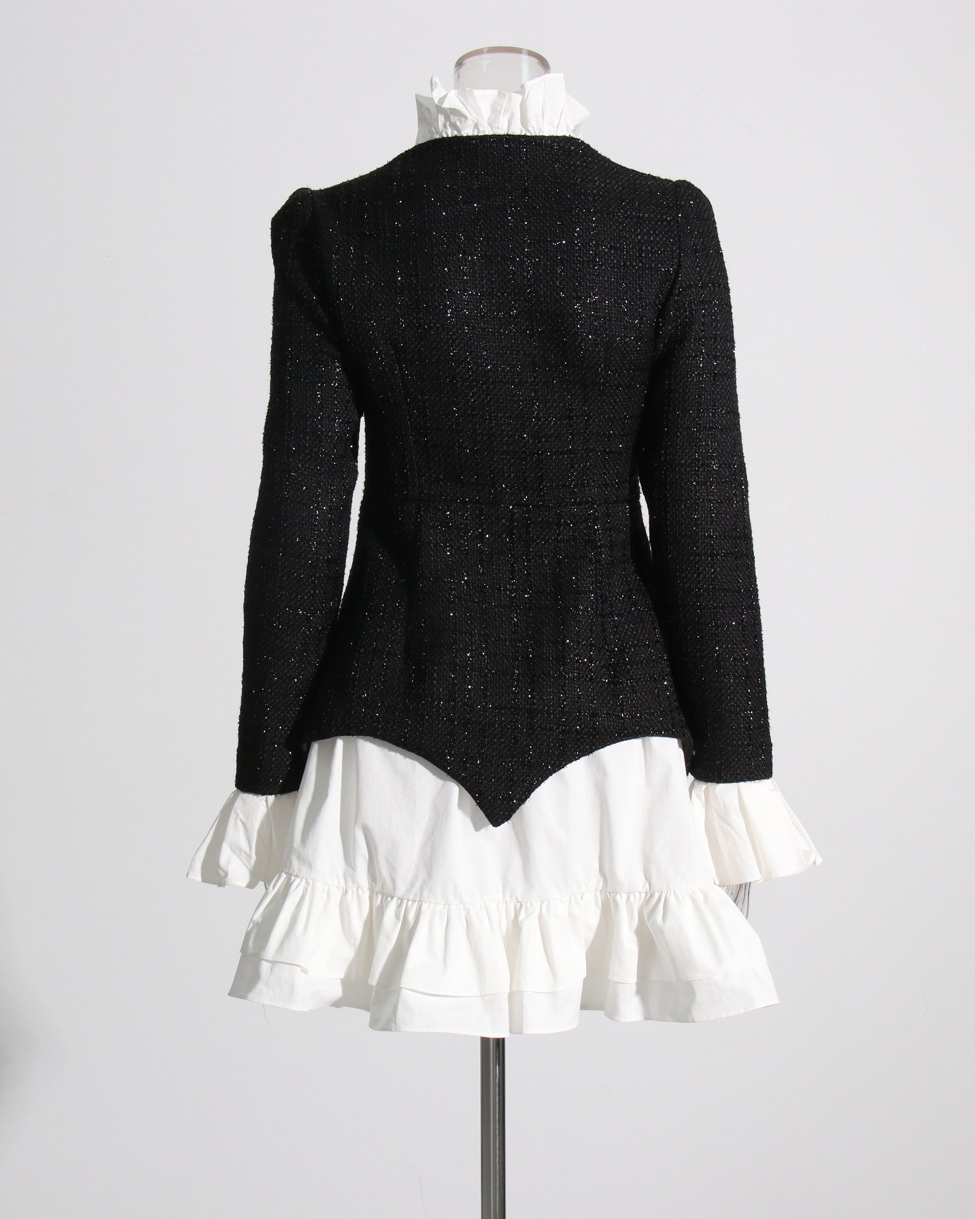 Black Sequin Blazer & White Ruffle Dress Set