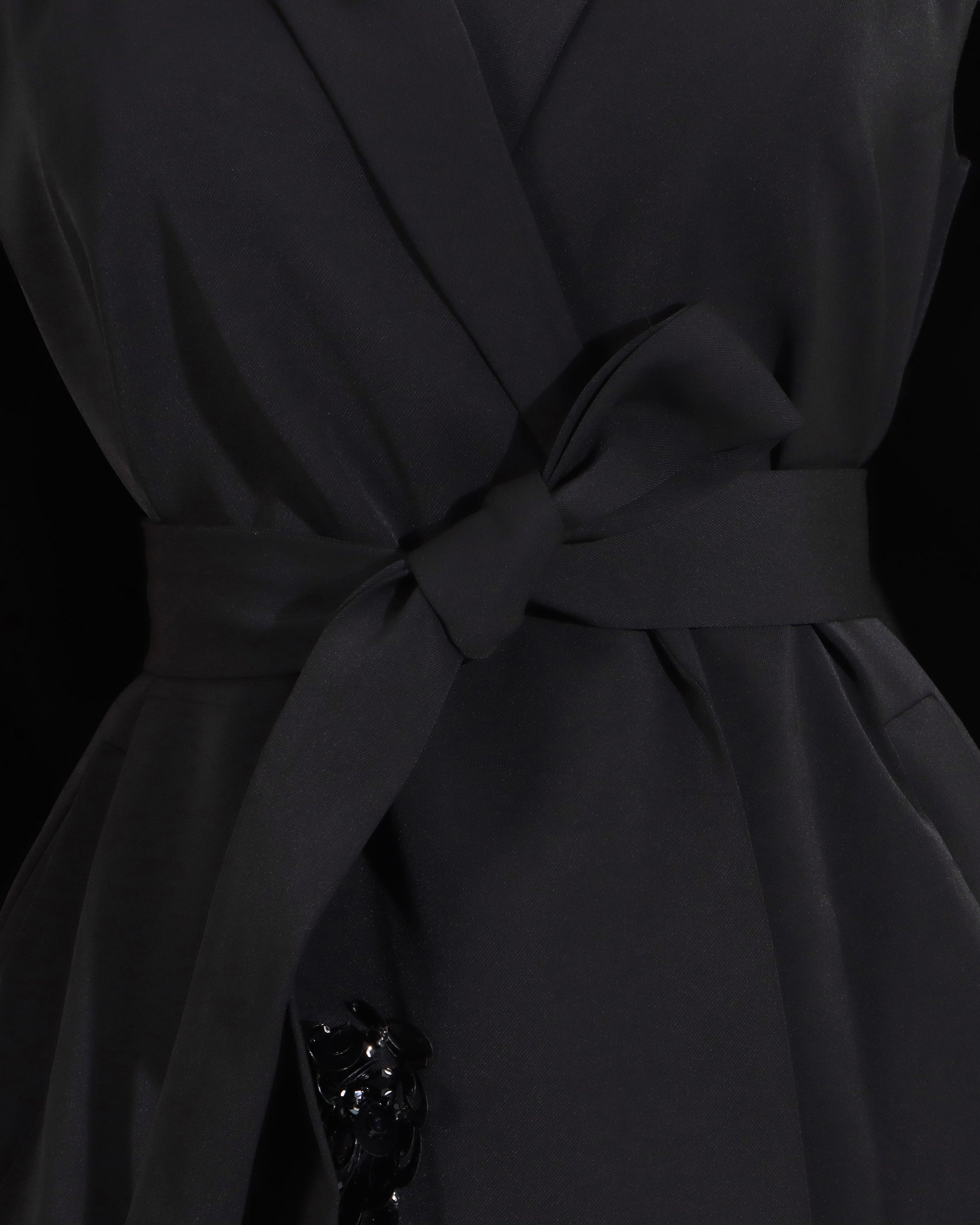 Black V-Neck Waist Cinched Cape Jacket