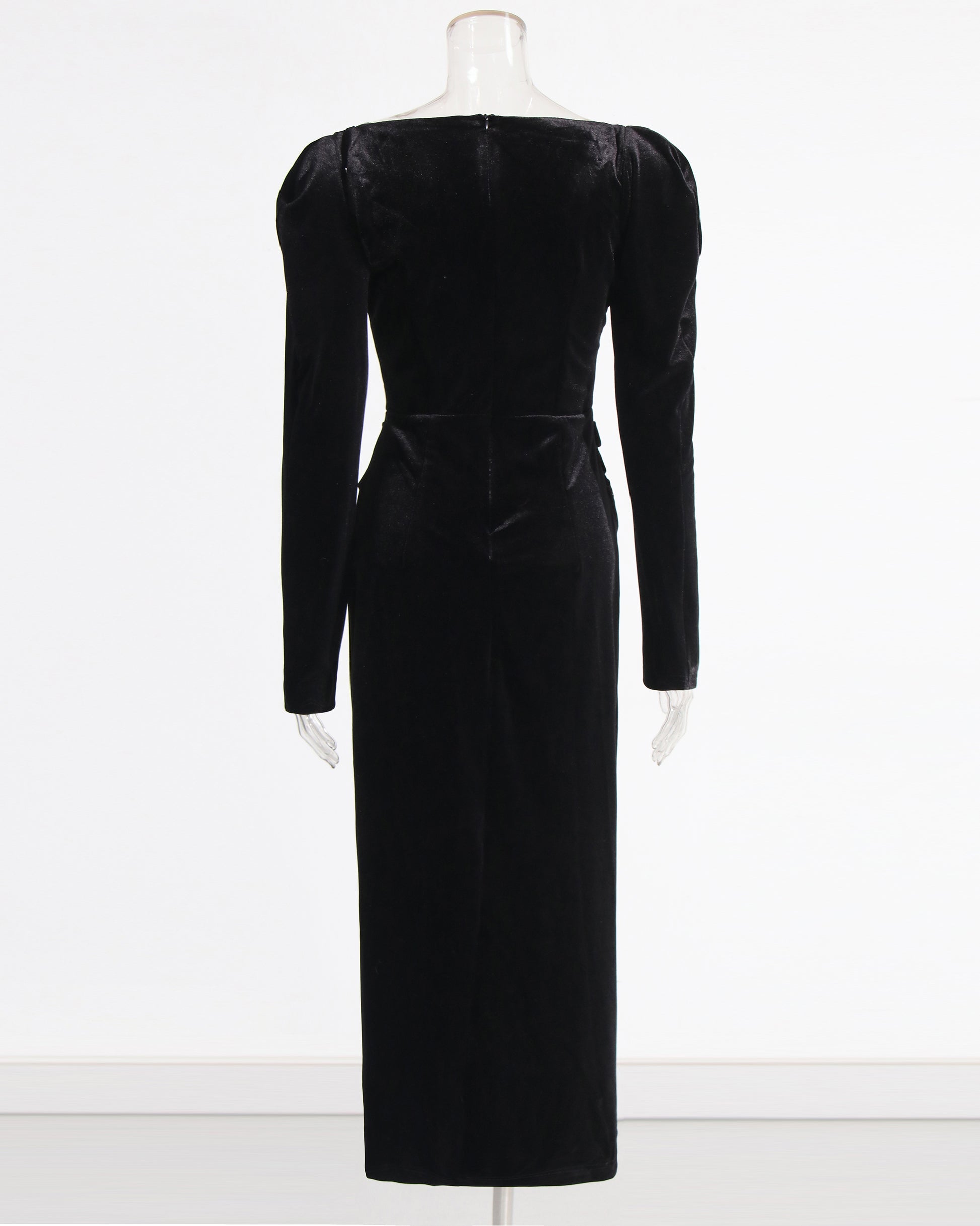 - Glamorous, figure-hugging silhouette, blending retro style and soft texture.
