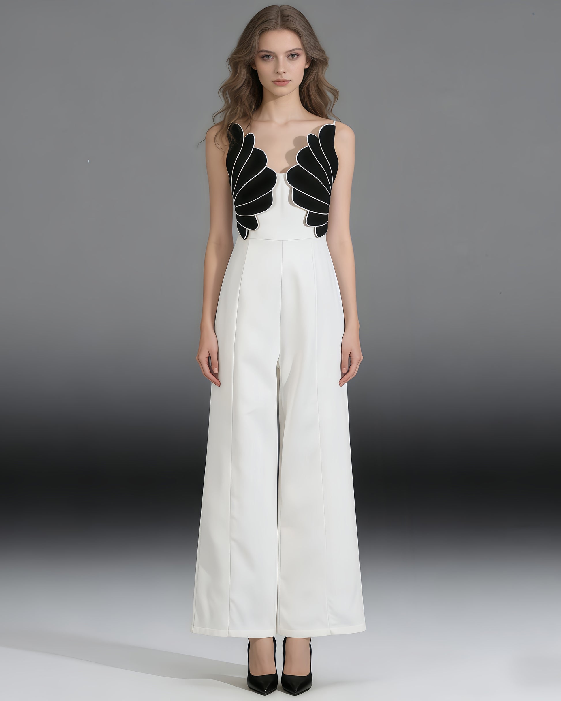 - Sleek, modern silhouette with striking black-and-white contrast and a flattering wide-leg cut.