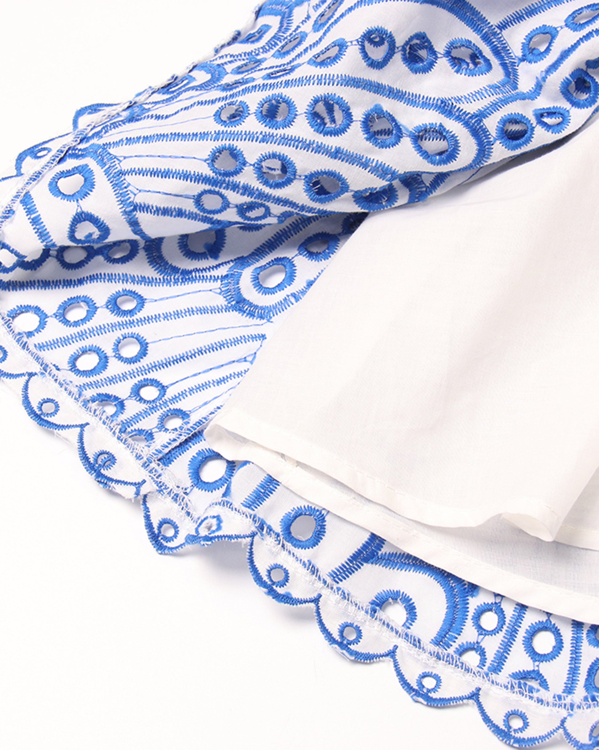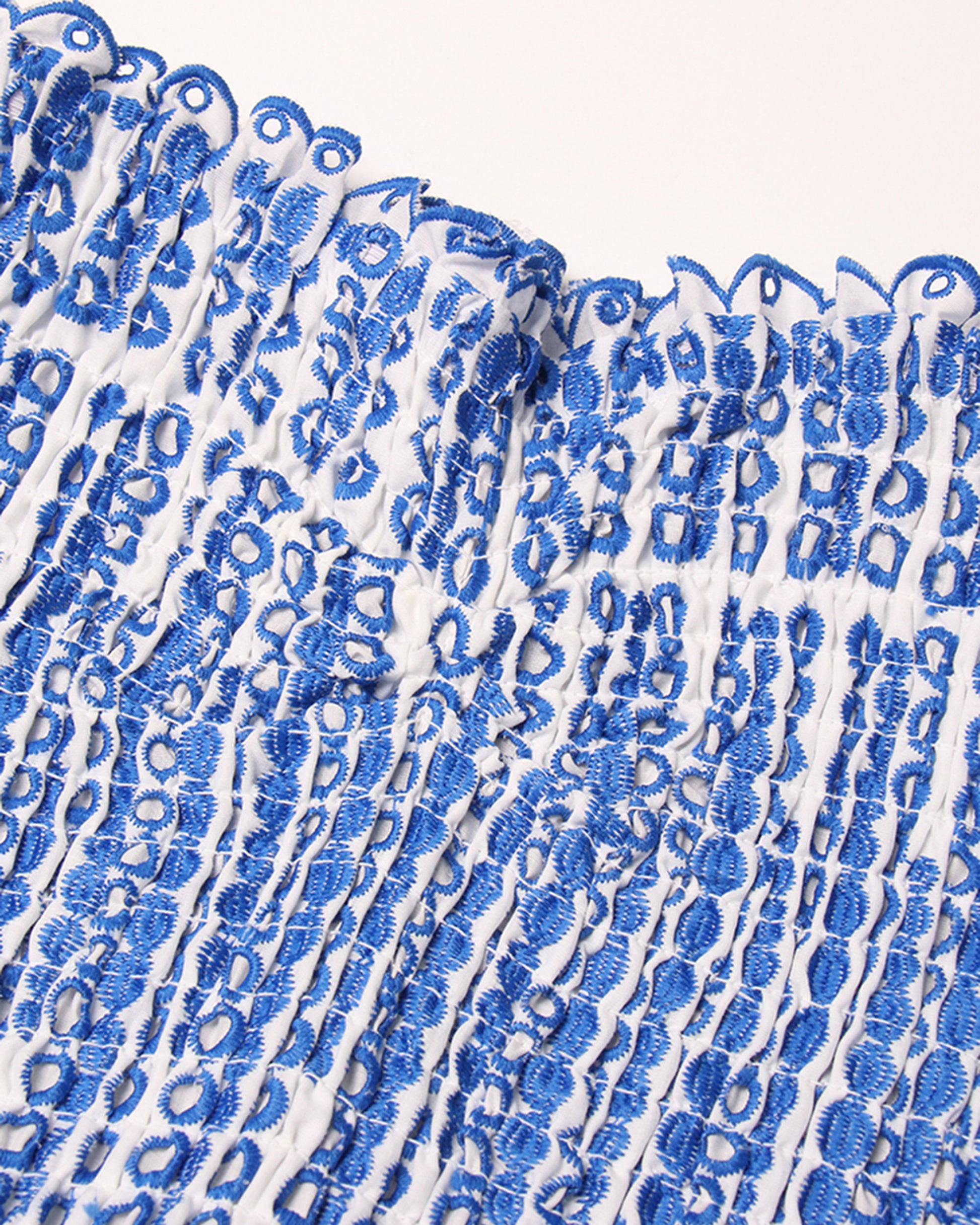 Blue Smocked Strapless Mini Dress with Tiered Ruffles