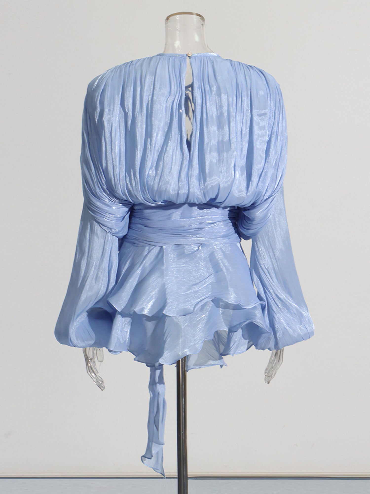 Charming Light Blue Tie - Neck Wrap Mini Dress