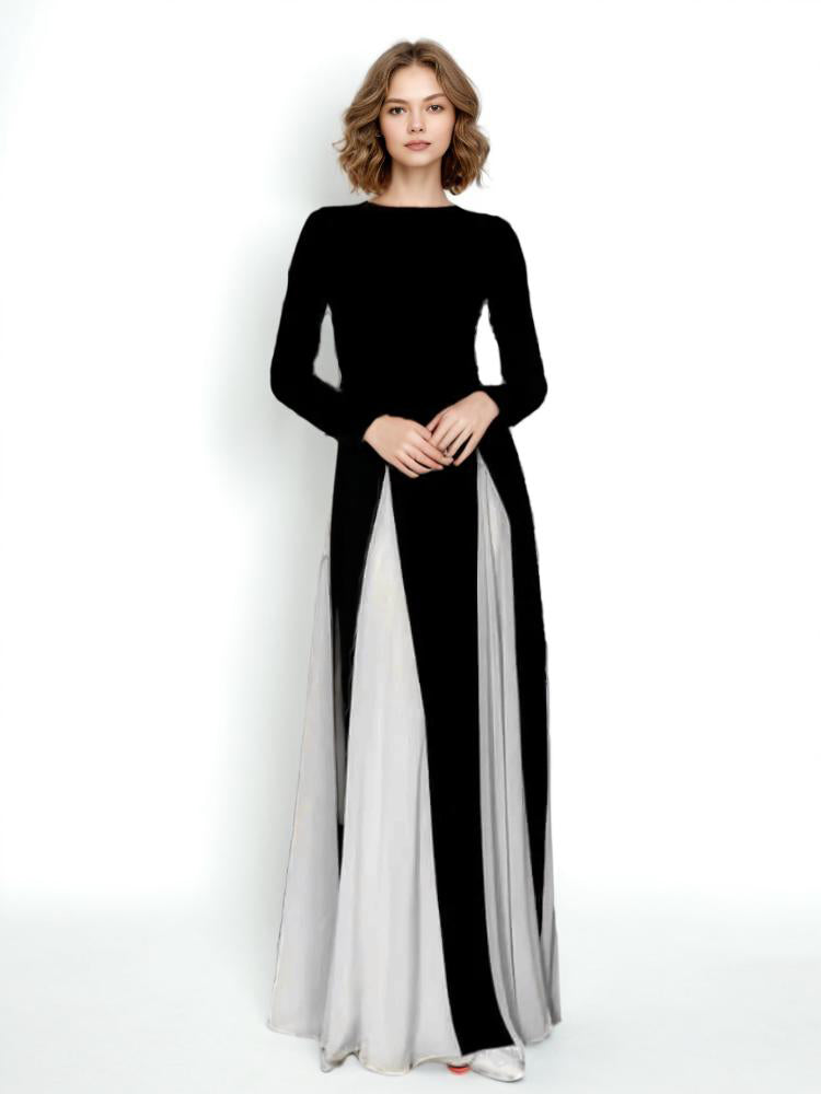 This Colorblack Elegant Temperament Maxi Dress is the epitome of sophistication and luxury. With its stylish color blocking, round neckline, and tailored fit, it exudes an air of exclusivity and refinement. Elevate your wardrobe with this stunning dress that seamlessly blends fashion and elegance.