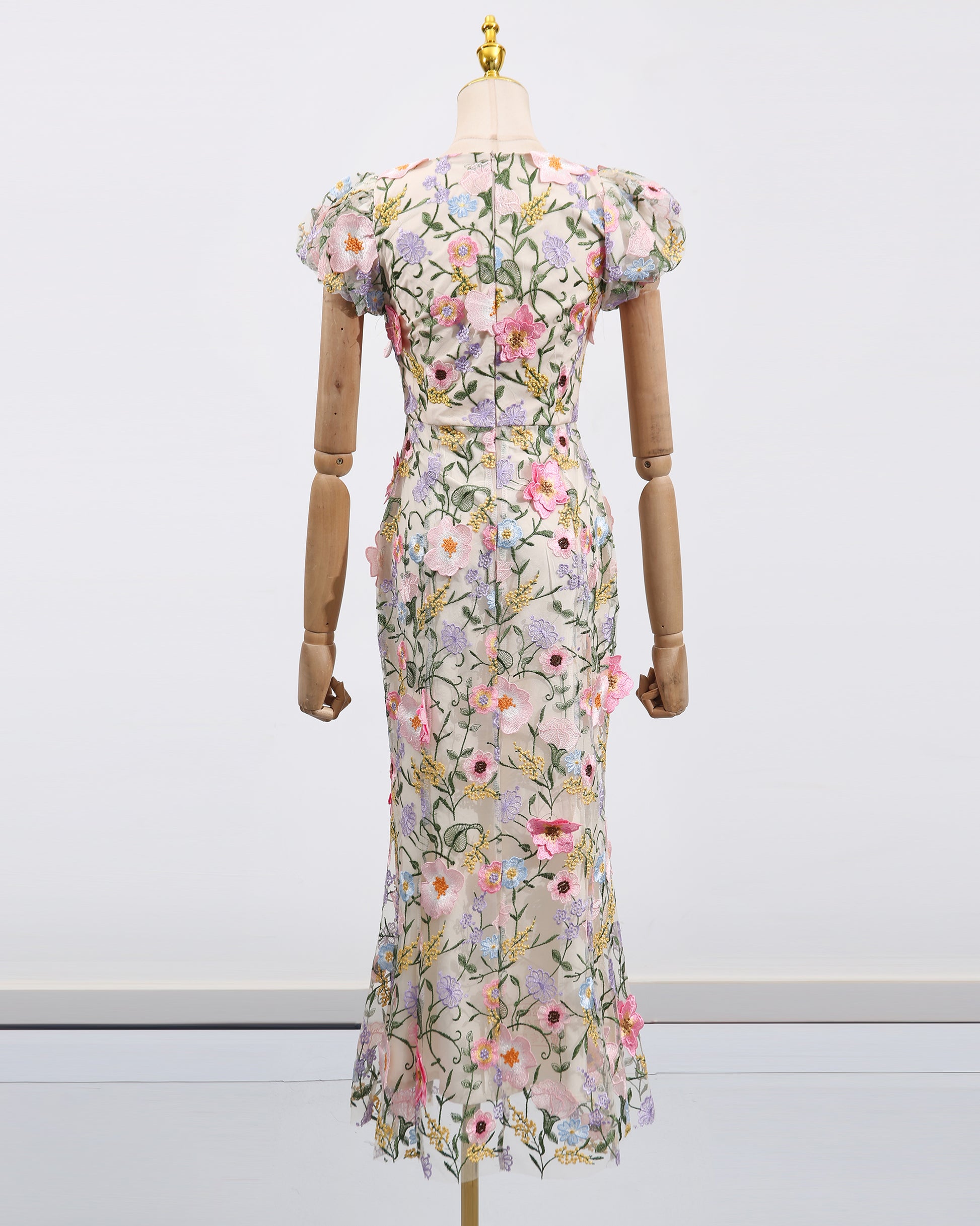 Colorful 3D Floral Embroidery Mermaid Dress
