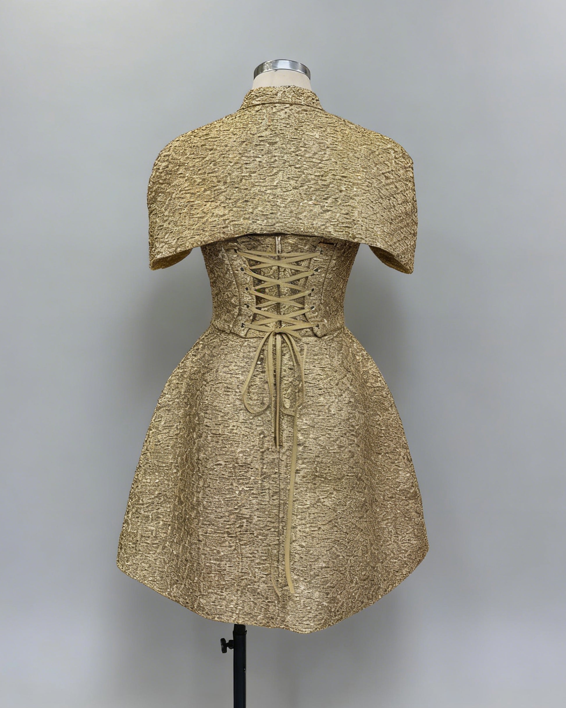 Gold Tweed Cape Fitted Mini Dress Set