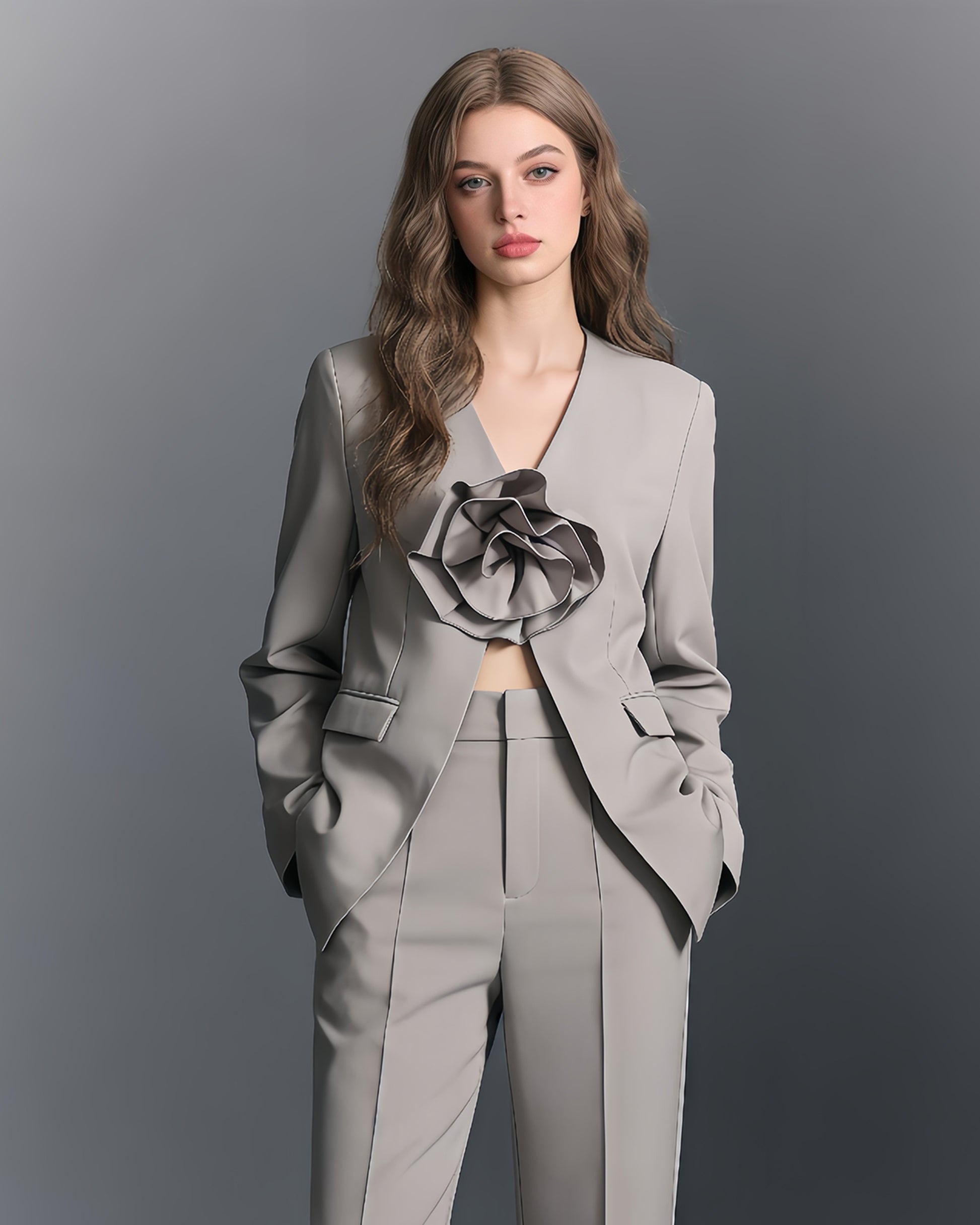 Gray Blazer with 3D Rose Accent