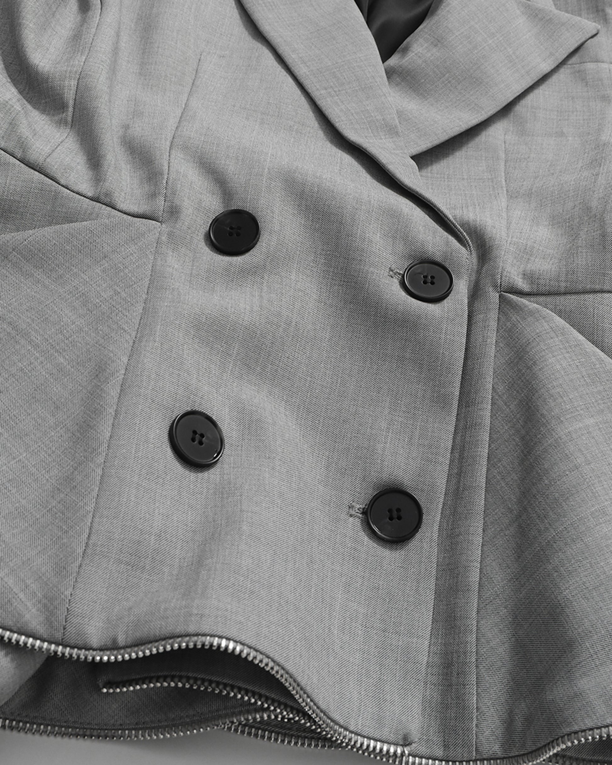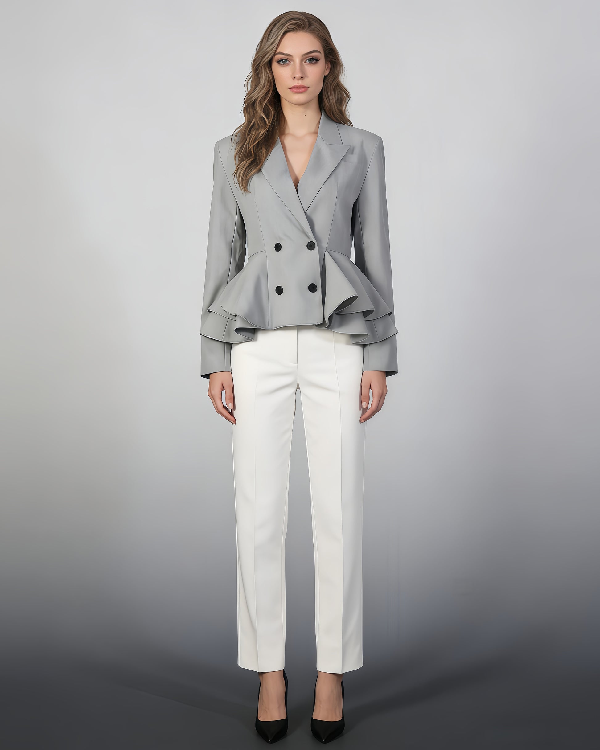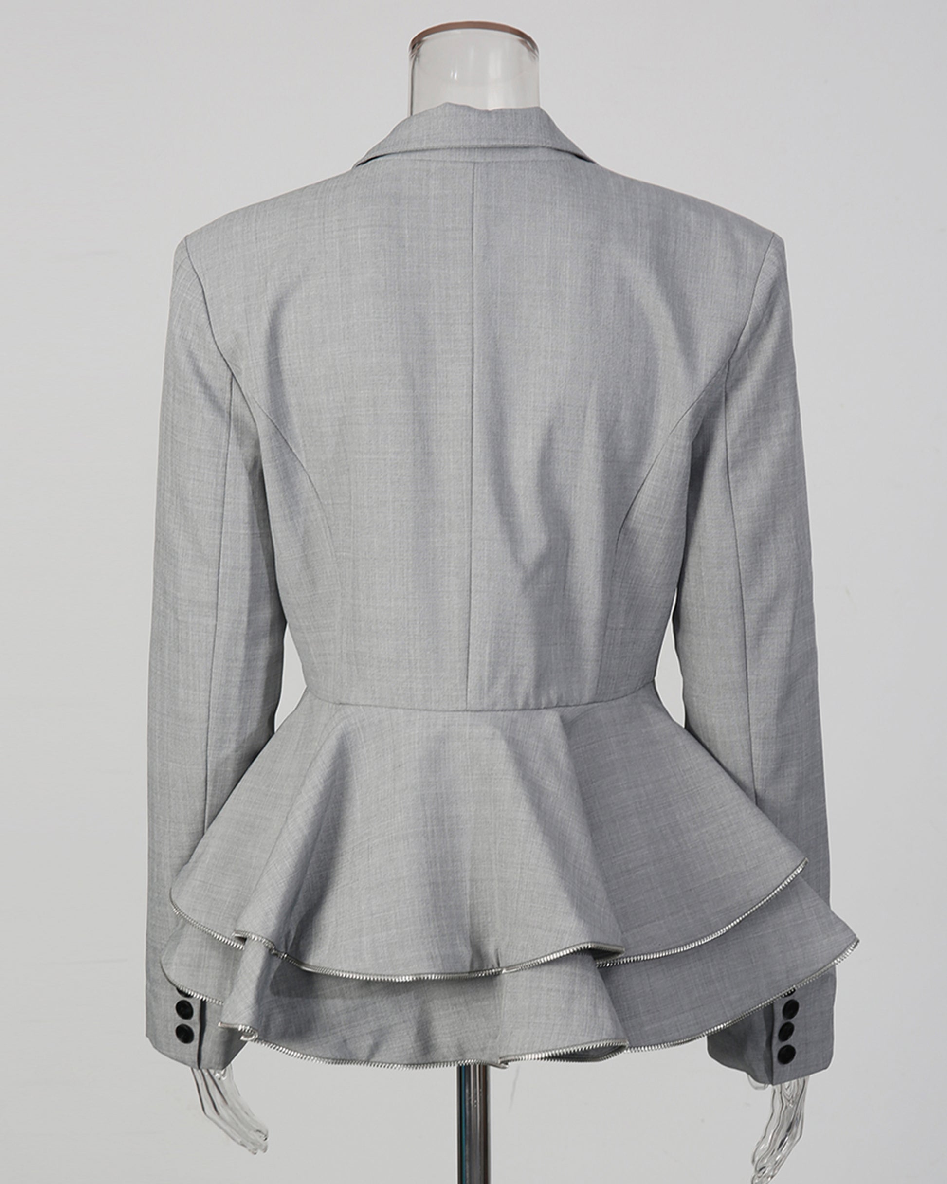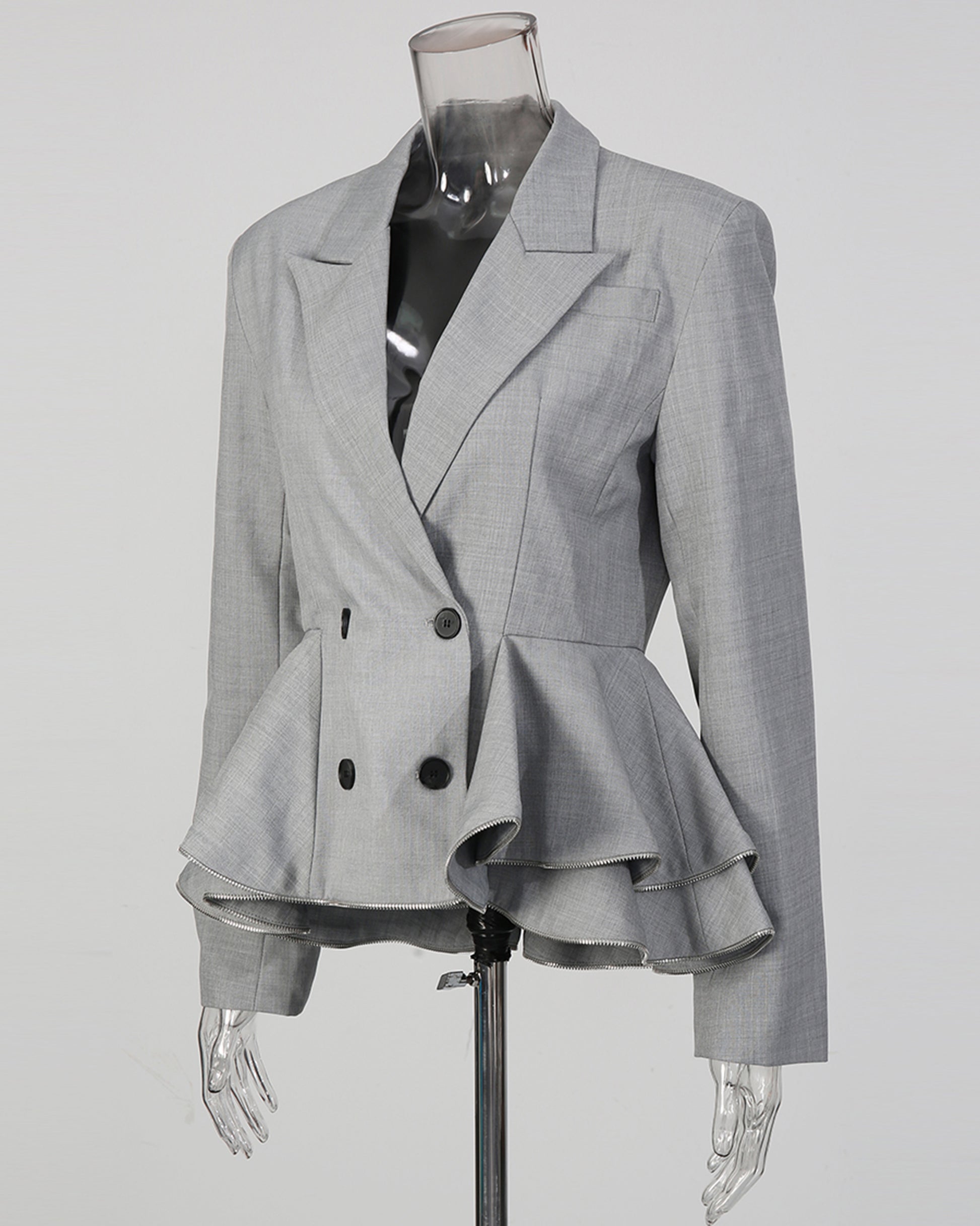 Grey Peplum Blazer with Double-Breasted Design