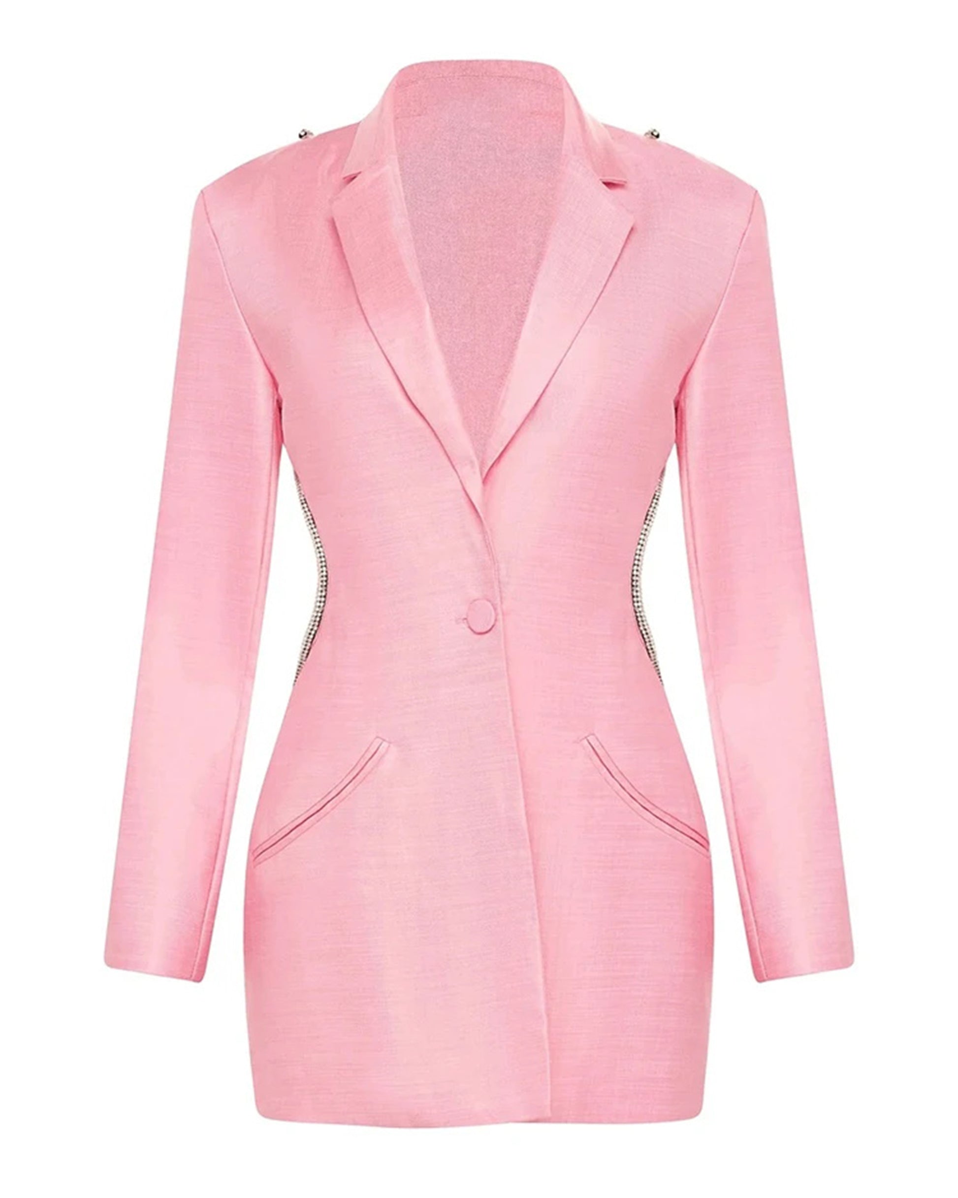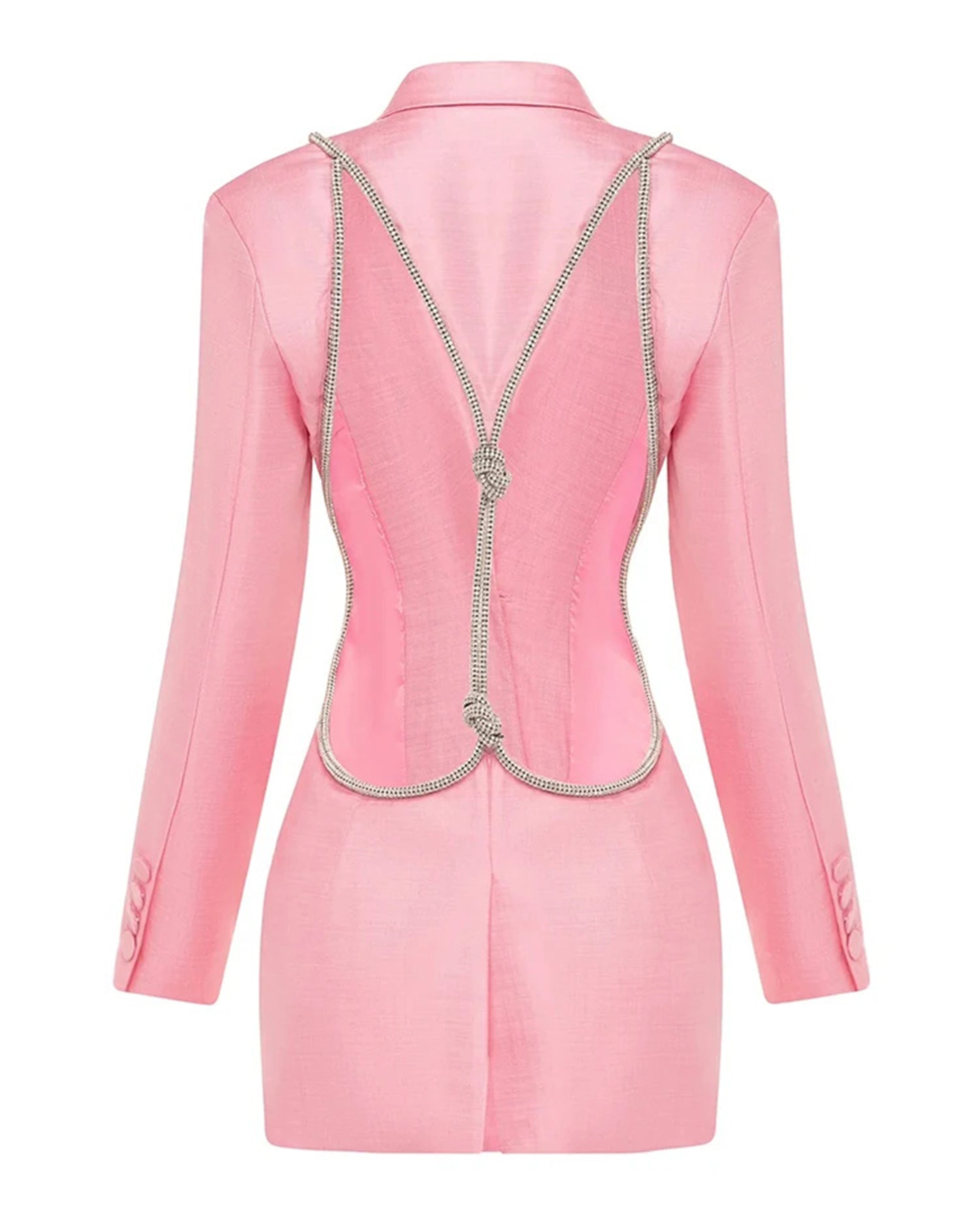 Pink Blazer with Crystal-Trimmed Cutout Back
