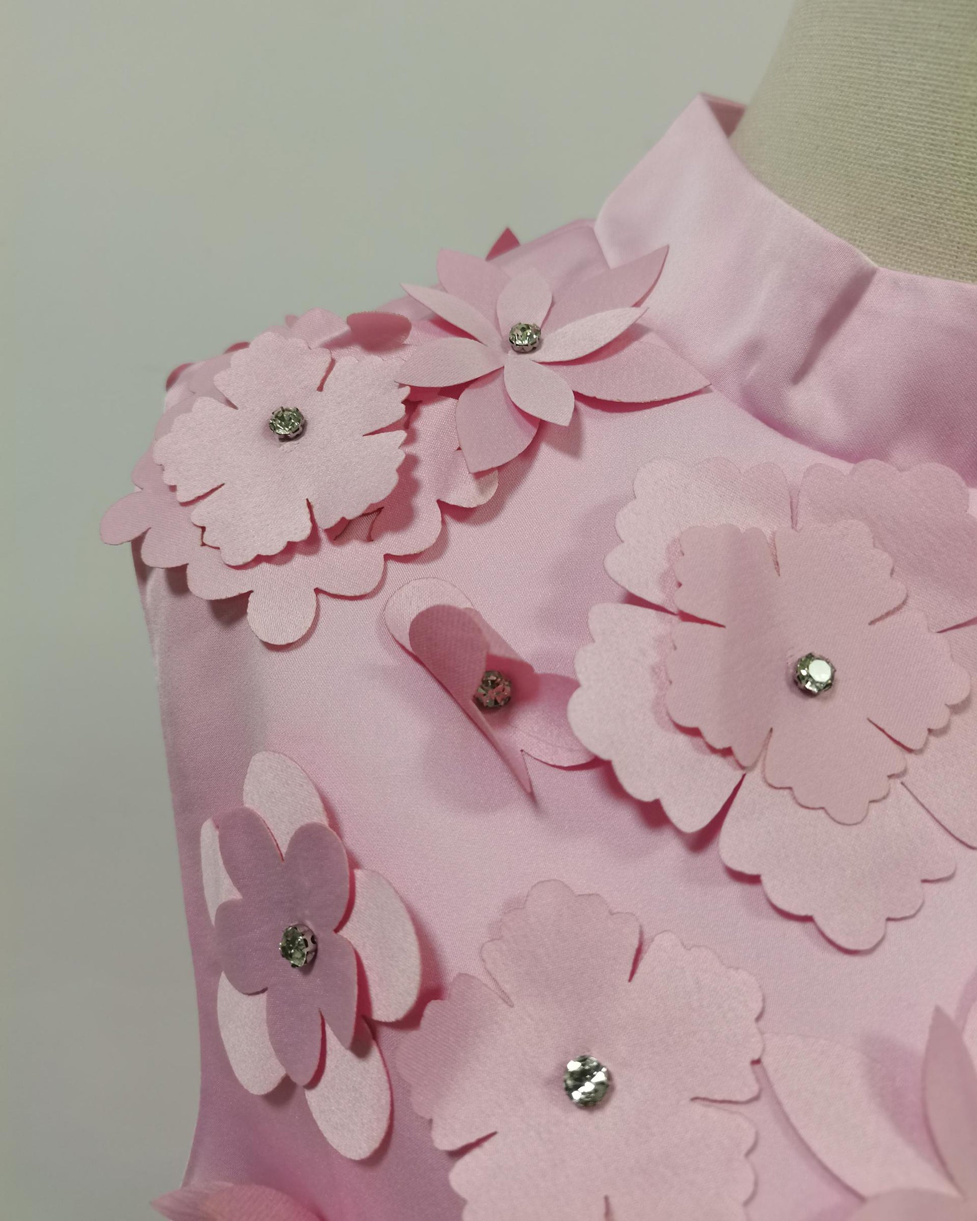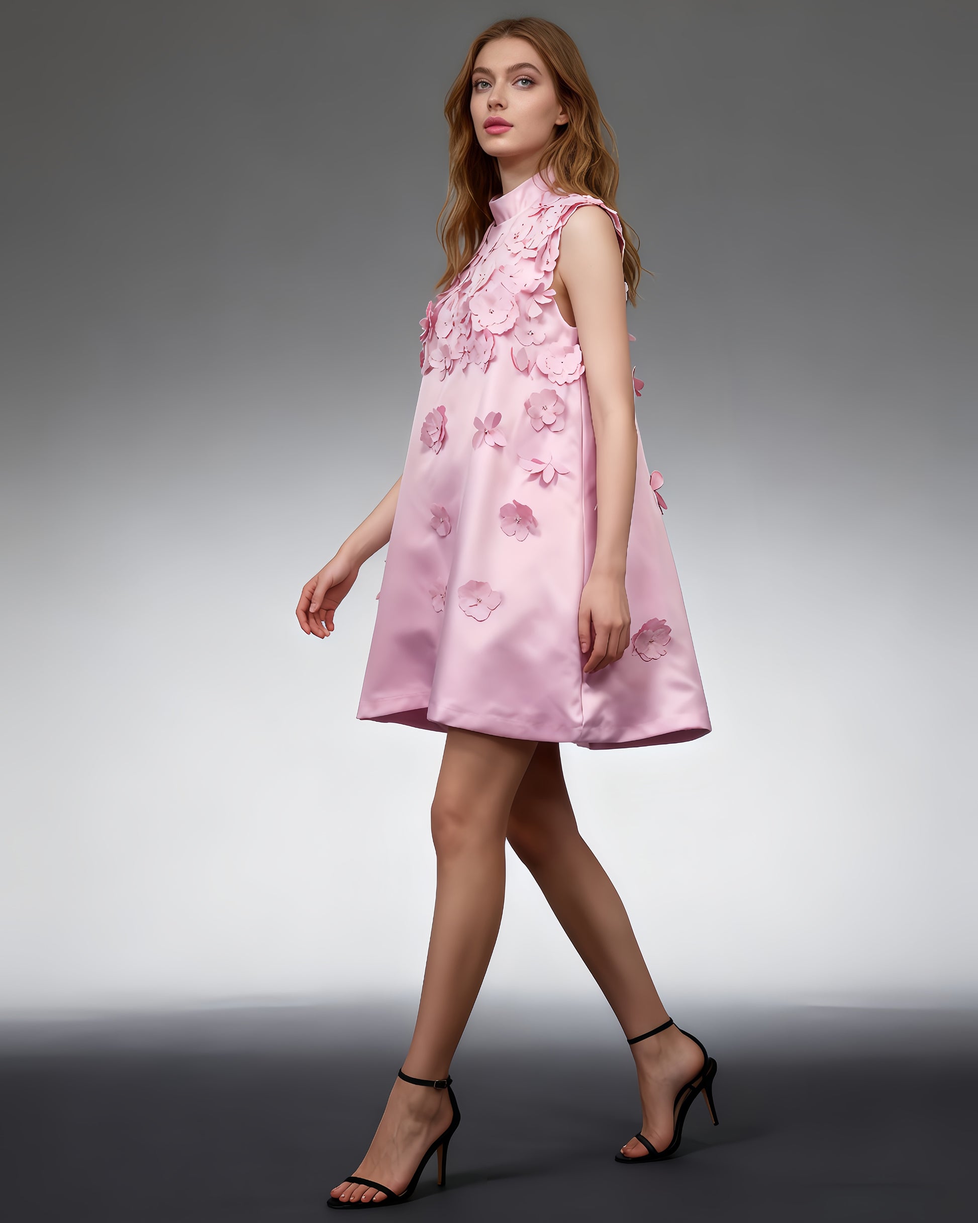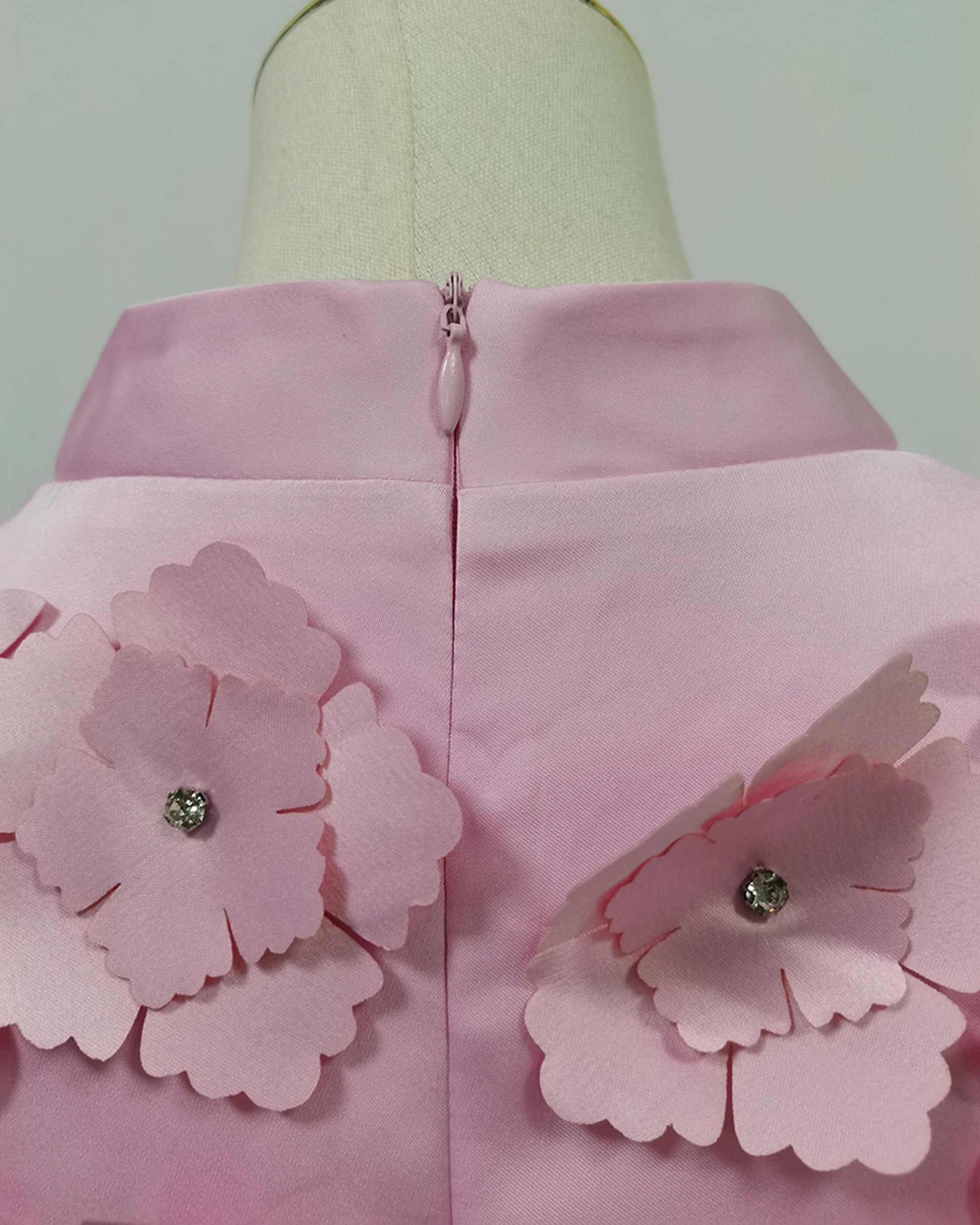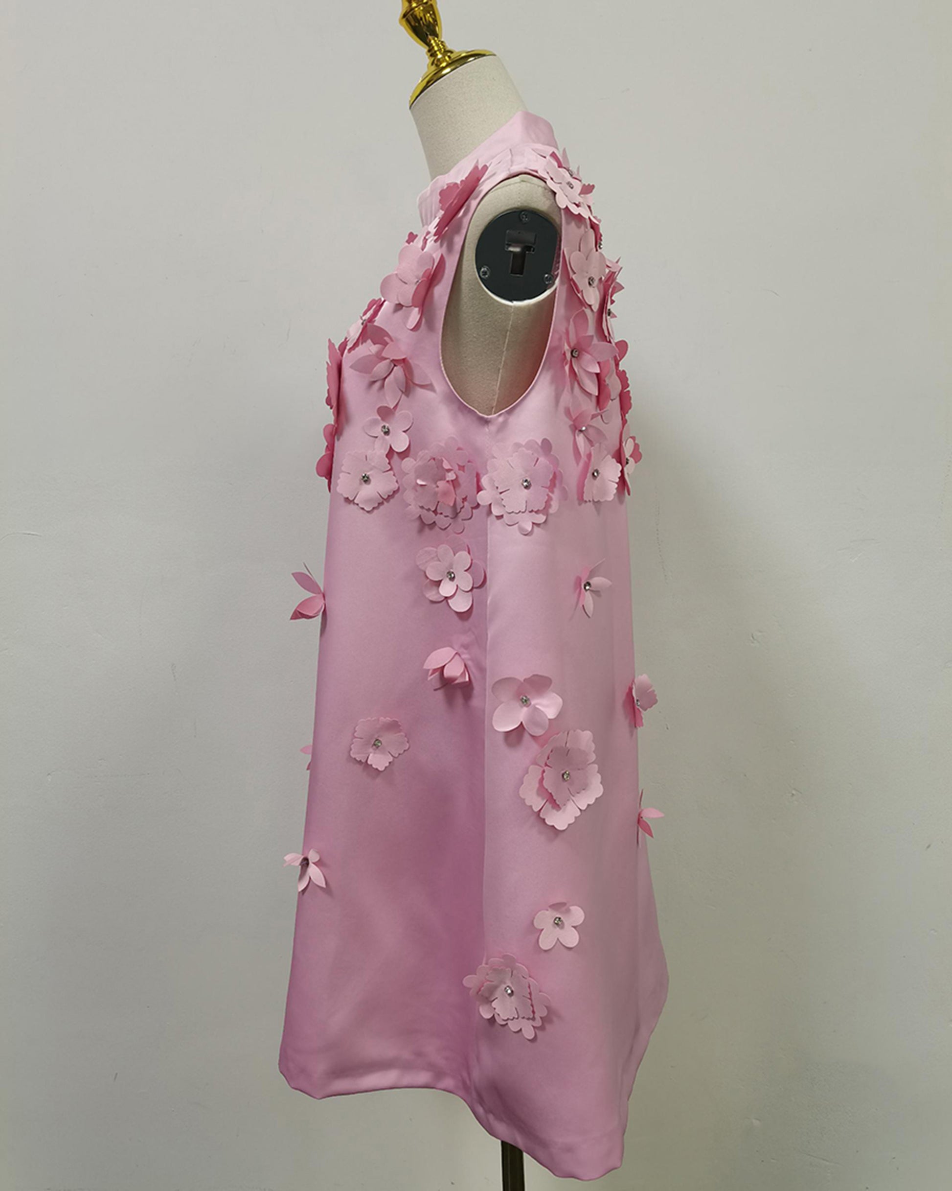 Pink Sleeveless Dress with 3D Floral Embellishments