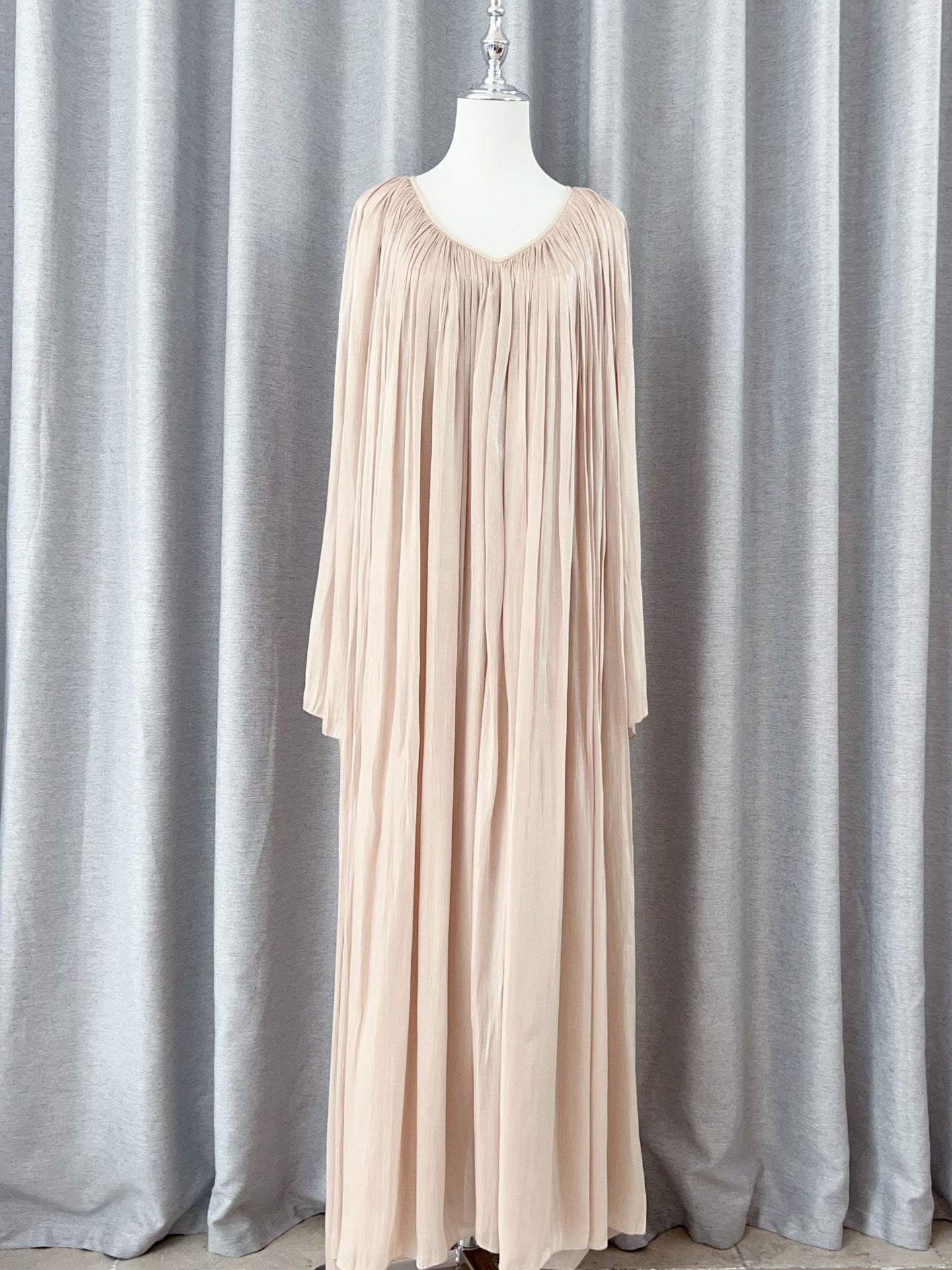 Indulge in the epitome of elegance with our Pleated Solid Elegant Long Dress. The delicate pleats create a luxurious flow, while the solid color exudes sophistication. Perfect for a formal event or a night out, this dress will make you feel like a masterpiece.